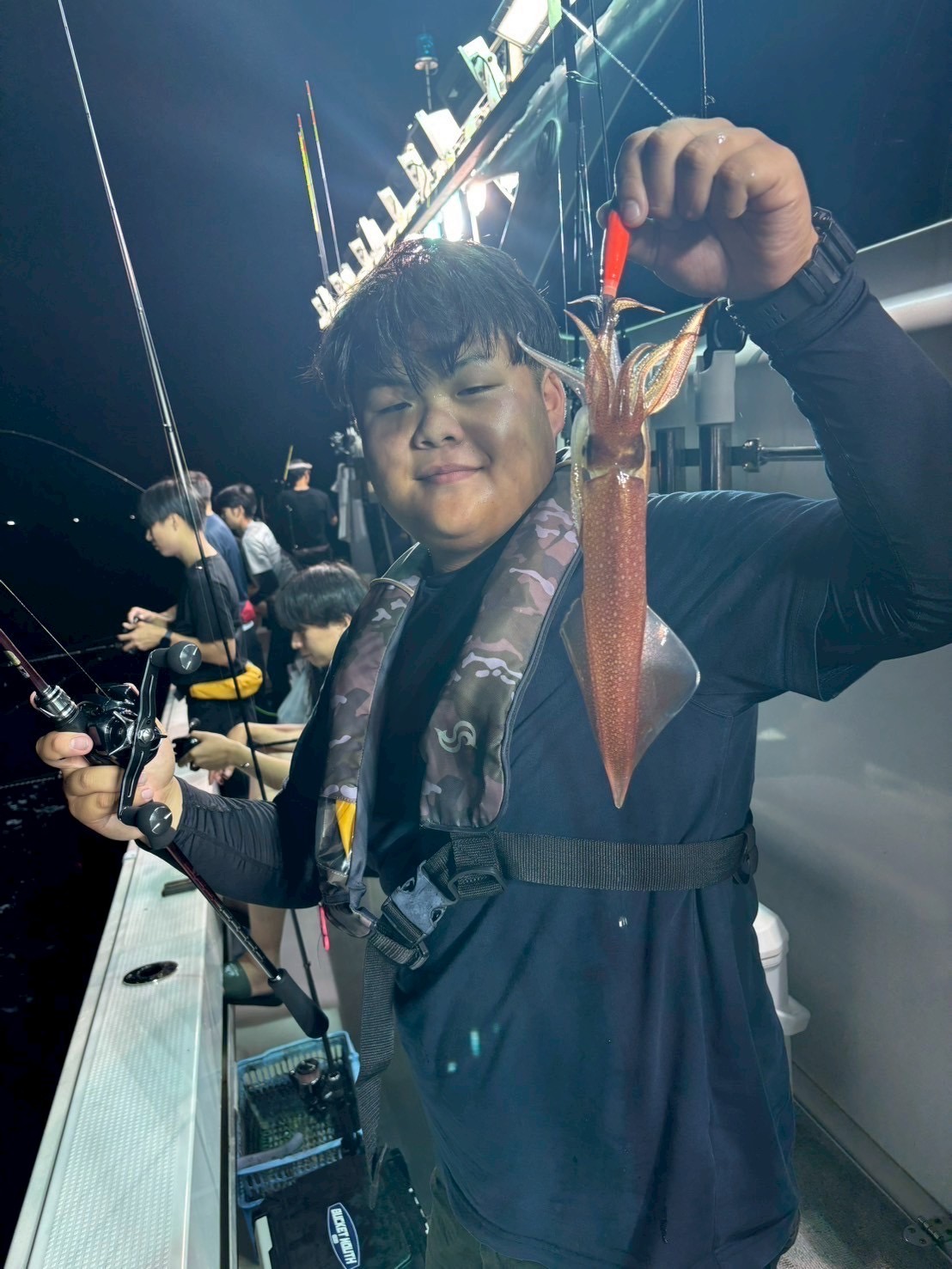 今回は研修で福井県敦賀の泰丸アクションズさんにお世話になりました。ポイントに着くとまずはメタルから始めましたが、当たりが中々出ず周りがオモリグであたり出したので自分もオモリグにかえると一投目からサイズの良いケンサキが釣れてくれました❗️カラーはケイムラクレイジーオレンジ(にんじん)がとても反応が良かったです❗️