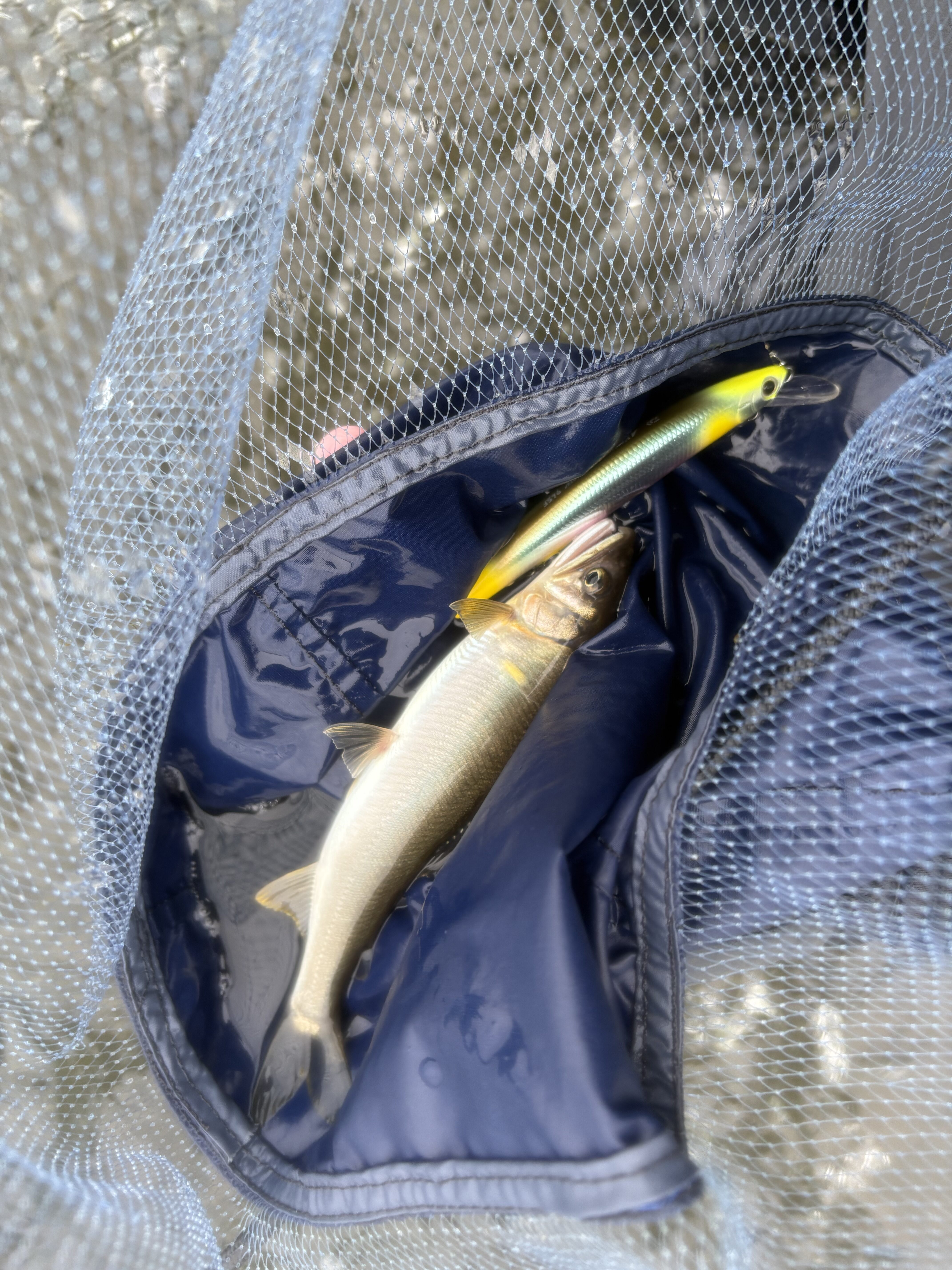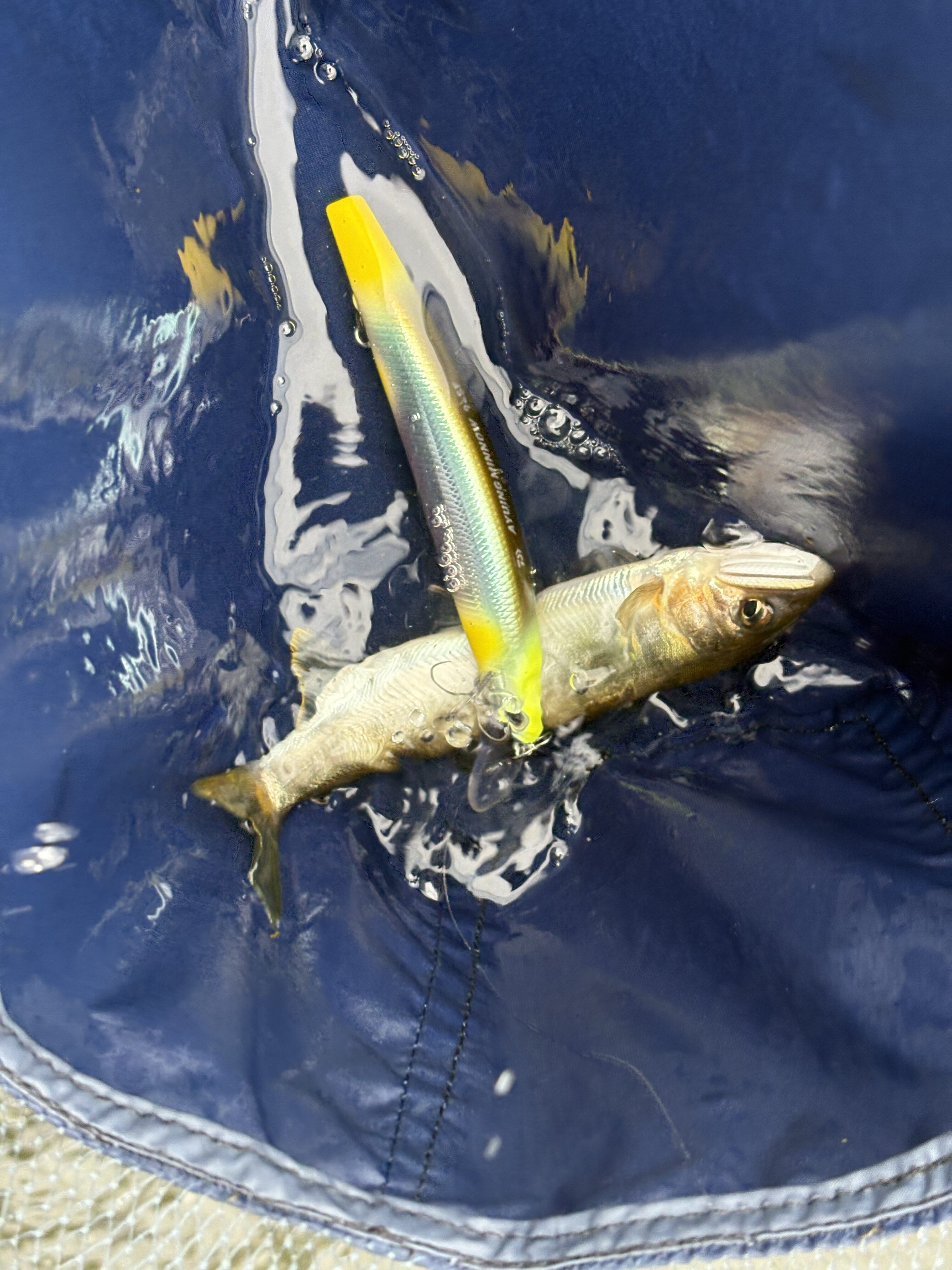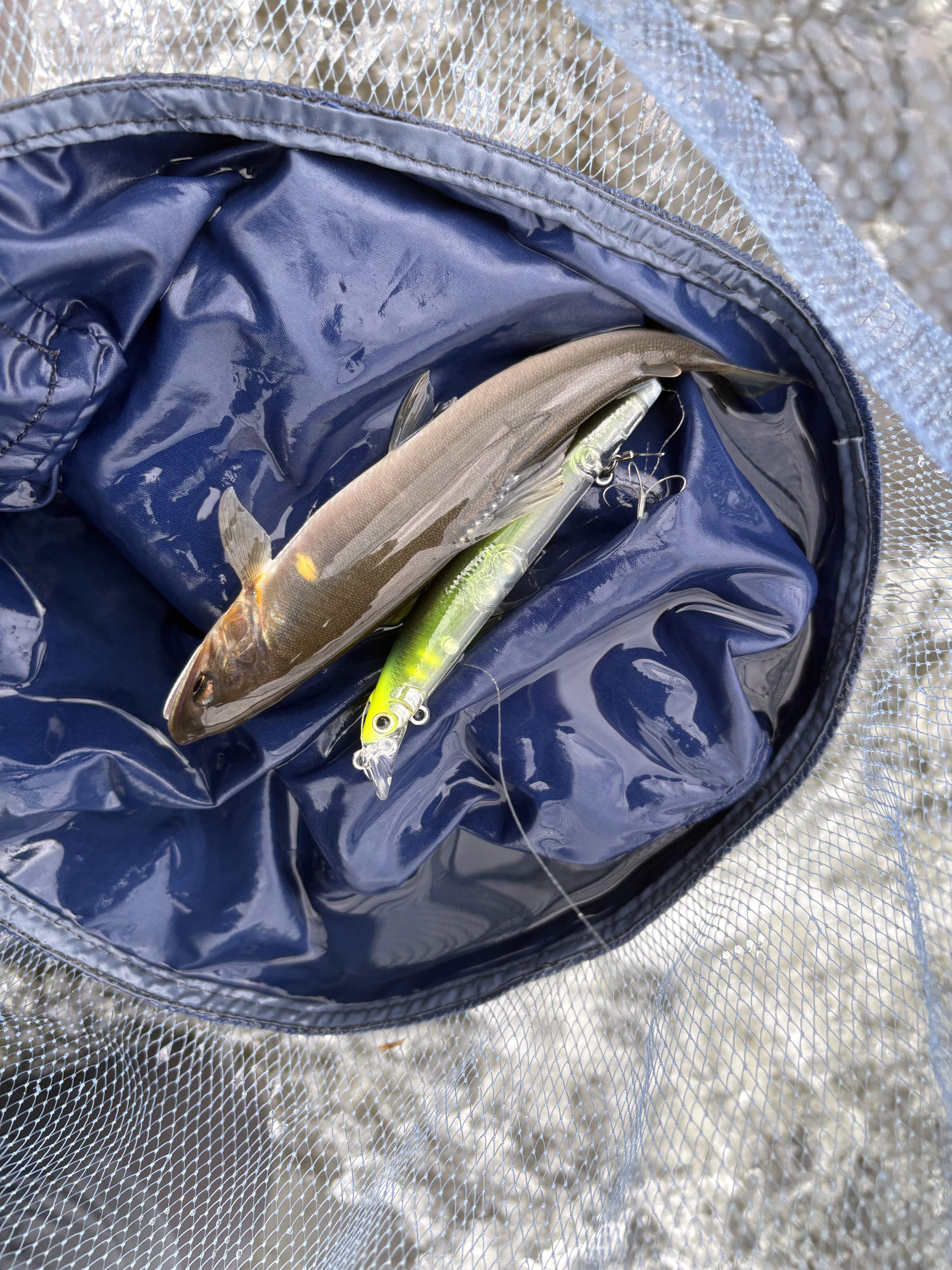 流れや水深によってルアーの使い分けで反応も異なります。雨天もあってか?控え目な色が反応良さそうでした。