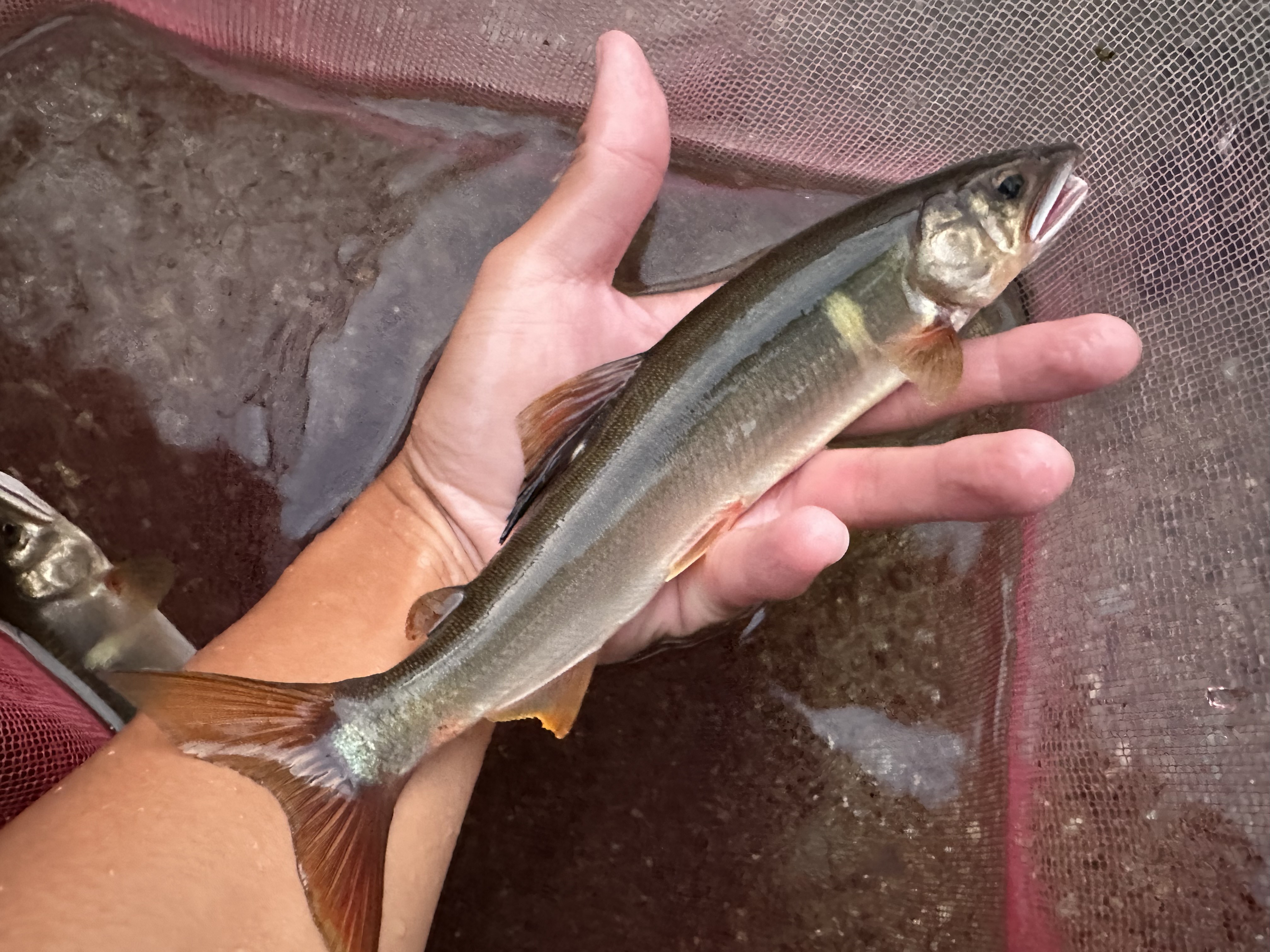 天然のオトリでどんどん瀬の中をやっていくと、ポロポロと良型が掛かってくれました。