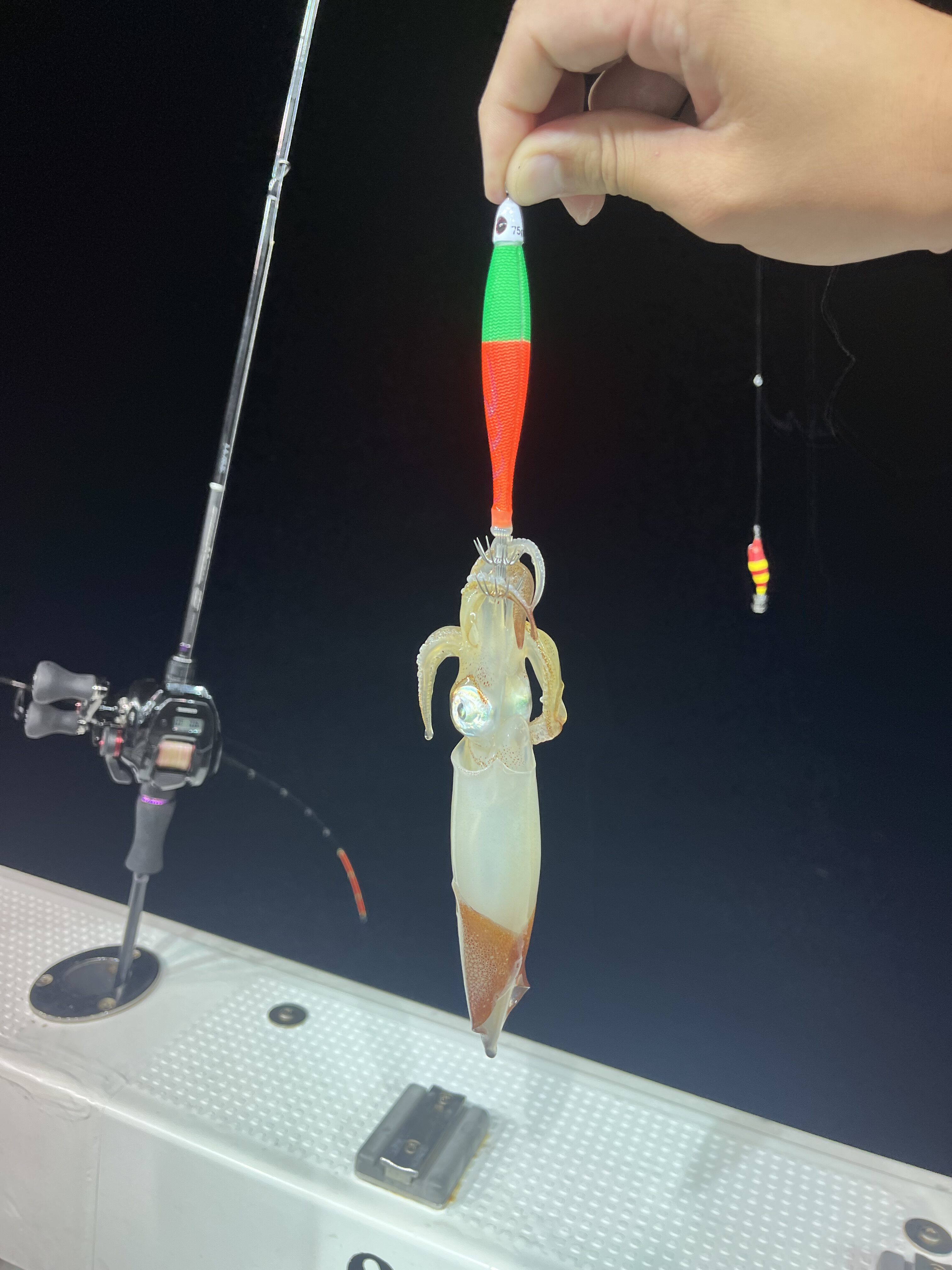 2025.08.14 印刷する 高田釣行便 敦賀イカメタル研修🦑 魚種 マイカ/アカイカ/ケンサキイカ/マルイカ 数 マイカ21 スルメイカ3 釣り方 ☆イカメタル/オモリグ 場所 福井県 天候 晴れ時々曇り スタッフ 高田 航綺 店舗 名古屋小牧店 釣行日 2025.08.06 コメント 名古屋小牧店スタッフ高田です! イカメタル研修にいってまいりました! 乗船した船は、敦賀の色浜から出船する、「泰丸アクションズ」様にお邪魔しました! 出船の6時までに座学を済ませ、いざ実釣へ! 7時頃にはポイントへ到着してスタート! あたりが暗くなるころからアタリが出だし、初挑戦の僕にもアタリが来ました👍 ヒットルアーは、メジャークラフト様のビッグアイメタル20号赤白グロー❕ その後も当たりカラーを探して行くと、赤黄ゼブラ、通称マクドナルドカラーが反応よし‼️ しばらく釣れ続きました✨ その他にも、緑オレンジ(人参カラー)、青ピンクゼブラ、黒ピンクなどでも当たりが出る楽しい日でした✨ 新子サイズが多いということで、メタル・ドロッパー共に小さいサイズ感のものがアタリが多い気がしました! ブンブン名古屋小牧店、イカメタル関連商品多数取りそろえております✋ 釣って楽しい、食べて美味しいケンサキイカ! 是非皆様の御挑戦お待ちしております🔥 使用した釣具 ロッド がまかつ ラグゼ スピードメタルss ライン PE 0.8-200m リール 炎月CT151PG