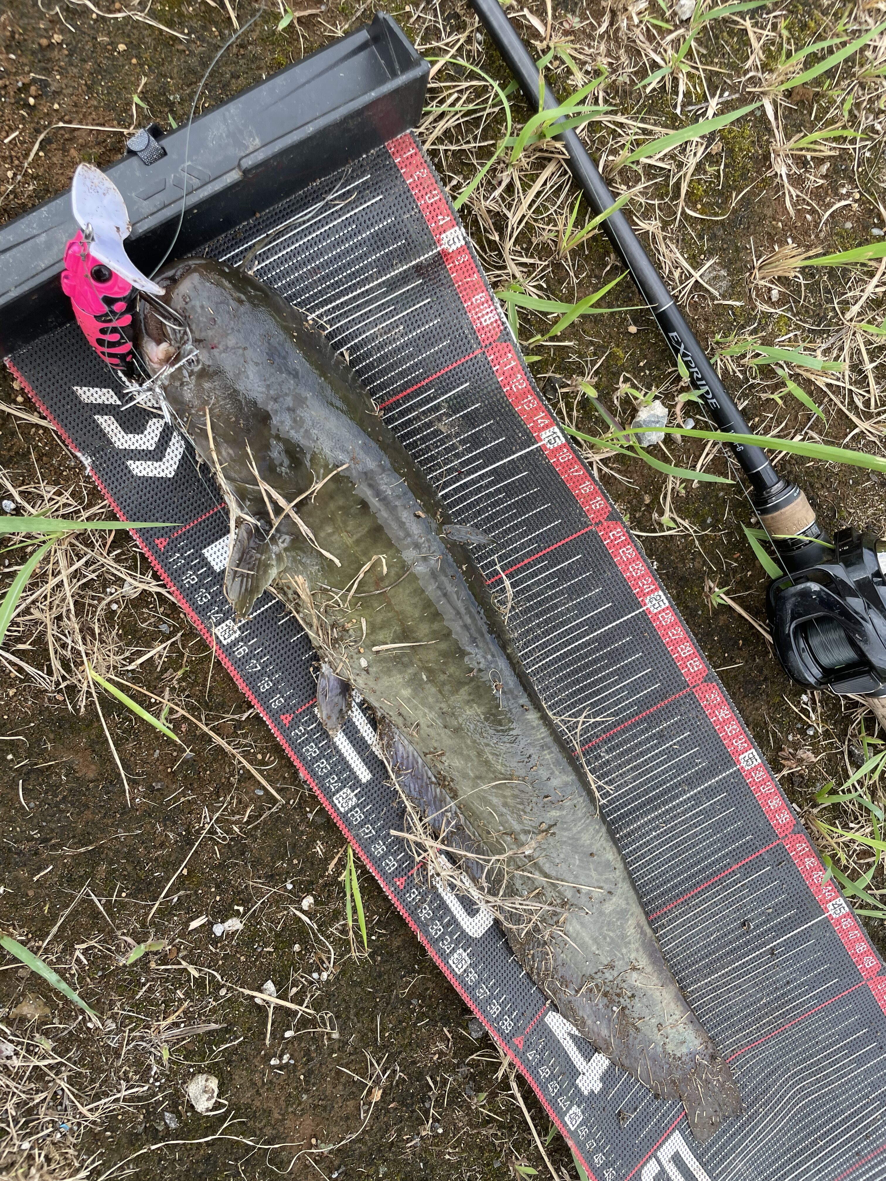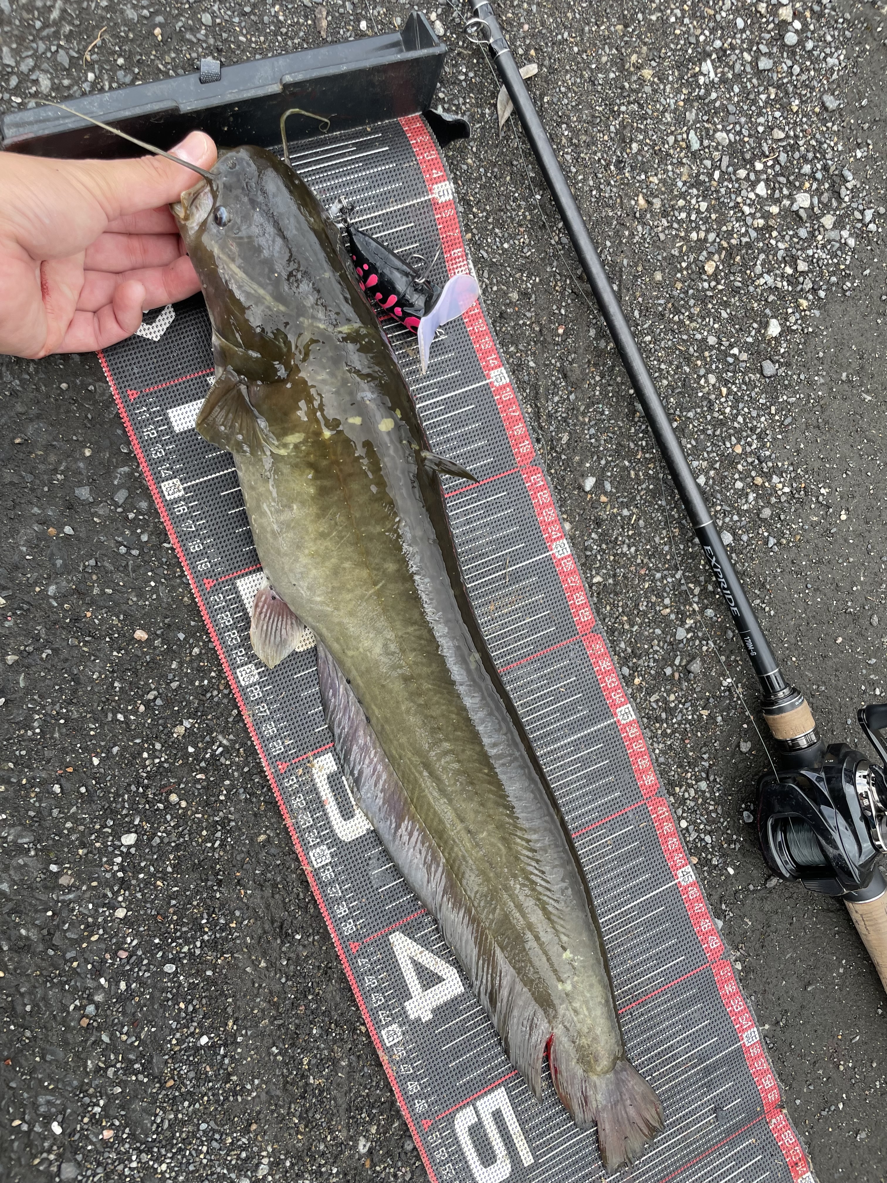 2025.08.14 印刷する 復活のデイナマで3キャッチ! 魚種 ナマズ サイズ 58cm 数 3本 場所 埼玉県 天候 晴れ時々雨 スタッフ 中村祐 店舗 柏店 釣行日 2025.08.11 コメント 柏店中村です!今回はデイナマに行ってきました! ここ数日体調を崩し寝込んでいましたがようやく良くなったので復帰戦です!まずは行きたくてウズウズしていた通称モンスターの巣窟へ!寝込んでる間に雨も降っており激アツ確定!早速いつもの場所に落としてみますが反応はありません。そんなはずはないともう一度落とすも無反応。まさかの不発か…!?流れがあるので下流側に落ちたと見てキャスト!すると落ちパク!!やはり居ました! 小ぶりですが腹パン!復帰後1本目です! ポイント移動! 次のポイントはインレットピン撃ちポイント!まずは下流側のインレット周りとシャローを攻めますが無反応。上流のインレットに移動。インレット側の岸際をゆっくり巻いてくると豪快にバイト! サイズアップの2本目!良いバイト音が響きました! さらに対岸側に渡ってからも轟音バイト! これまたサイズアップの58cm! ここのところサイズがイマイチだったので50UP2本は感動もの! さらに3〜4ヶ所ポイントを周りましたが、その後は3バイト程あるも追加はなく納竿でした! 今回のヒットルアーは3本ともナジーバグの新色ブラック/ピンクドリップ!めちゃめちゃ良いカラーです!可愛い見た目ですが、腹側はデイゲームで高アピールのブラック!釣れちゃうわけです!ぜひお試しください♪ 使用した釣具 ロッド シマノ エクスプライド170M-G リール シマノ メタニウム DC70XG