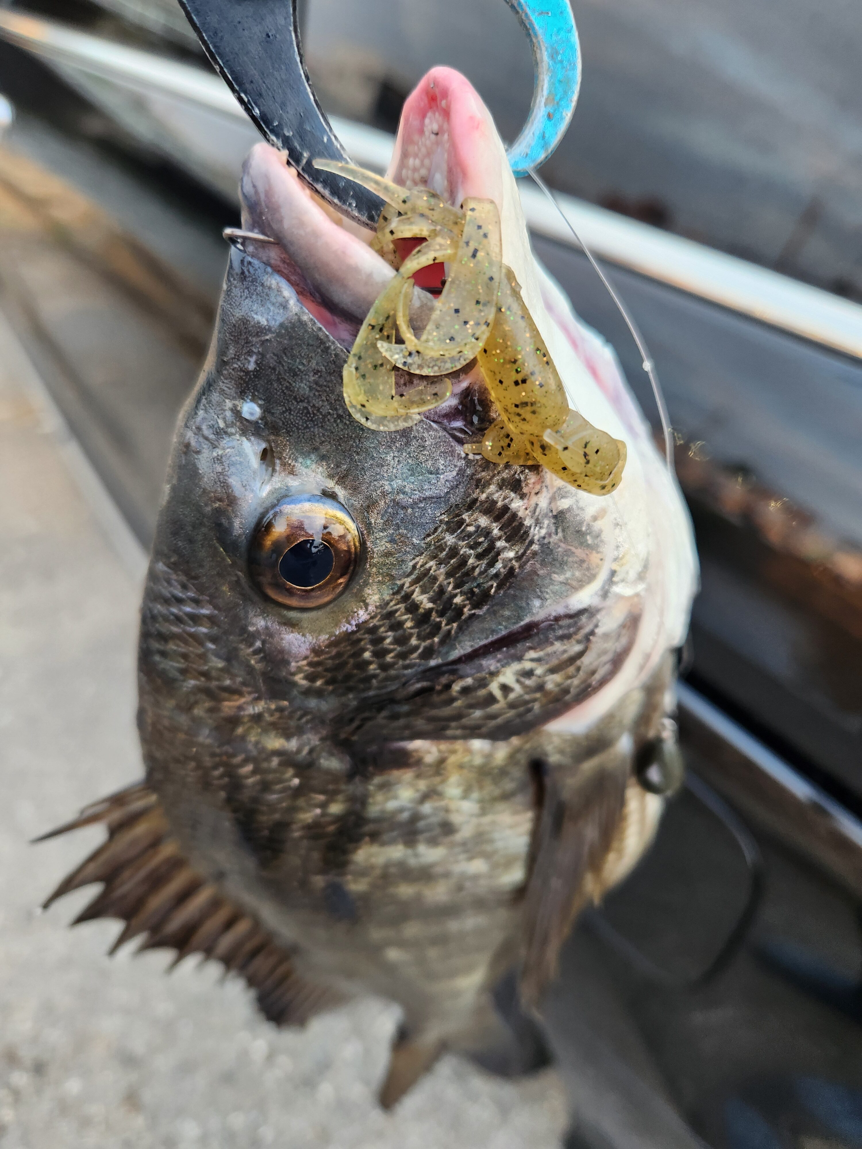 2025.08.14 印刷する 短時間勝負のデイチニング 魚種 クロダイ/チヌ サイズ 30cm後半 数 チヌ/一匹 釣り方 ☆その他SWルアー ☆チニング 場所 三重県 天候 晴れ スタッフ 恒松祐輔 店舗 柏店 釣行日 2025.08.06 コメント 柏店新人スタッフの恒松です! 今回は短時間ですがデイチニングに行ってきました! 潮汐表からポイントは釣れるであろう場所を絞りスタート! 今回もフリーリグです! ワームはデイゲームとあうこともあり、クレイジーフラッパー2.8のジンジャーシュリンプを使用! 釣り方はカキ瀬のある場所にキャストし、リトリーブです! 釣り開始直後、いきなりバイト! しかし、掛けきれずにどんどんキャストを続けます。 終了直前で一瞬のステイでガツン!とヒット! ぼちぼちサイズのチヌでした! 30分無いくらいの釣行でしたが、しっかりとキャッチが出来てから満足いく釣行となりました! まだまだハイシーズンが続くチニング、皆様もいかがでしょうか? 気になる方は是非、チャレンジしてみてください!! また、チニングで分からない事があれば是非お気軽にお声がけくださいませ!! 使用した釣具 リール 21ジリオンSV TW ロッド ハートランド722ml+