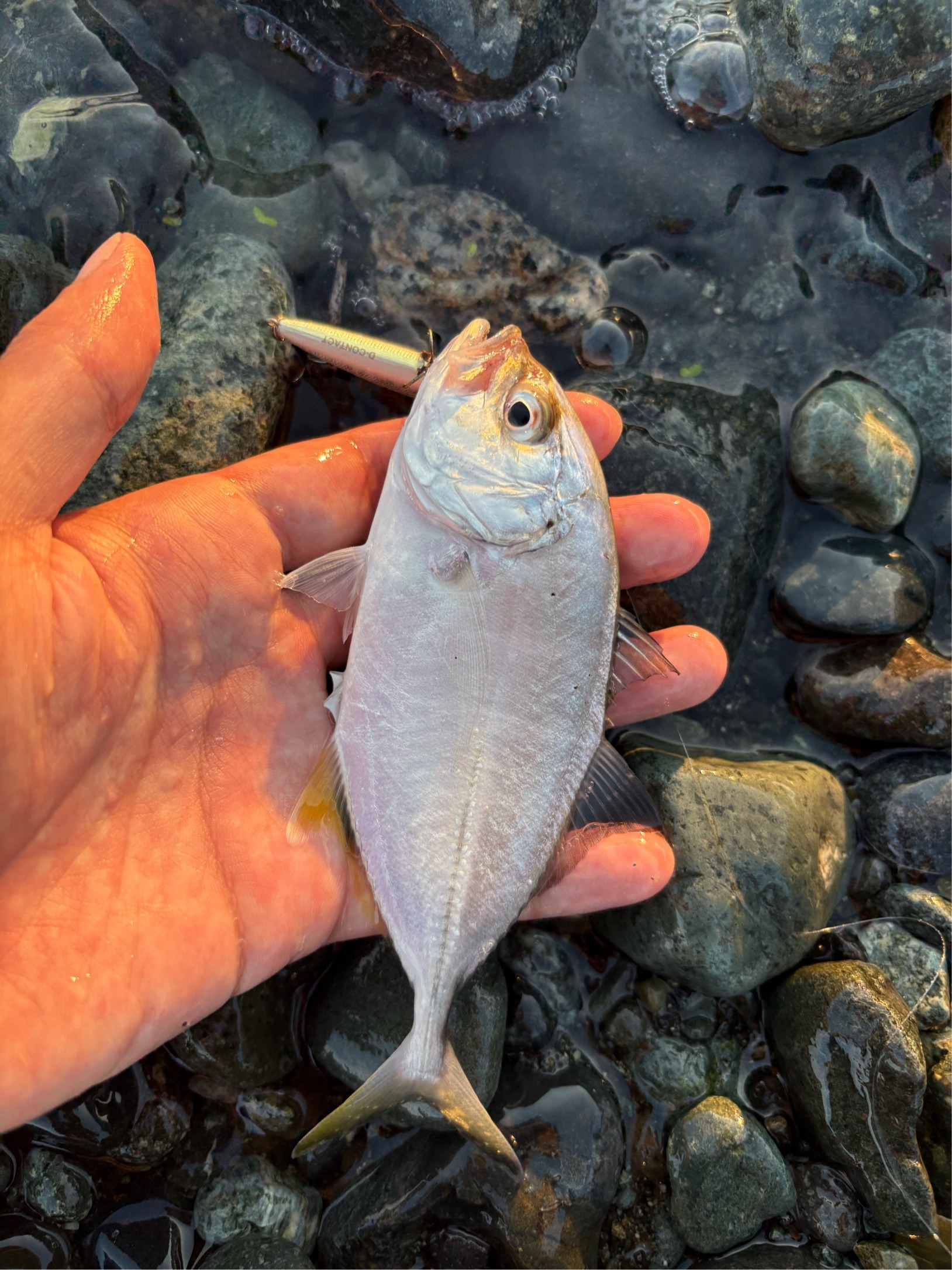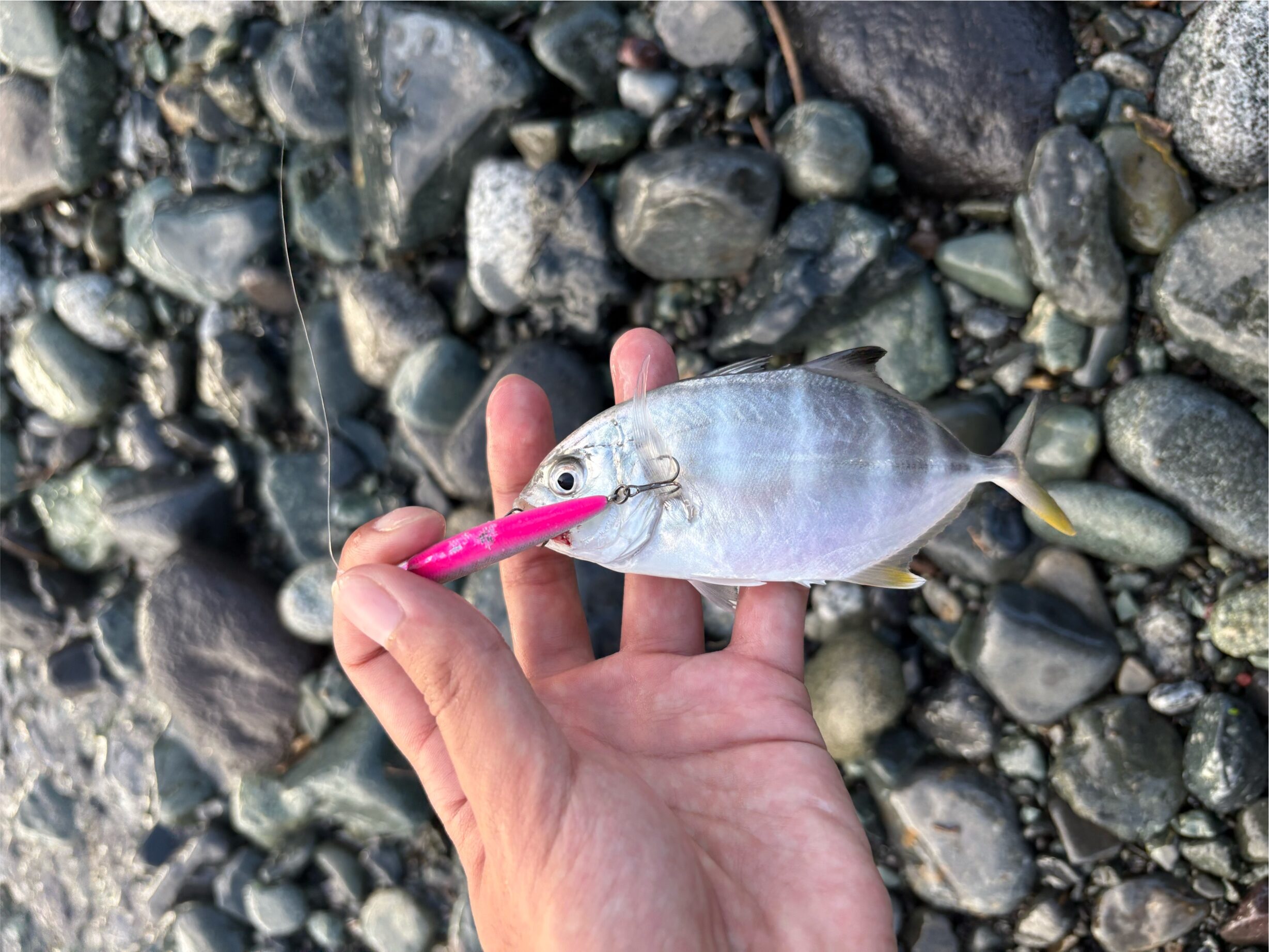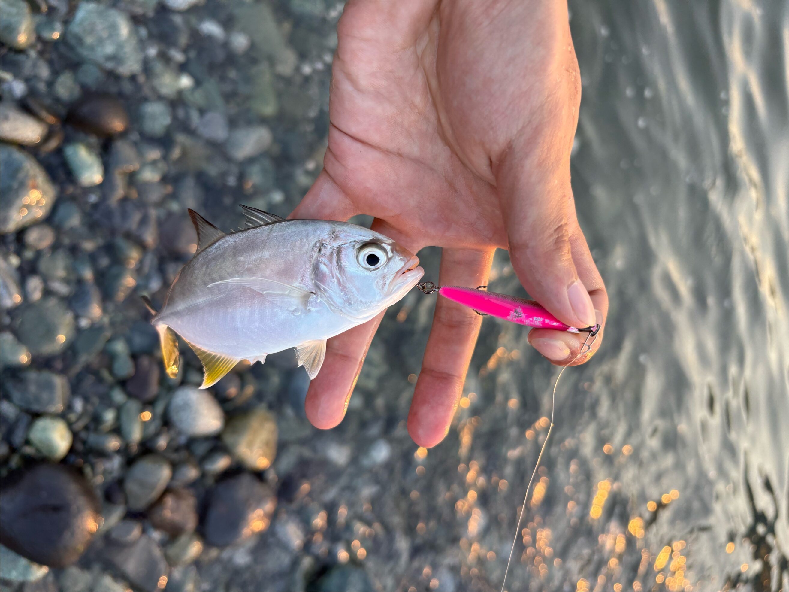 薄暗くなってからは当たらず、さらに海側の岸近くを通してみると1バラシからの1キャッチ。