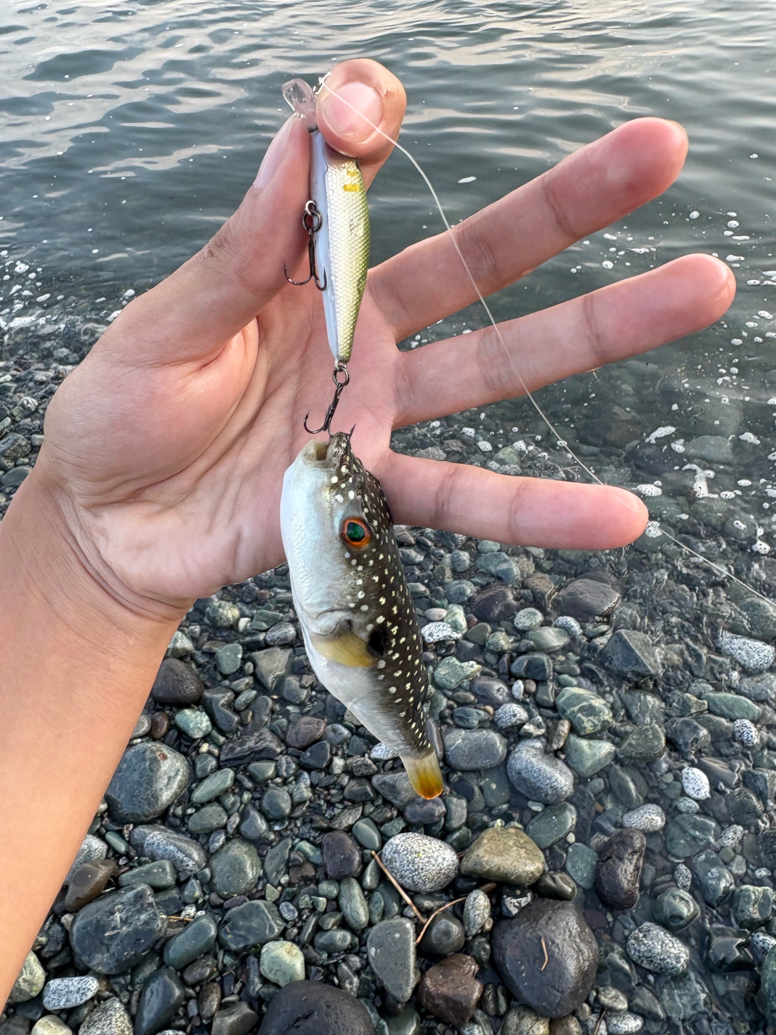 また違うルアーで!とシルバークリークミノーにすると今度はクサフグ。 またクサフグを追加にメッキバラシ。