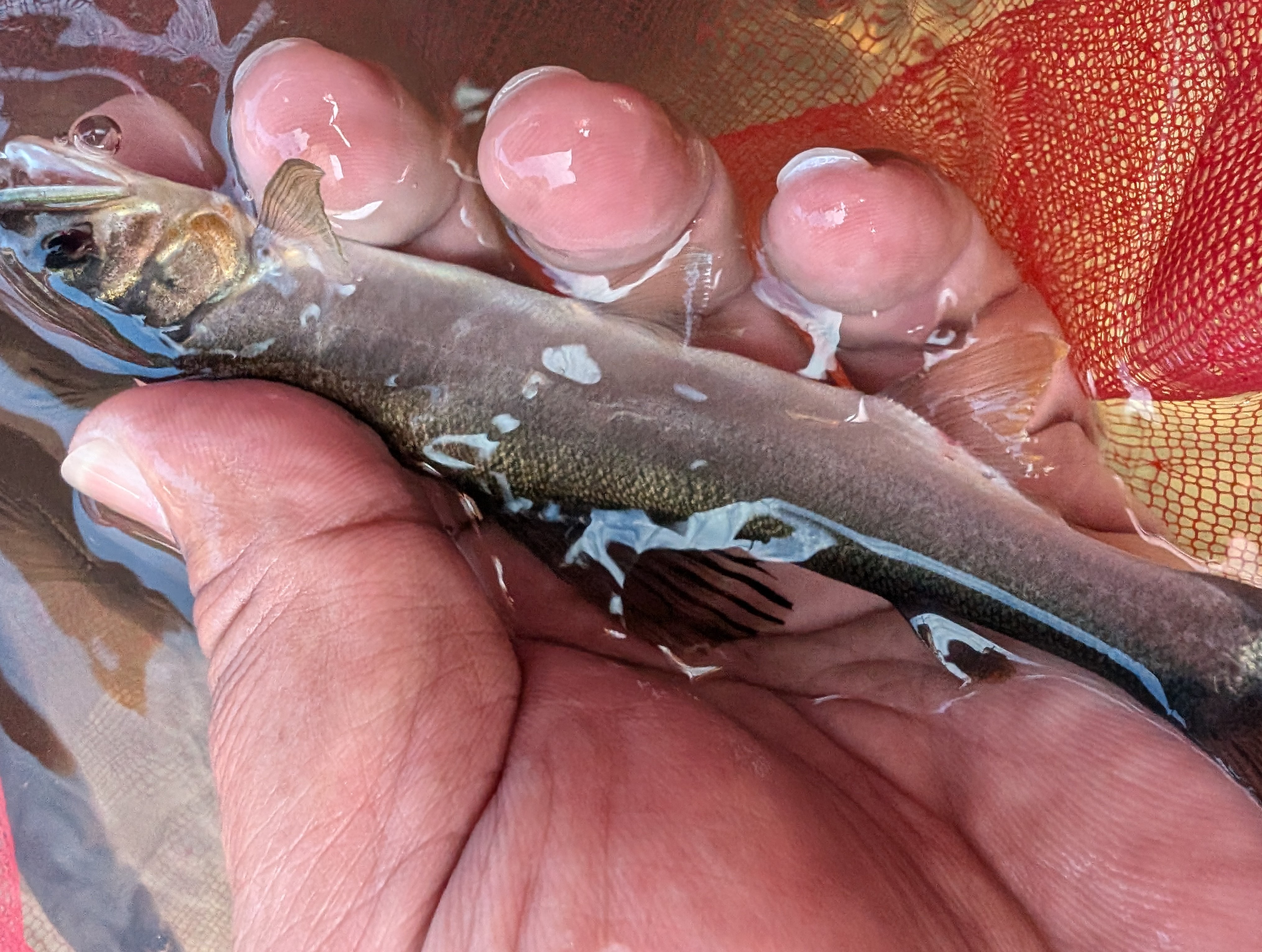周りにいた釣り人も全然釣れないようで全員いなくなっていました。その後も残りアカが付いていそうな大石の裏などを狙いますが掛かるのはゴリばかりで、夕方まで粘るもチビ鮎1匹追加でゴリばかり20匹ぐらい釣って納竿となりました。