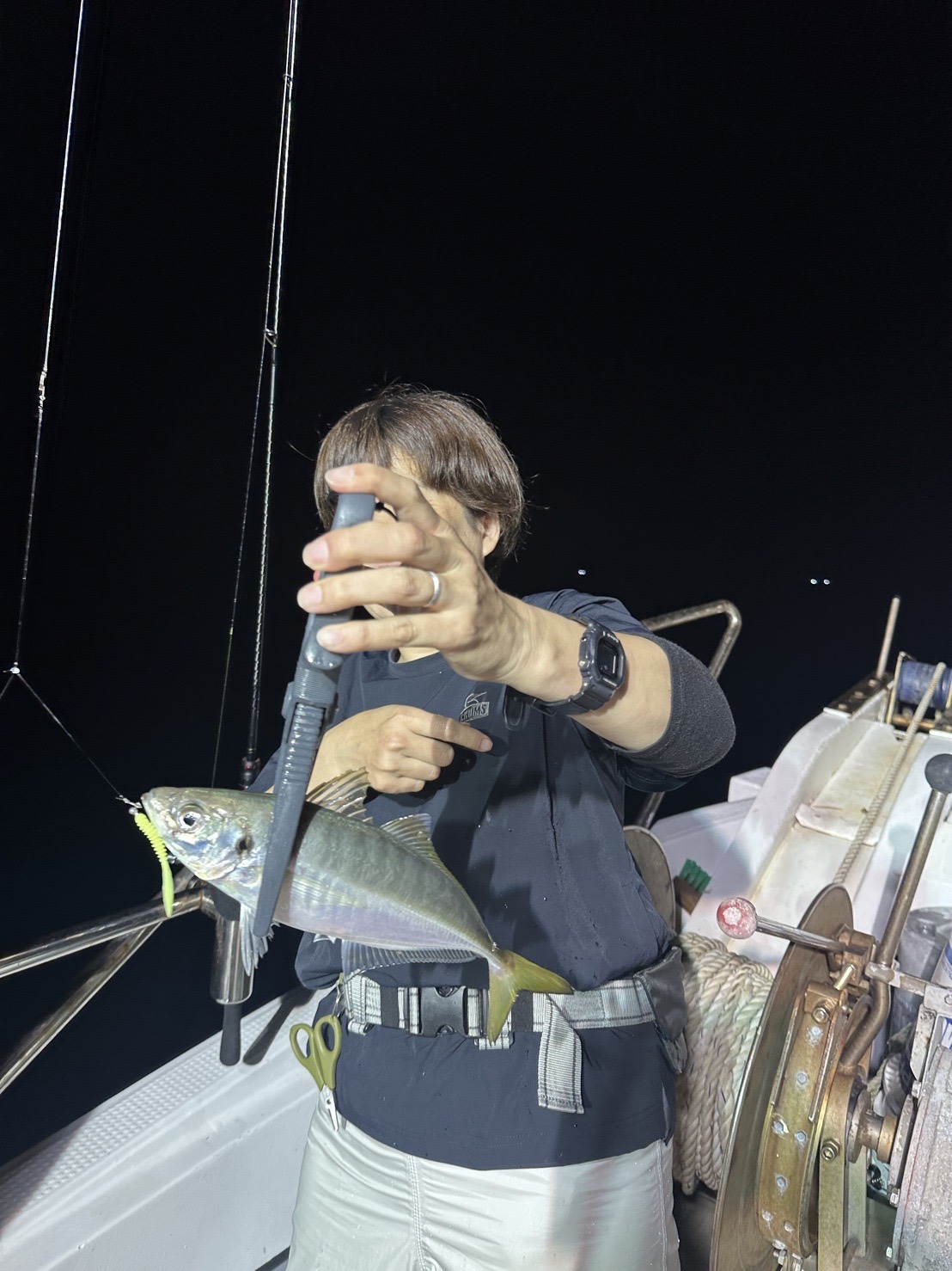 2025.08.20 印刷する 久しぶりのイカメタル 魚種 マイカ/アカイカ/ケンサキイカ/マルイカ 釣り方 ☆イカメタル/オモリグ 場所 京都府 スタッフ 小嶋里美 店舗 高槻店 釣行日 2025.08.12 コメント 1年ぶりでイカメタルゲームにチャレンジしてきました。お世話になったのは京都、舞鶴港から出船している遊漁船「SPRINTER」さんです。しばらく釣りをしていなかったので釣れるかな?アタリはわかるかな?とドキドキでスタートしました。満月大潮からあまり状況は良くないとのことで更に勝手にプレッシャーを感じながら始めました。冠島の少し手前、水深65mほどのところで最初はボトム中心に誘いますが反応なし…やはり厳しく船内でもなかなか釣れませんでした。暗くなった頃にようやく周りで釣れ始めましたが私は全くダメで焦りが出てきました。置き竿で釣れたというのを聞いてステイ長めでやってみるとようやく1杯目!しかし合わせがきつキツすぎて足だけが釣れてしまいました。その後2杯釣れたところでアタリがなくなり、船長が少しでも状況が良いポイントをと色々探してくださいましたがこの日の日本海はどこも同じような感じでした。終盤、良型のアジが釣れるとわかりOKいただいでバチコンアジングをさせてもらいました。35㎝前後の真アジを満足するまで釣ることができて結果楽しむことができました。イカはまた近いうちにリトライしたいと思います。 使用した釣具 リール バルケッタFカスタム 151DHHG ロッド セフィアCI4+メタルスッテ