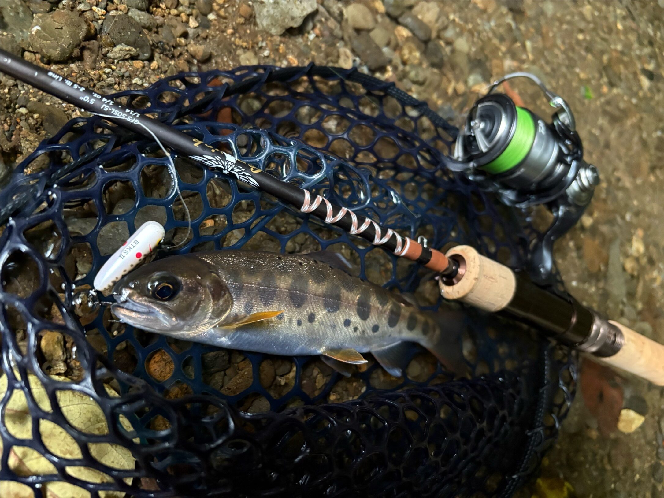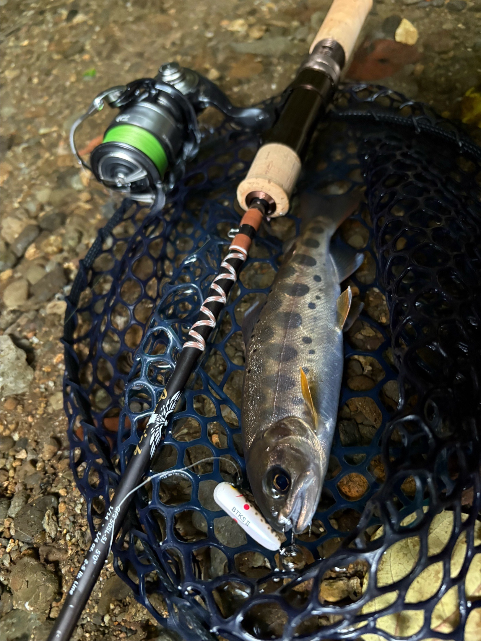 伊豆の渓流でアマゴを狙ってきました。 いつもはヤマメですが、今回は朱点のある方です。