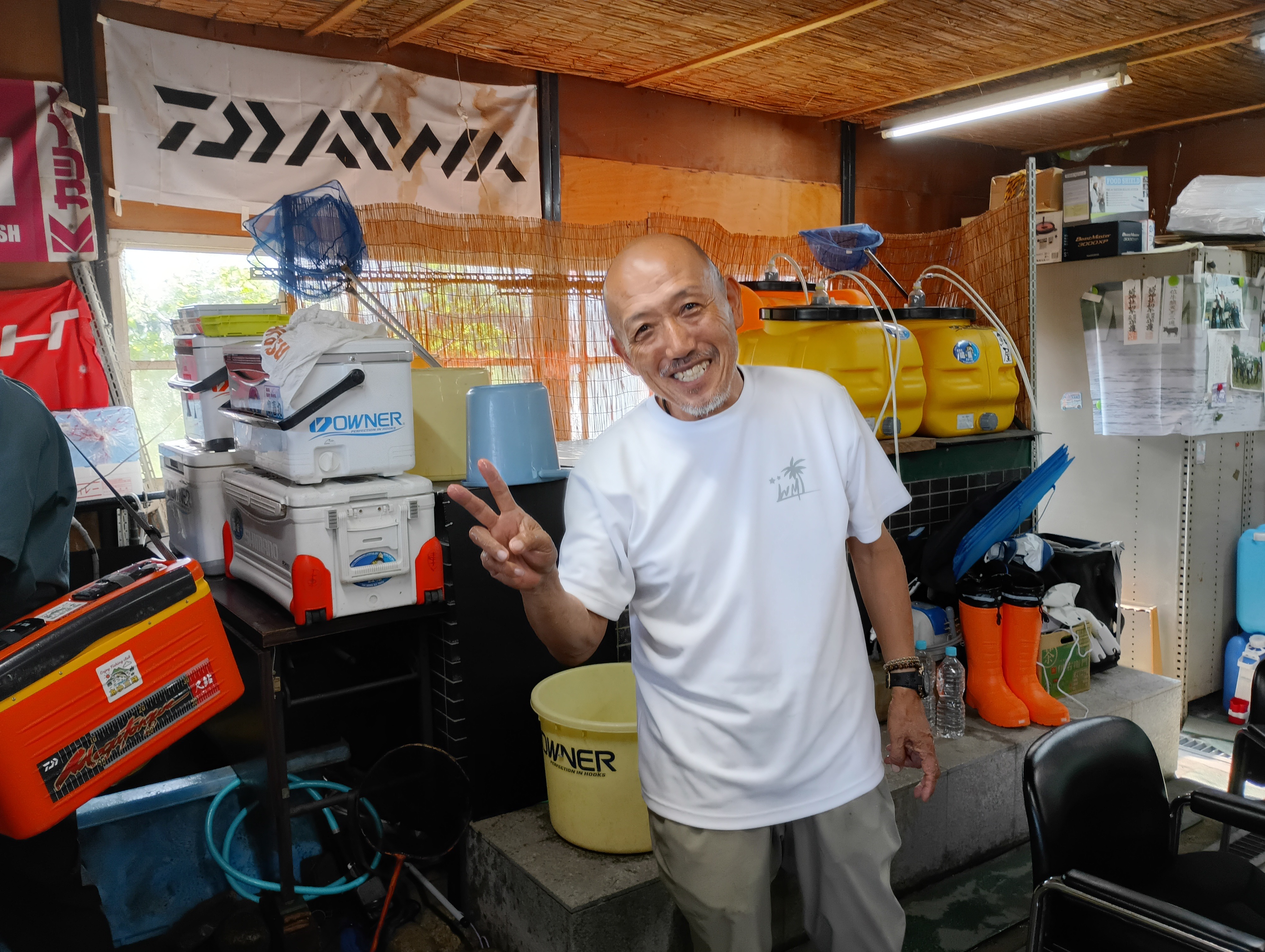 しかし水温が高くバナナになってきて、梶原さんに囮を分けてもらい、早速一匹が掛かりました。