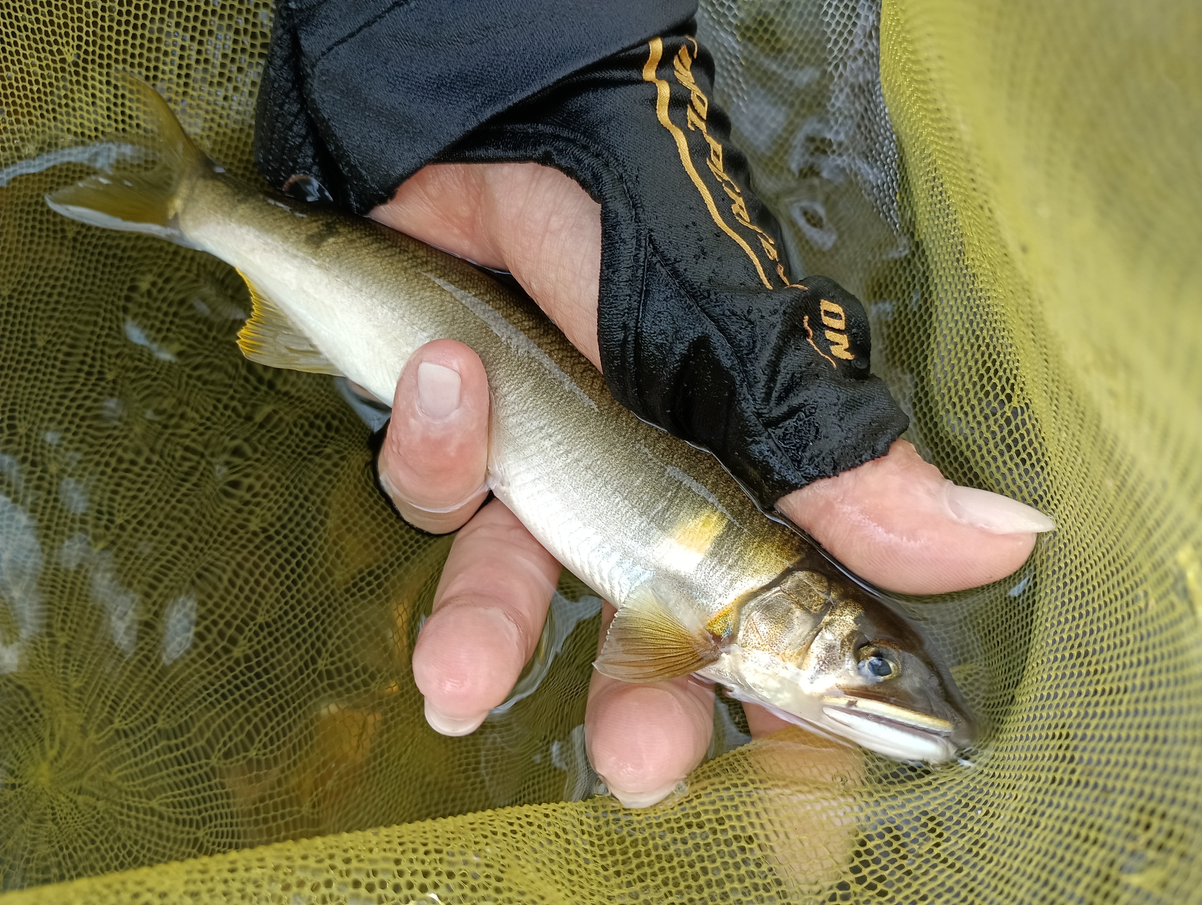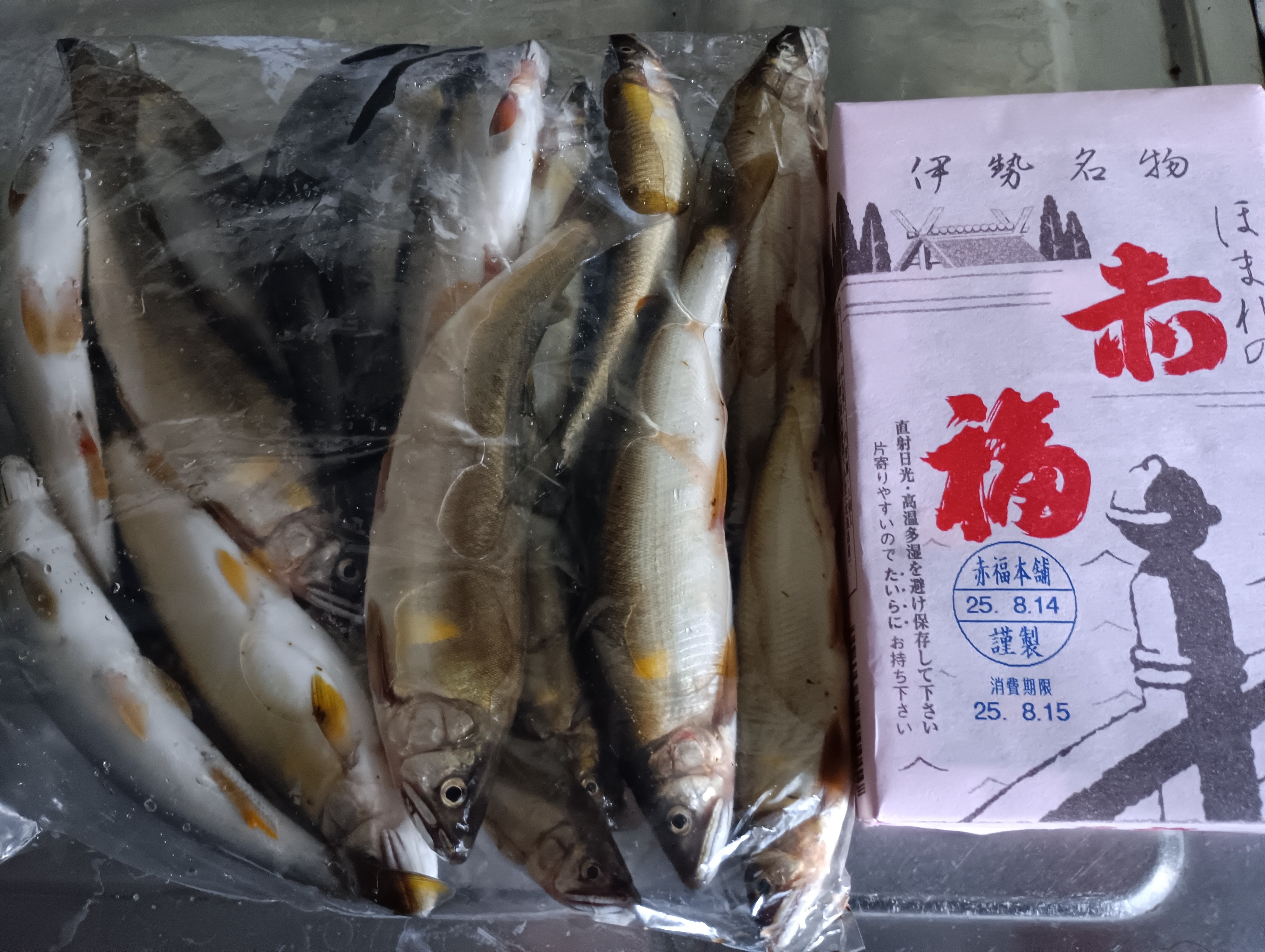 2025.08.18 印刷する 名張川へ♪鮎釣り三回目の磯師にお付き合い♪ 魚種 アユ/鮎 サイズ 15~20センチ 数 鮎/13匹 釣り方 友釣り 場所 奈良県 天候 晴れ スタッフ 平川葉子 店舗 堺店 釣行日 2025.08.14 コメント 今日はご近所のお客さんでもある、磯のトーナメンターのkさんが鮎釣りしたいとの事だったので、安曇川と迷いましたがこないだから釣れていた名張川へ行くことに。 名手の梶原さんも来てくれるとのことで、追い星囮店で集合。 ポイントを囮店店主と相談して広いチャラが続くに来ました。 ここでは平川は竿は出さず、kさんについて復習してもらいます。 一匹小さいのが掛かりました。 梶原さんは5~6匹掛けてました。 鮎が小さかったので、石の少し大きいポイントへ移動。 ここでは平川も竿を出します。 kさんは早速掛けてました。20センチくらいの大きさで驚いてました。 しかし水温が高くバナナになってきて、梶原さんに囮を分けてもらい、早速一匹が掛かりました。 18センチくらいの子でした。アタリが激しく、掛かるところが見えるので楽しいです。 ぽつぽつ掛かり、どんどん移動し瀬までやってきました。 背後から知り合いのnくんに声を掛けられ 「平川さん釣れてますー?瀬やっていいですかー?」 どうぞどうぞ♪ nくんは左岸に。平川は右岸の瀬をやります。 アタリもキツく目印をとばします 最初は錨でやってましたが、軽い変則チラシに変えました。 瀬では錨に戻しましたが身切れしたので変則チラシにもどし、ぽつぽつ掛かりました すると急にかなりの雨が。 見るとkさんは木陰に避難してます。 車のカギは平川が持ってるので慌てて、竿をたたみ車へ戻りました 時間も2時半だったのであがることに。 梶原さんは20匹ほど釣っていました 名張川はこれからもダムから上がってくるらしく、釣れるよと、追い星囮店の店主が言っておられました。 名張川のパンフレットと、追い星囮店の名刺を店頭に置いてますのでぜひ、ご参考にされてください また、堺店では鮎用品が通常価格より、更に10%オフ(当社指定品に限る) ぜひお立ち寄り下さい🙇 使用した釣具 竿 ダイワ銀影競技axh85 針 がまかつ貫変則チラシ7,5