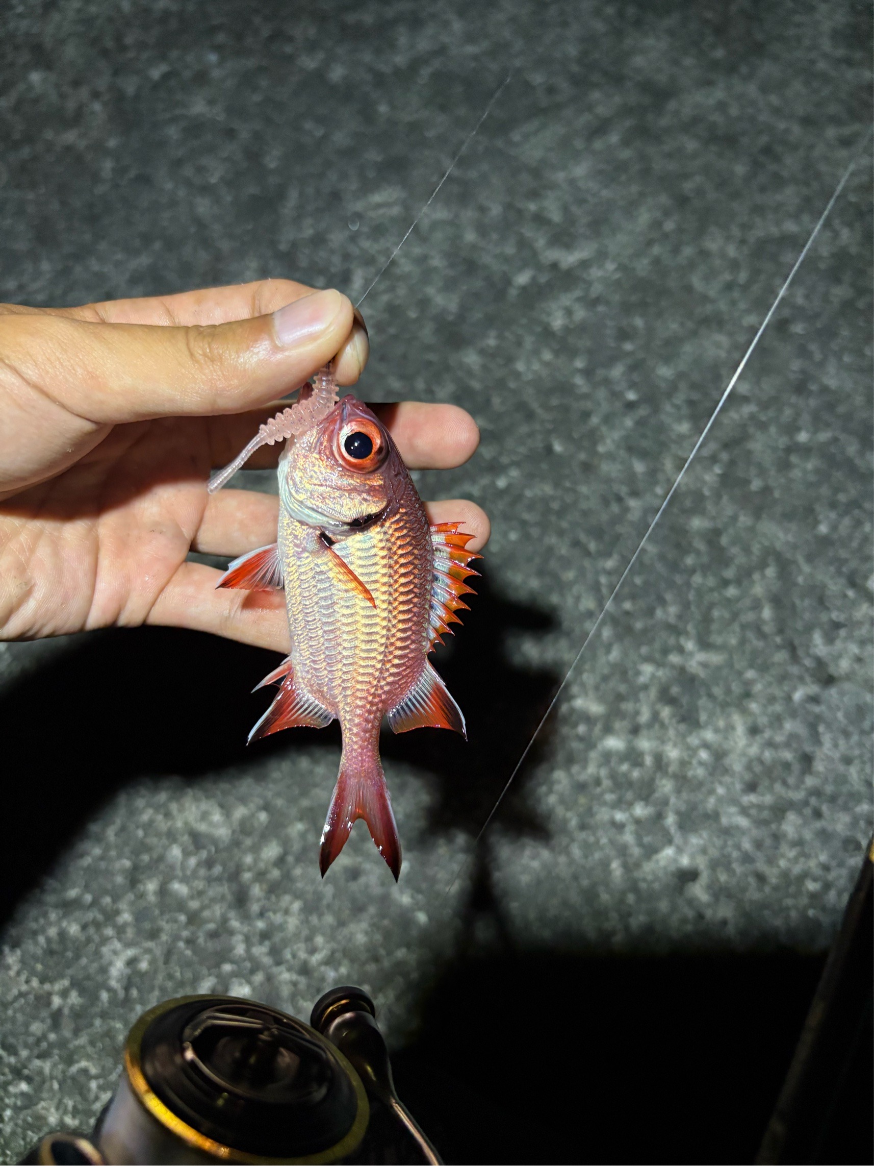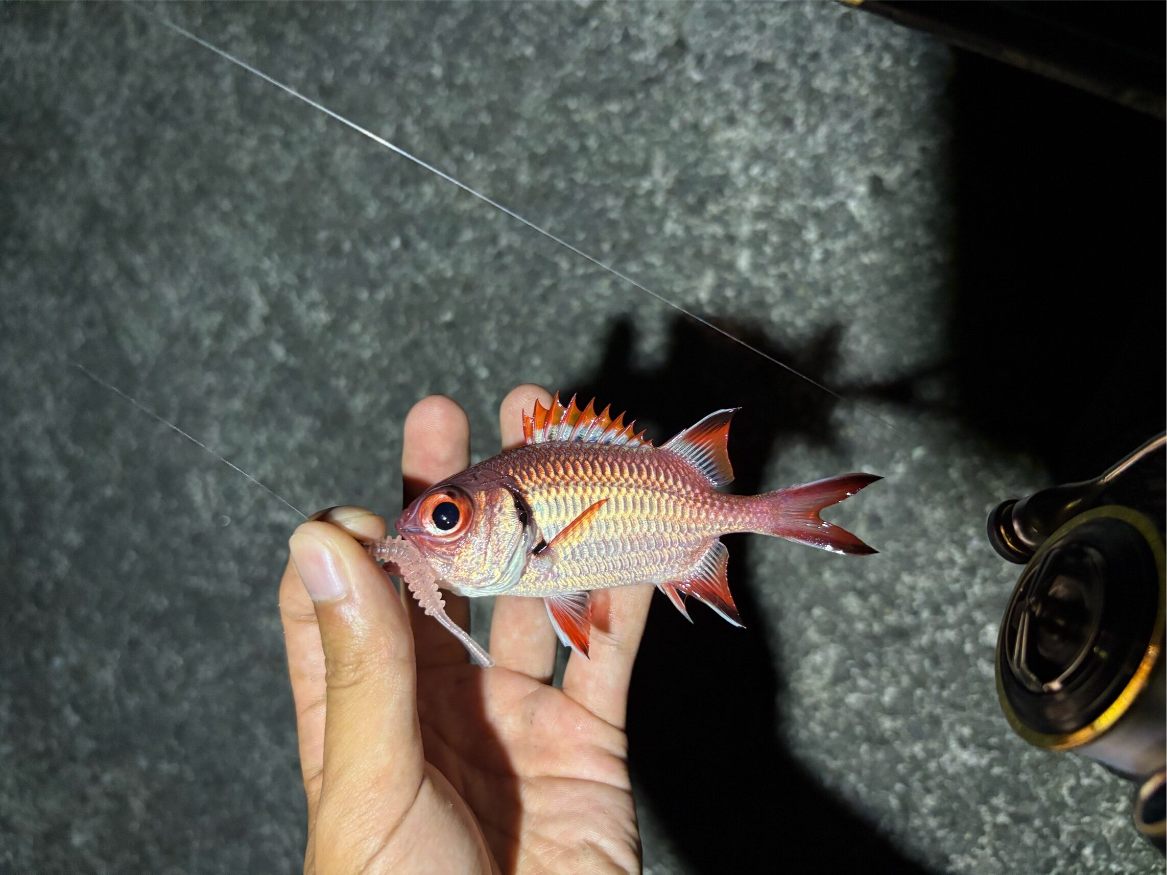 アクション後のフリーフォールやカーブフォール、ロッドでさびくなどして食わせの間をとってあげると、アカマツカサ系の魚やオオスジイシモチが釣れました。