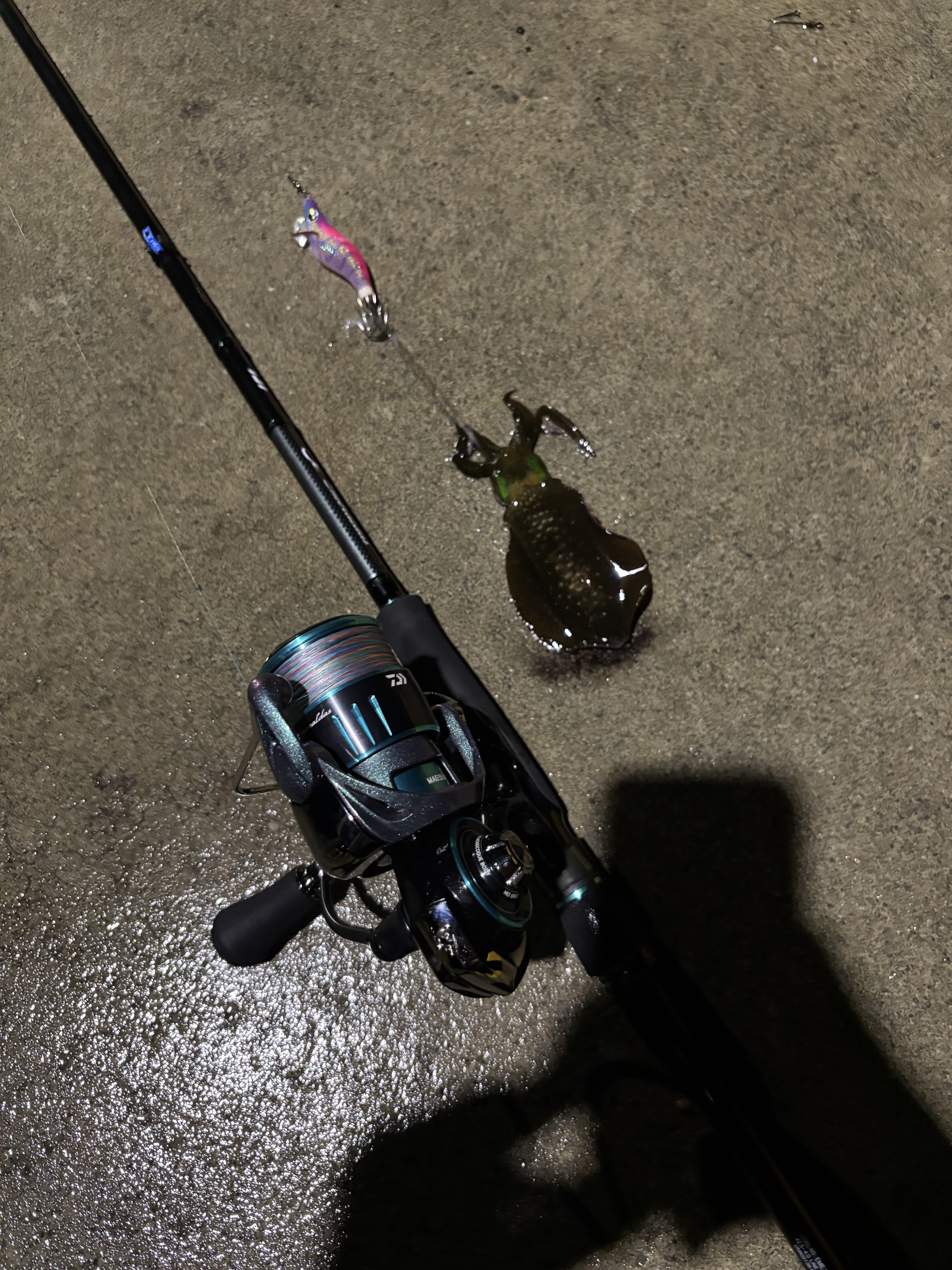 しかし、豆アジが沢山いたので釣れることを言じて投げ続けると、可愛いアオリイカ2杯釣ることができました❗️