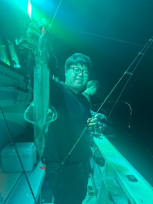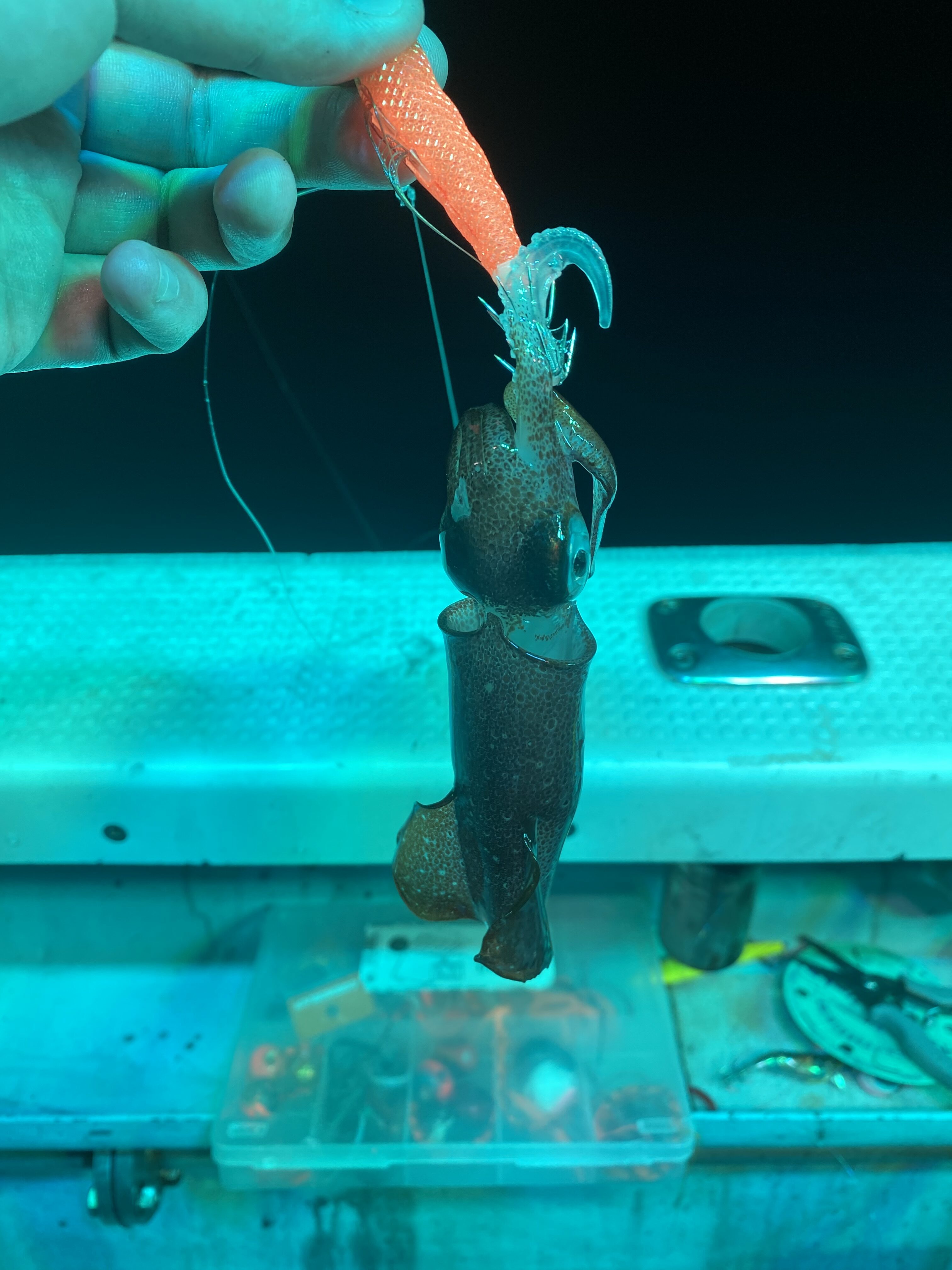 ご船のライト点灯40m~60mの間でポツポツ釣れ始めました!