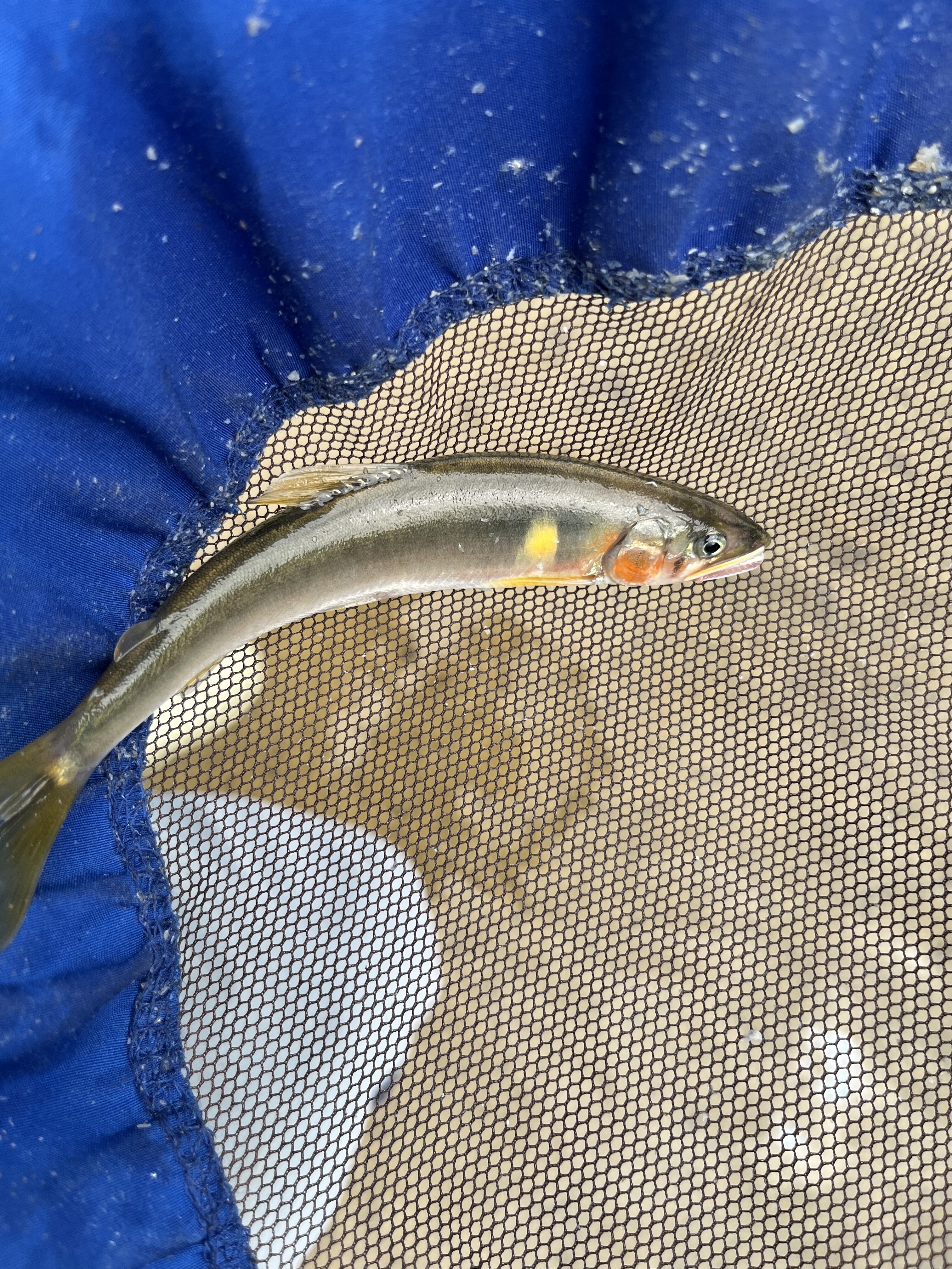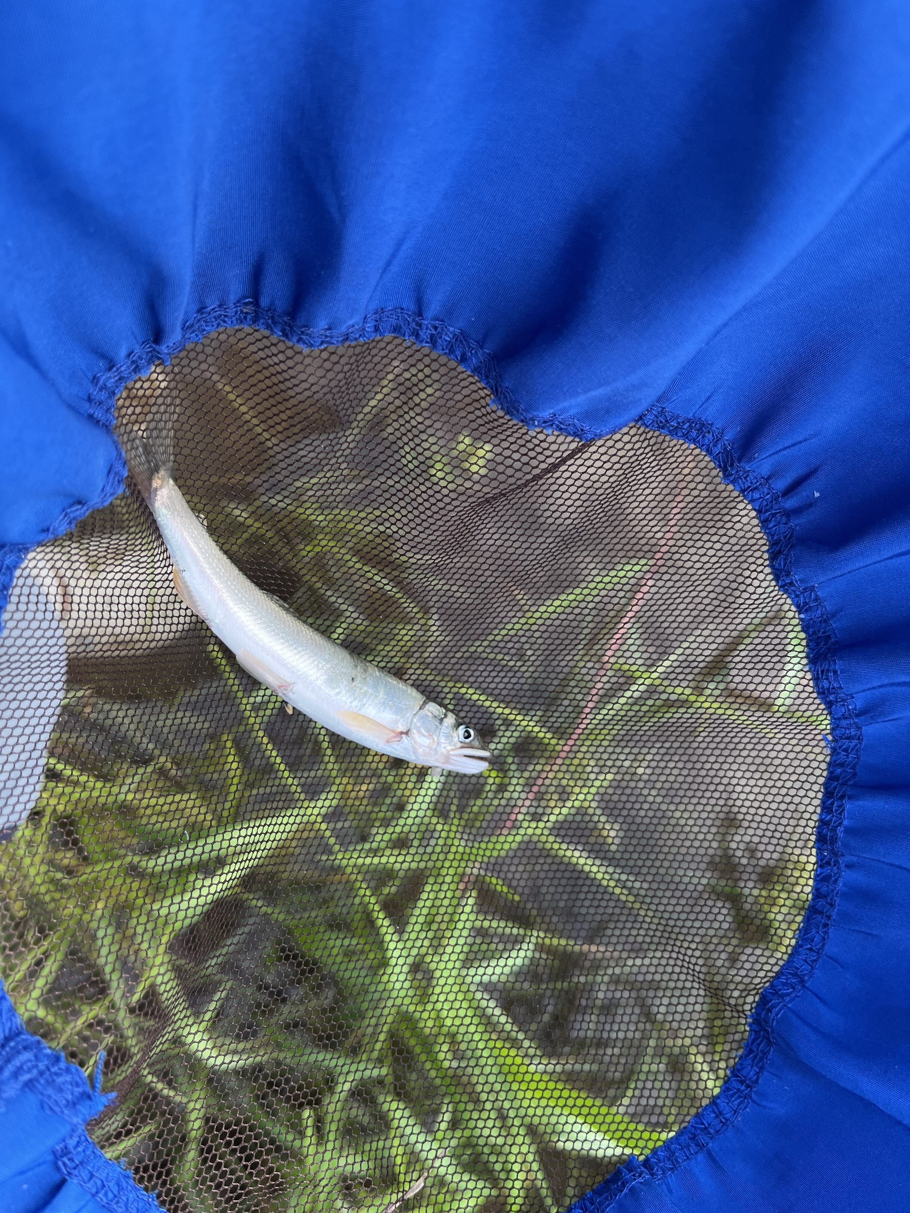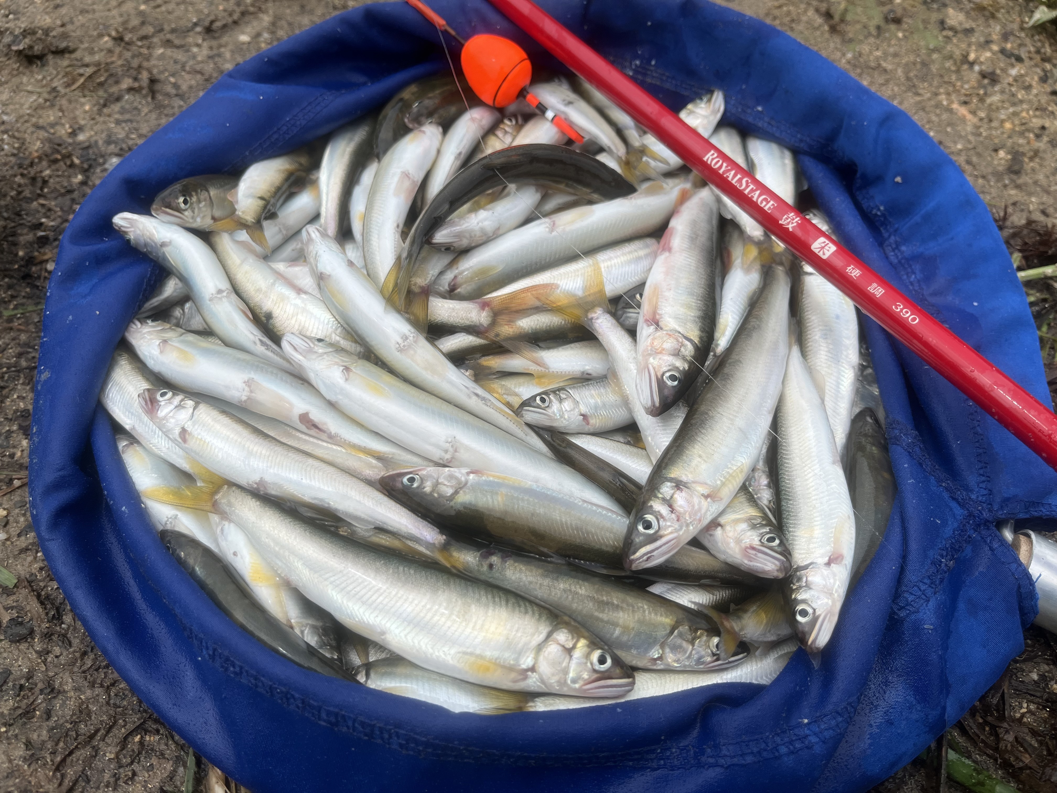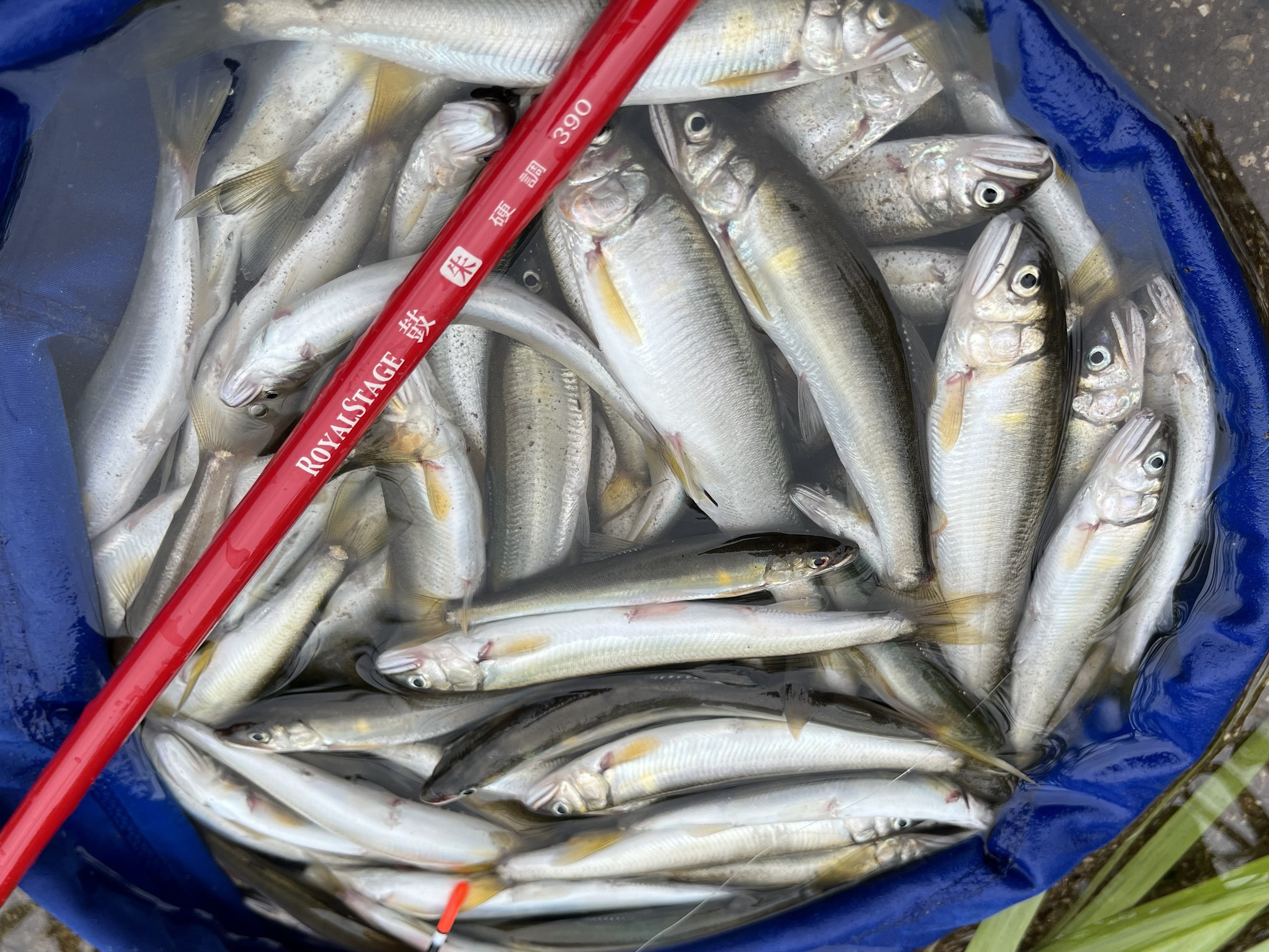 あっという間に鮎タモいっぱいの小鮎をゲット!サイズも12〜3㎝平均で最大18㎝をこえるものも釣れました。