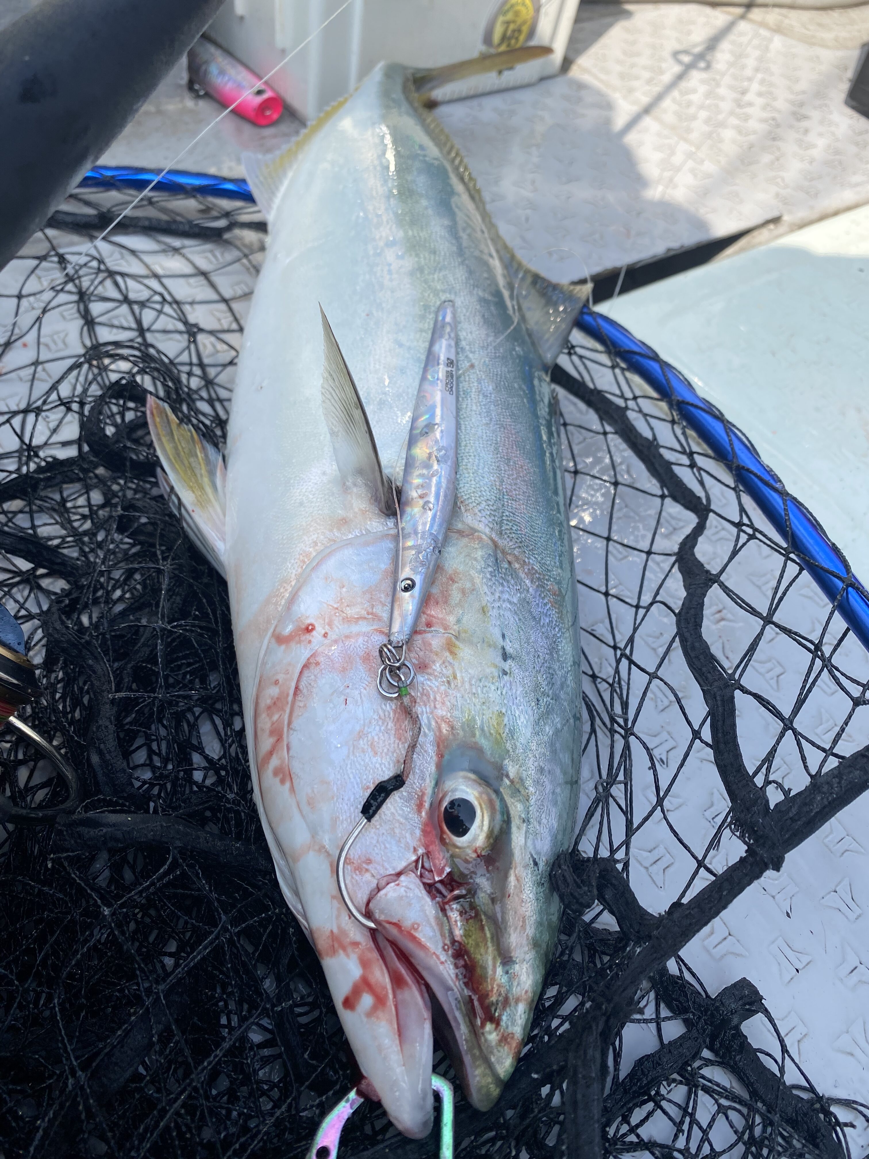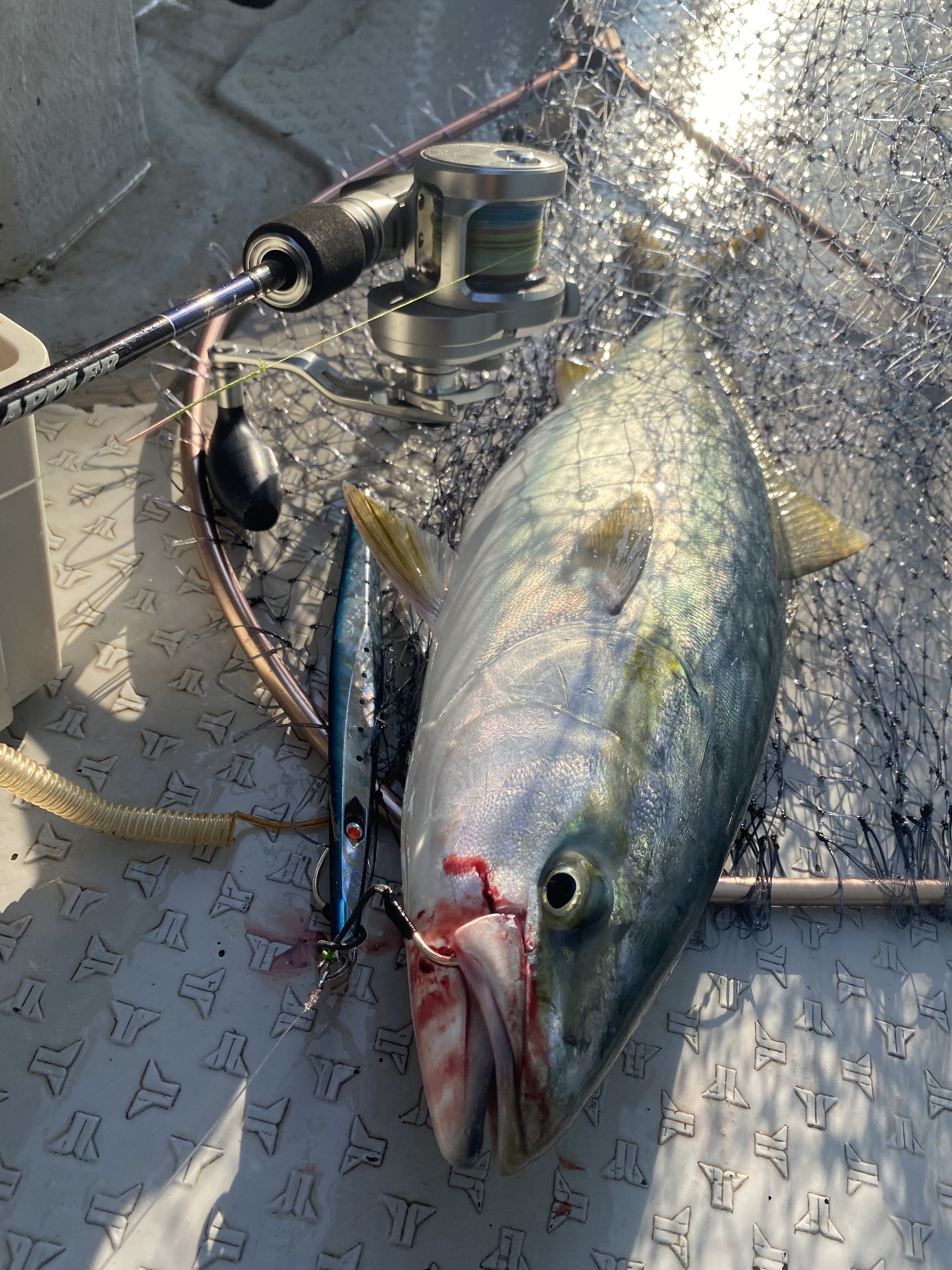 巻いて止めたり、しゃくり方を変えたりと工夫をしてなんとかハマチ2本とシオ1本キャッチ