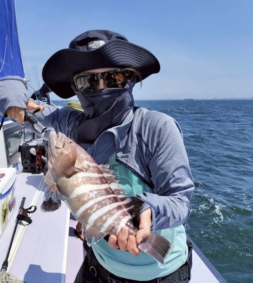 ハタゲット!細いハリスで40cm近い大物とは!素晴らしい❤️このあともデカカサゴ釣っておりました☺️嬉しいお土産です♪
