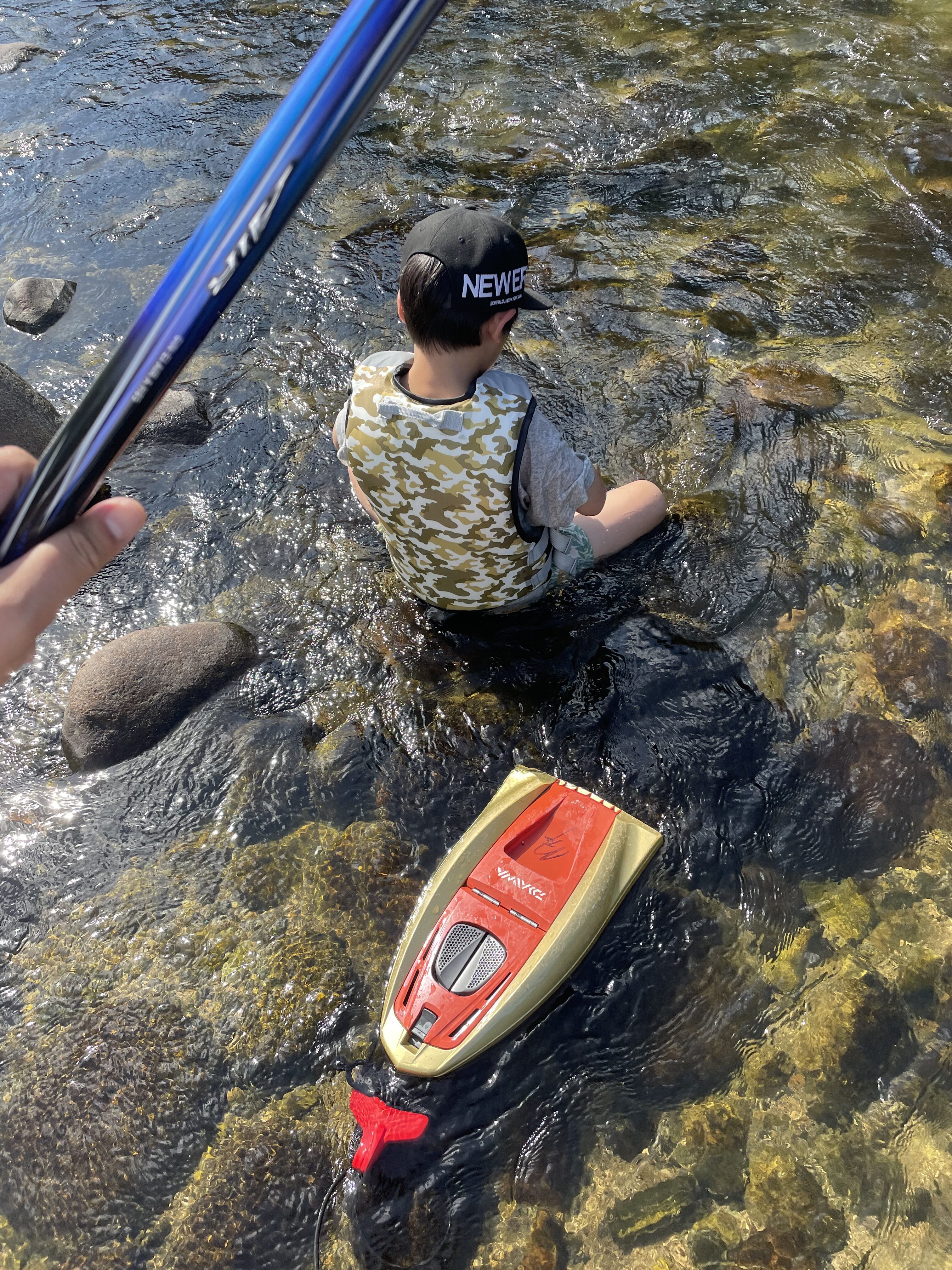 長男は水辺で生き物観察🔍自分は友釣り😊👌