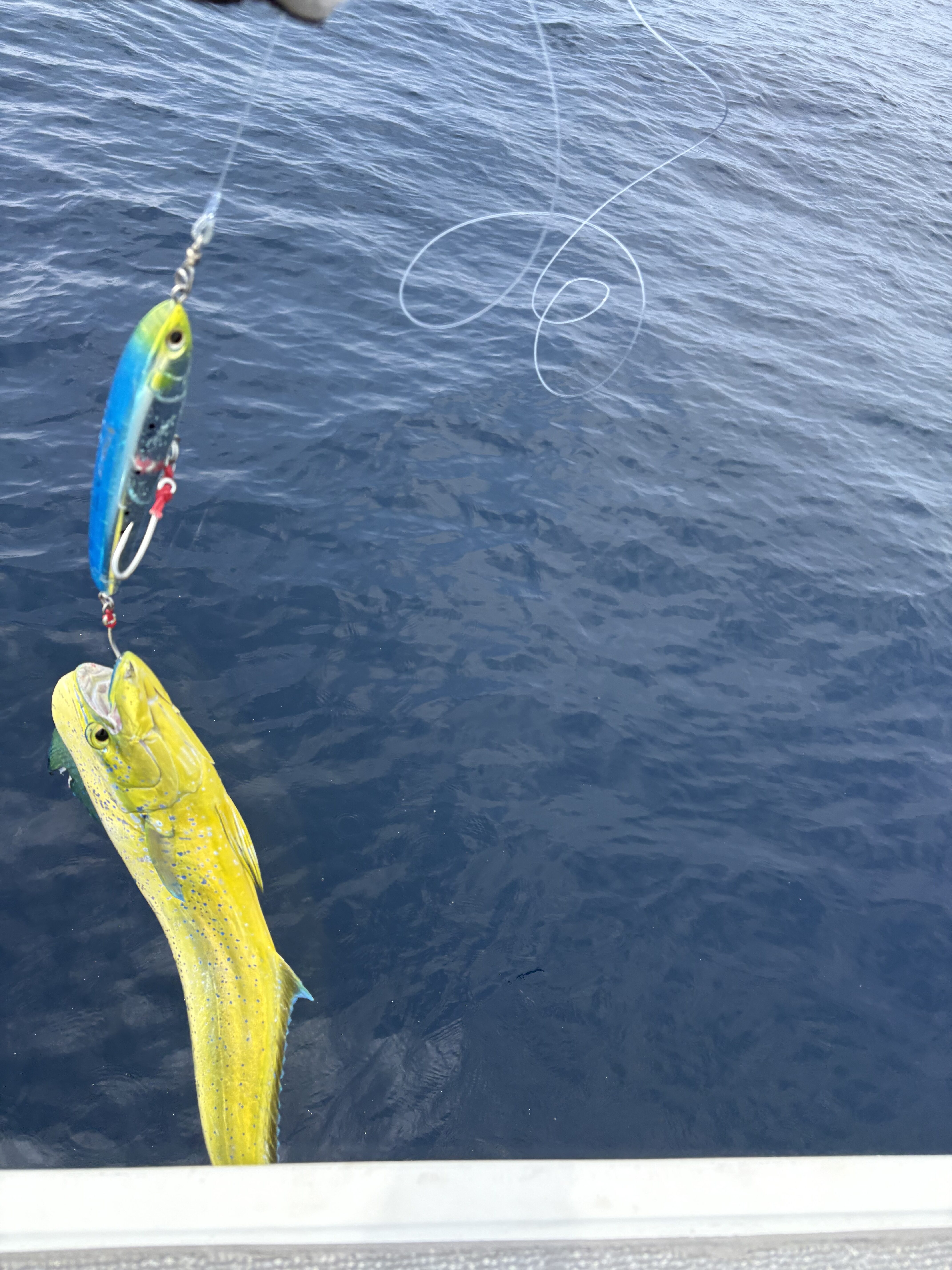 シイラ避けにをサイズアップしナルド210に。これでもシイラがヒットしてしまう。ペンペンサイズ~デコッパチのオスもおり、前後のフックに1匹ずつ掛かる1人ダブルヒットも何度か…