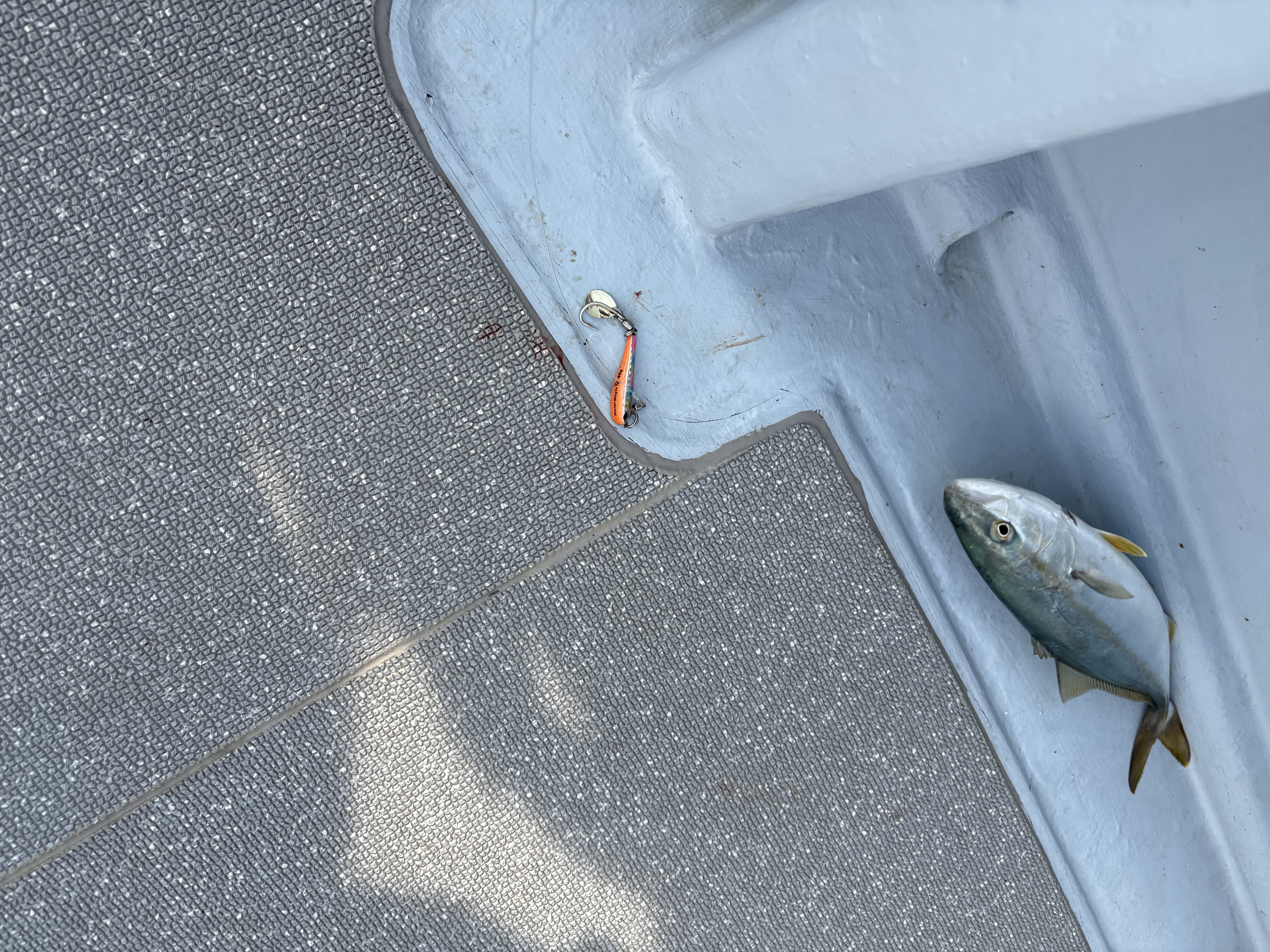 朝一鳥山を追うとキハダが跳ね同船者が掛けたが途中で抜けてしまう。
