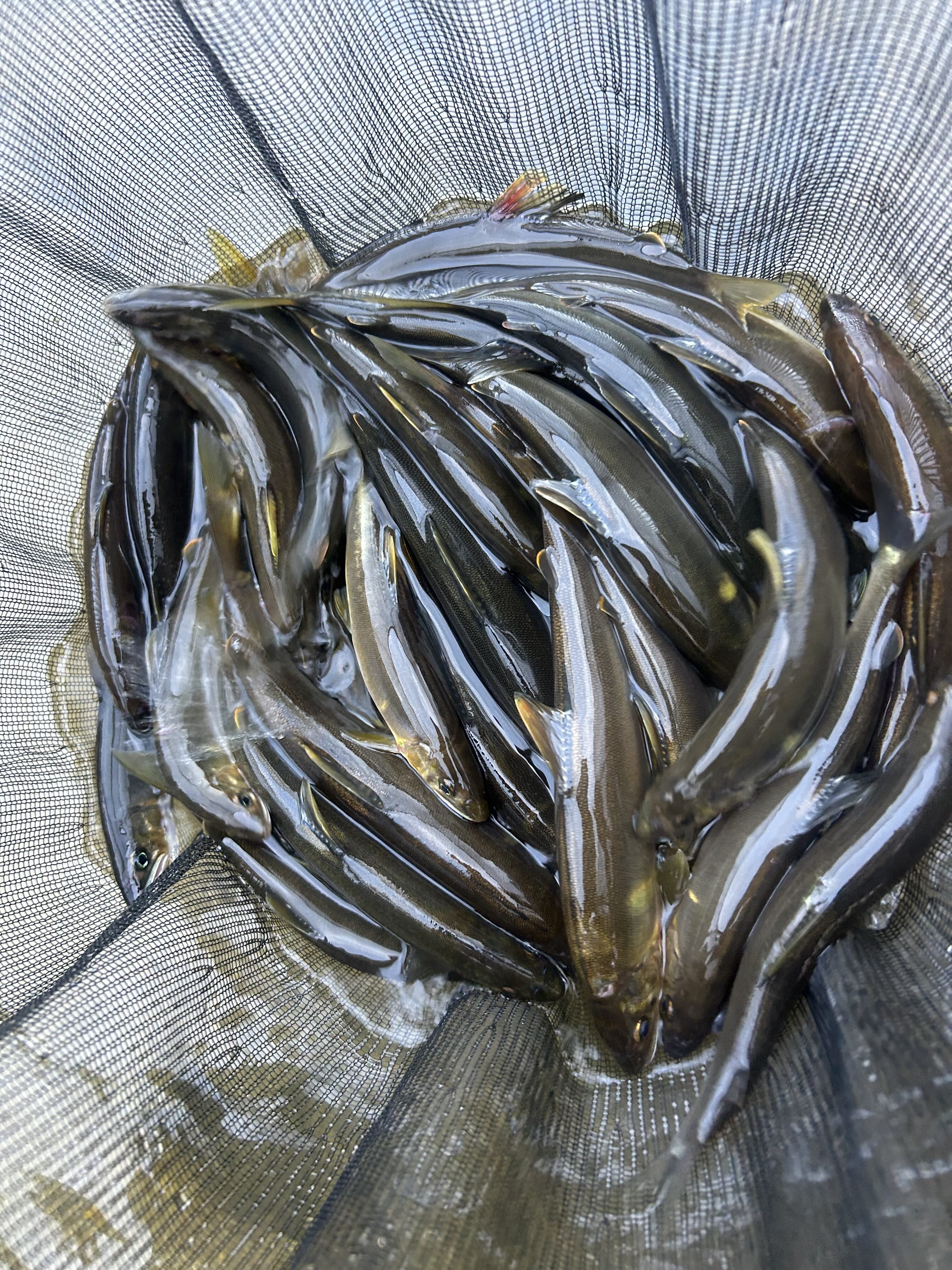お昼ご飯を食べ、釣り場を少し休ませたこともあり、午後イチは入れ掛りモード突入です。良型も混ざり、瀬の中でもトロ場でも勢いよく目印が動きます!