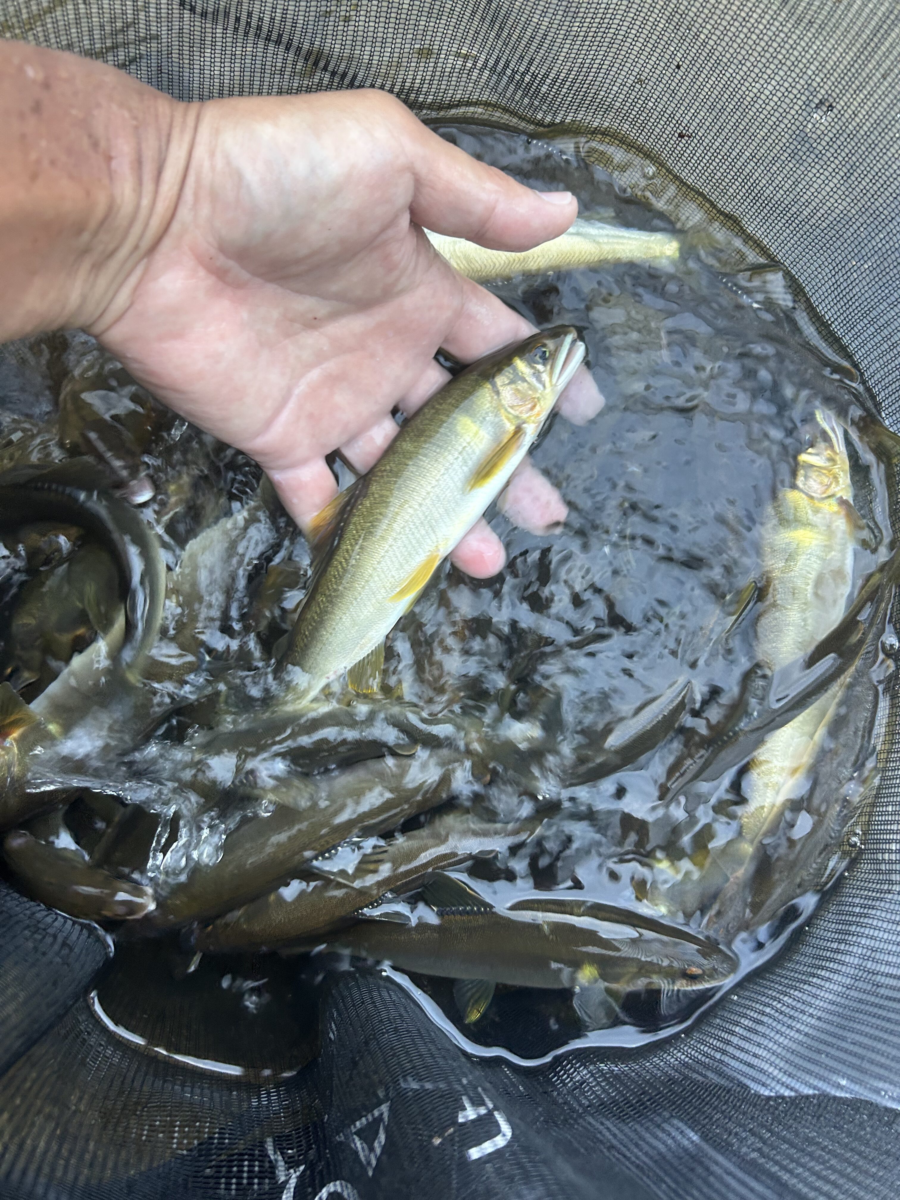 2025.08.26 印刷する 連日の鮎釣り 魚種 アユ/鮎 サイズ 22cm 数 鮎/26匹 釣り方 友釣り 鮎釣り 場所 三重県 天候 晴れのち曇り スタッフ 森下章広 店舗 堺店 釣行日 2025.08.25 コメント 昨日に引き続き、今日も三重県名張川です。 今日はリンクス梅田店の鮎の友釣り初心者二人との釣りですが、昨日の釣果を考えるといい練習になるのではと軽く考えていました。 早速釣りを開始しますが、明らかに昨日のような活性の高さは見られません。ポツポツは釣れるのですが、なかなか連発とはいきません。昨日のことが嘘のように鮎の追いは悪く、午前中は苦戦が続きます。 途中土砂降りの雨が降り、ずぶ濡れになりながらも竿は出し続けます。雨は15分ほどで止みましたが、その後太陽の光が差し込んだタイミングで少し活性が上がり、浅瀬で連発しました。 名張川は初心者であっても比較的釣りやすい川で魚影も濃くおすすめです。練習するにはもってこいの川だと思いますので、一度足を運んでみてください。 ブンブン堺店は鮎釣り用品も豊富に取り揃えていますので、是非お立ち寄りください。 釣った鮎は塩焼きはもちろんですが、素揚げ、南蛮漬けも最高に美味しいです。 使用した釣具 竿 シモツケ マイスターバージョン90 針 オーナー一角7号