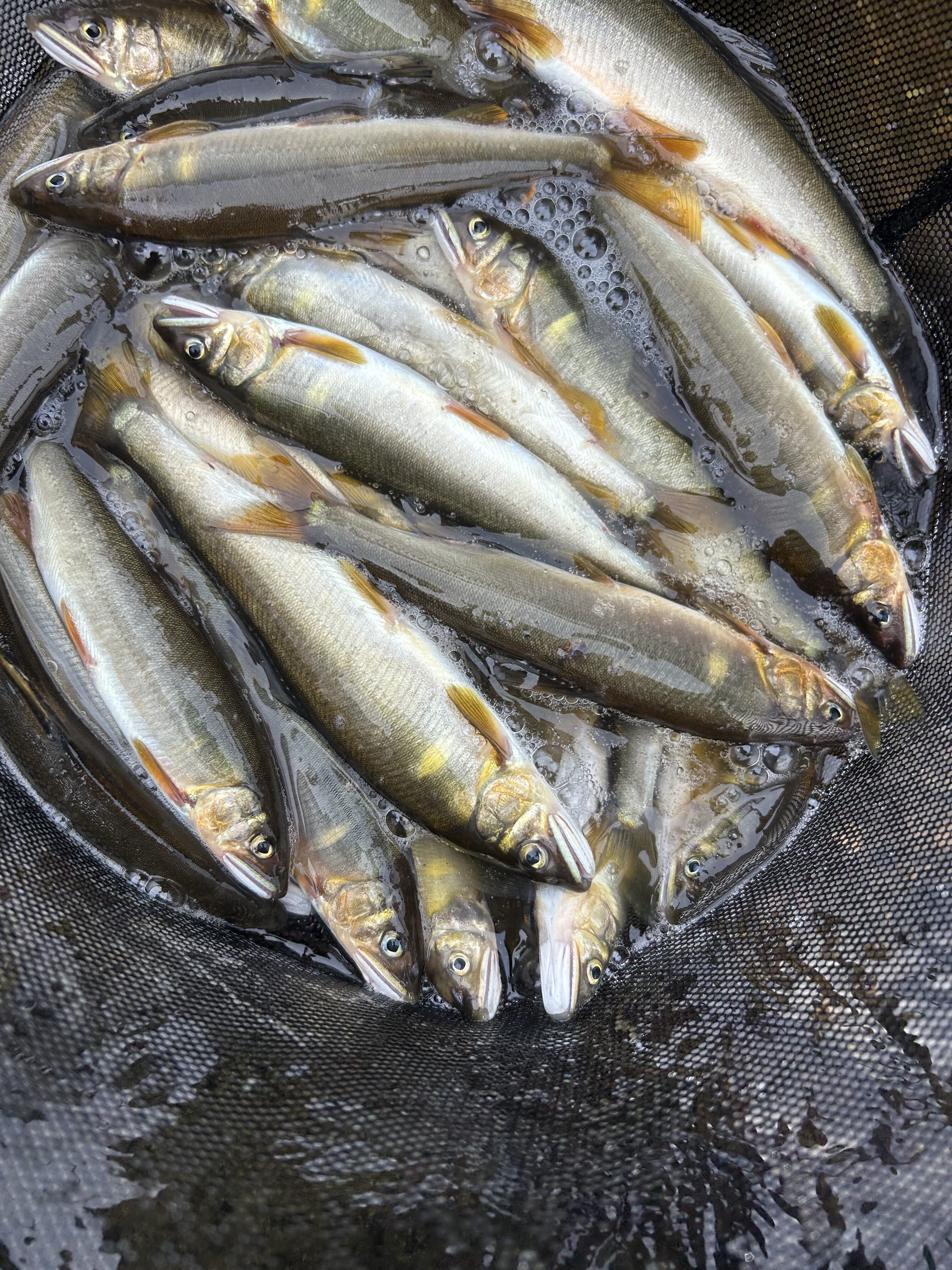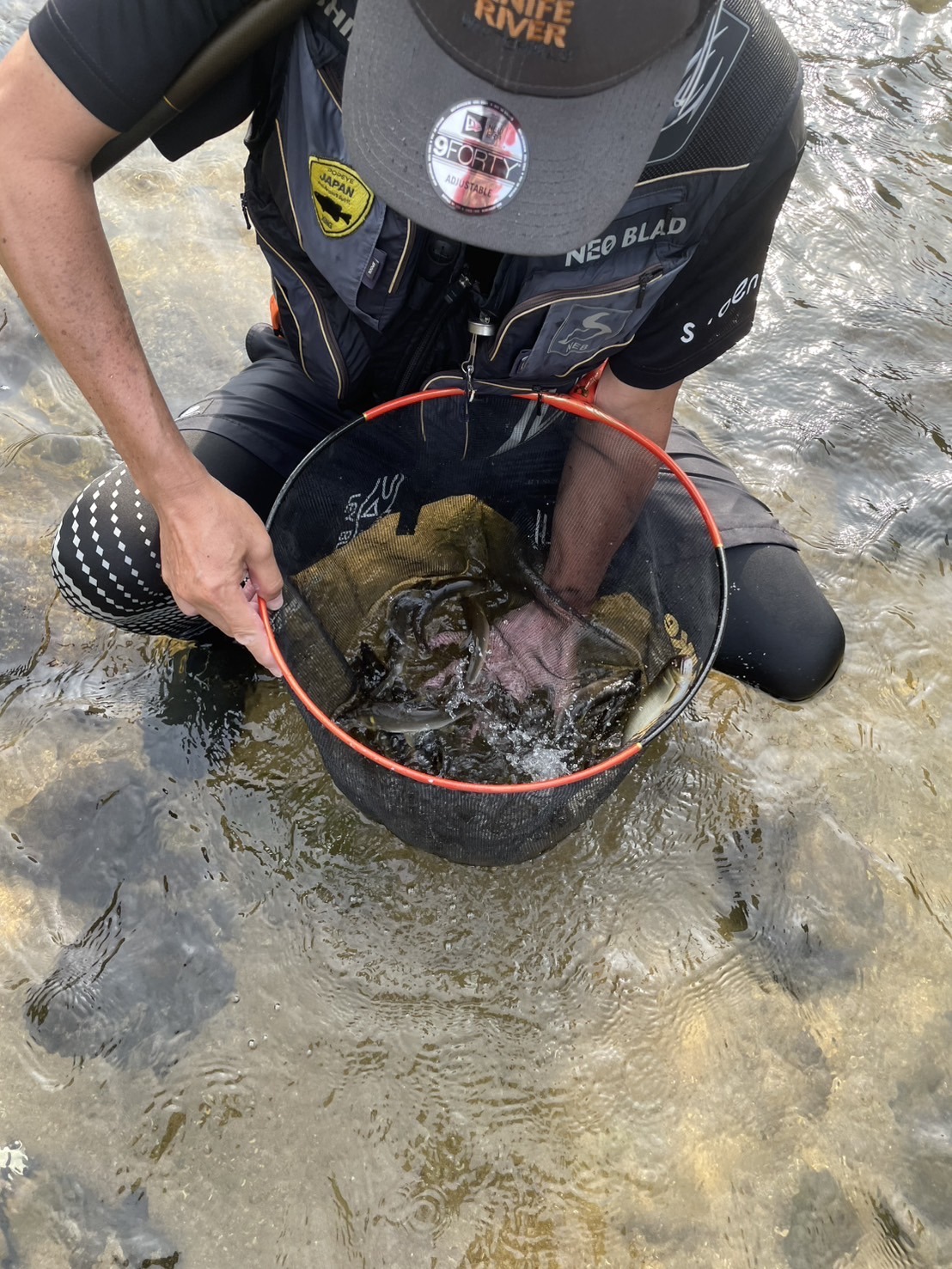 途中土砂降りの雨が降り、ずぶ濡れになりながらも竿は出し続けます。雨は15分ほどで止みましたが、その後太陽の光が差し込んだタイミングで少し活性が上がり、浅瀬で連発しました。