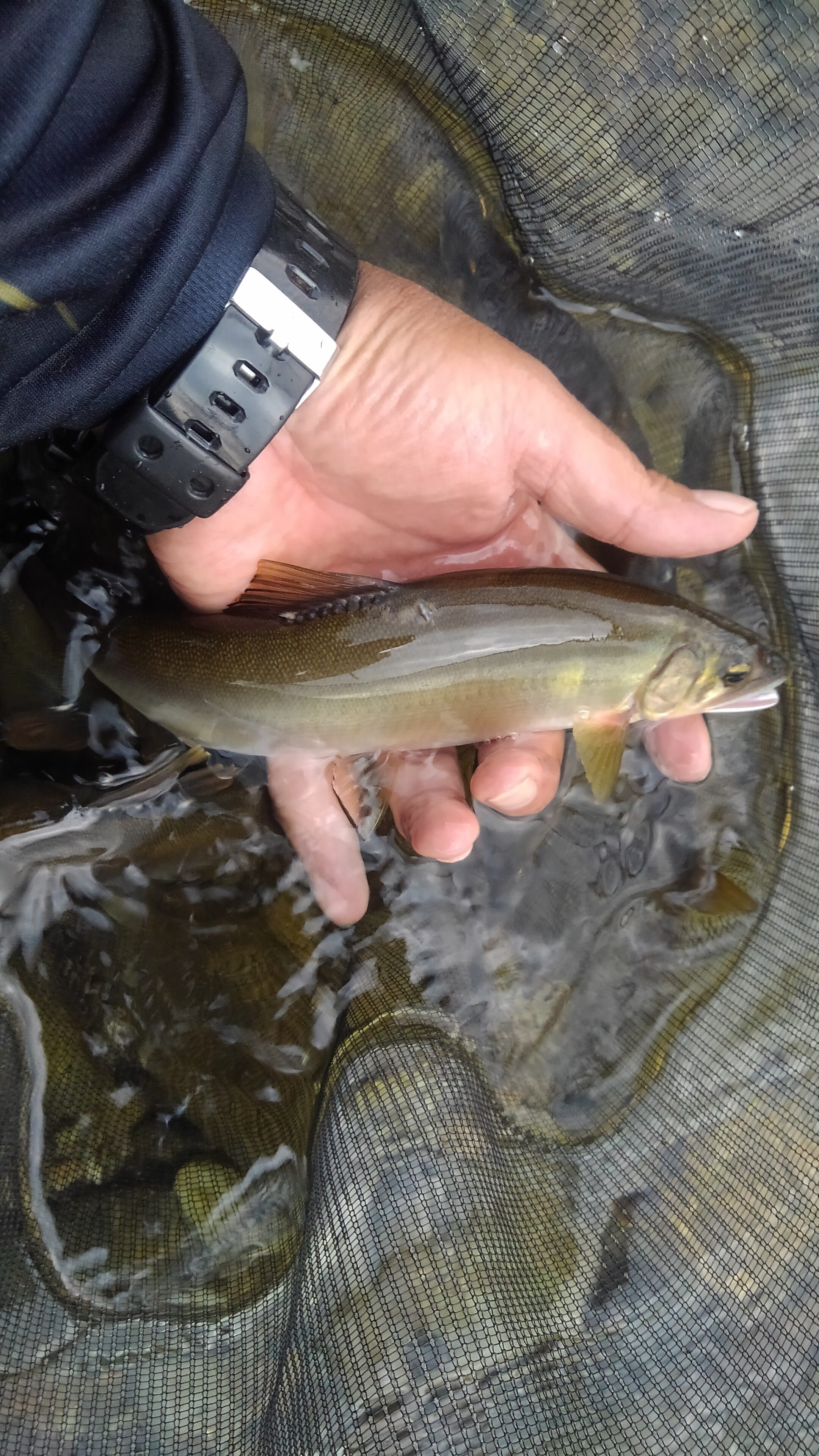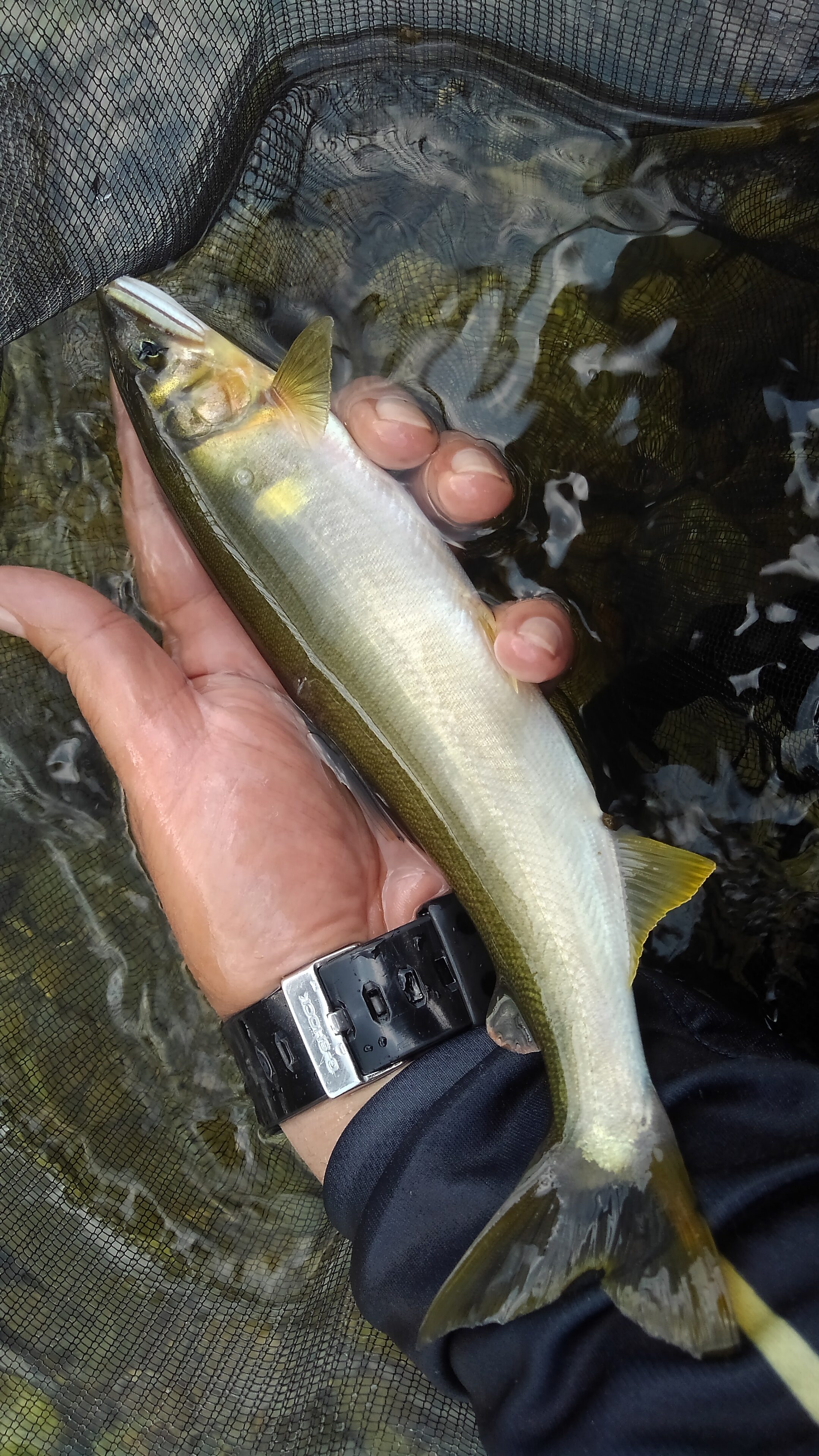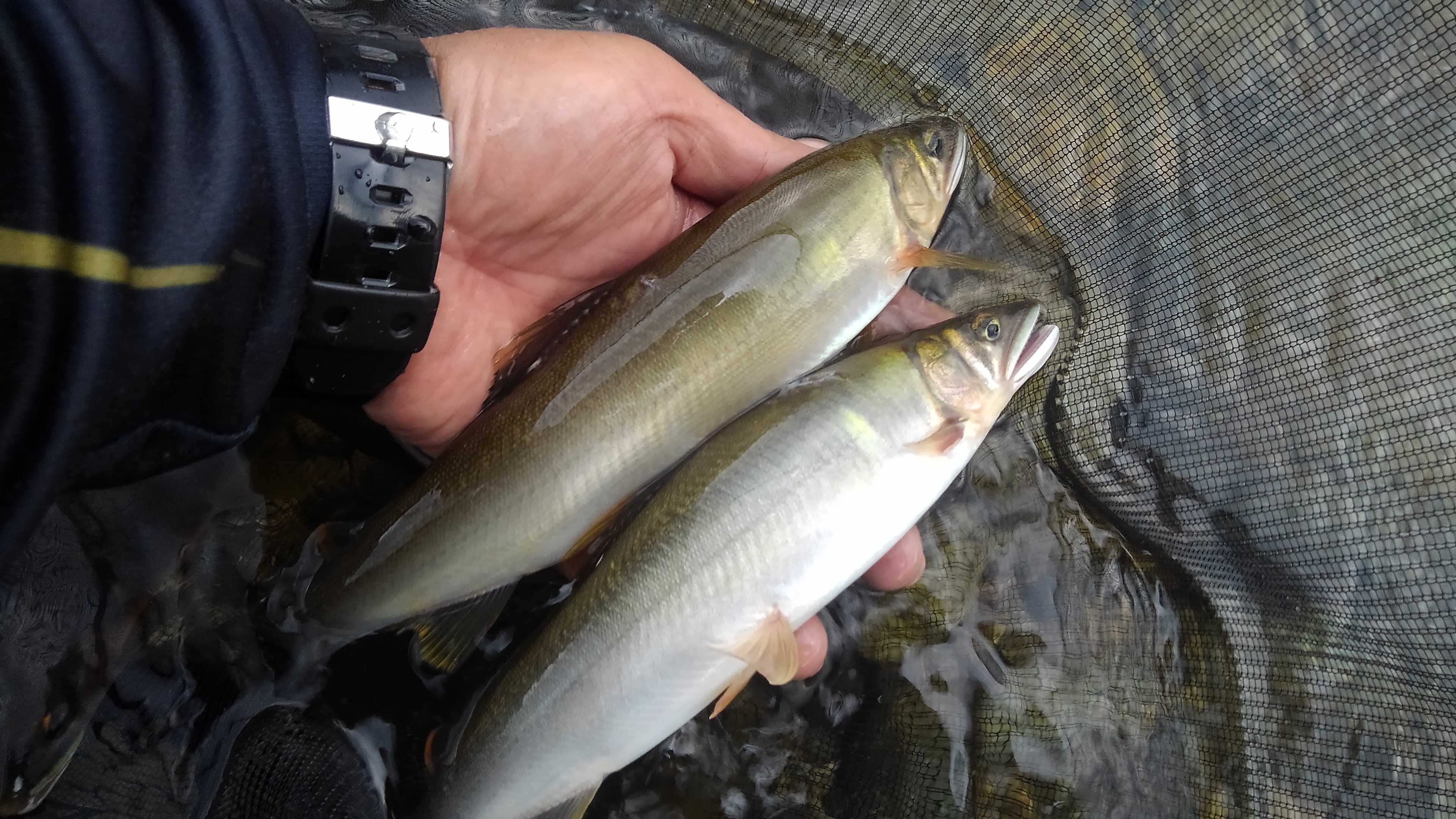 2025.08.26 印刷する 奈良県 吉野川の鮎 魚種 アユ/鮎 釣り方 友釣り 場所 奈良県 スタッフ 早野恵一郞 店舗 本社 釣行日 2025.08.24 コメント 今週の吉野川は朝から満員御礼で、駐車場もいっぱいでギリギリ止めれました。いよいよ吉野川の大きい鮎狙いの方が動き出した感じです。ようやく吉野川も各ポイントで釣れ出してきたのでよかったです。 朝一は混雑もあり、オトリ屋さんでしばし雑談。10時過ぎになってようやくスタート。空いてるポイントでスタートするも、先輩は目の前で入れ掛かり、反対の私は沈黙状態。下りながら、探っていくも、強い瀬に到達。背バリでは入らず、オトリも弱くなってきたので、オモリ打って瀬に入れます。安定したところでゆっくり引くとガツン!ようやく掛かりました。23センチ。約2時間で一発目。暑さもあり、一旦昼休憩。 午後2時前に再スタート。午前中釣った使ってない元気なやつで同じポイントに入りました。オトリ屋さんから、「もっとヘチのかけあがりやってみい」とのアドバイス通り、ヘチを引くと一発でガツン!よく引いて24センチ!そっから、23~24センチが入れ掛かり、ヘチに反応なくなったので強い流芯に入れて引いていくと、気持ちいい一気に引ったくるガツーンアタリ!これでハリスを飛ばされること多々あるので太ハリスがオススメです。よく引いてくれて25センチ!そいつをオトリに引いてやるとまたまたガツーン!25センチ追加(笑)その後も同サイズがポツポツ掛かり、ギリギリまでやりたかったですが、4時前に雷が激しくなり、安全第一で終了としました! いよいよ奈良県吉野川は、本格的に大鮎シーズン突入ですね!強い竿、強い仕掛け、デカイ針で、楽しんでください! 利用オトリ店 下西オトリ店 使用した釣具 竿 がまかつ ダンシングマスター HH85 仕掛 サンライン 天糸1.0 フロロ0.3 がまかつ 要R7.5~8.0号 3本錨