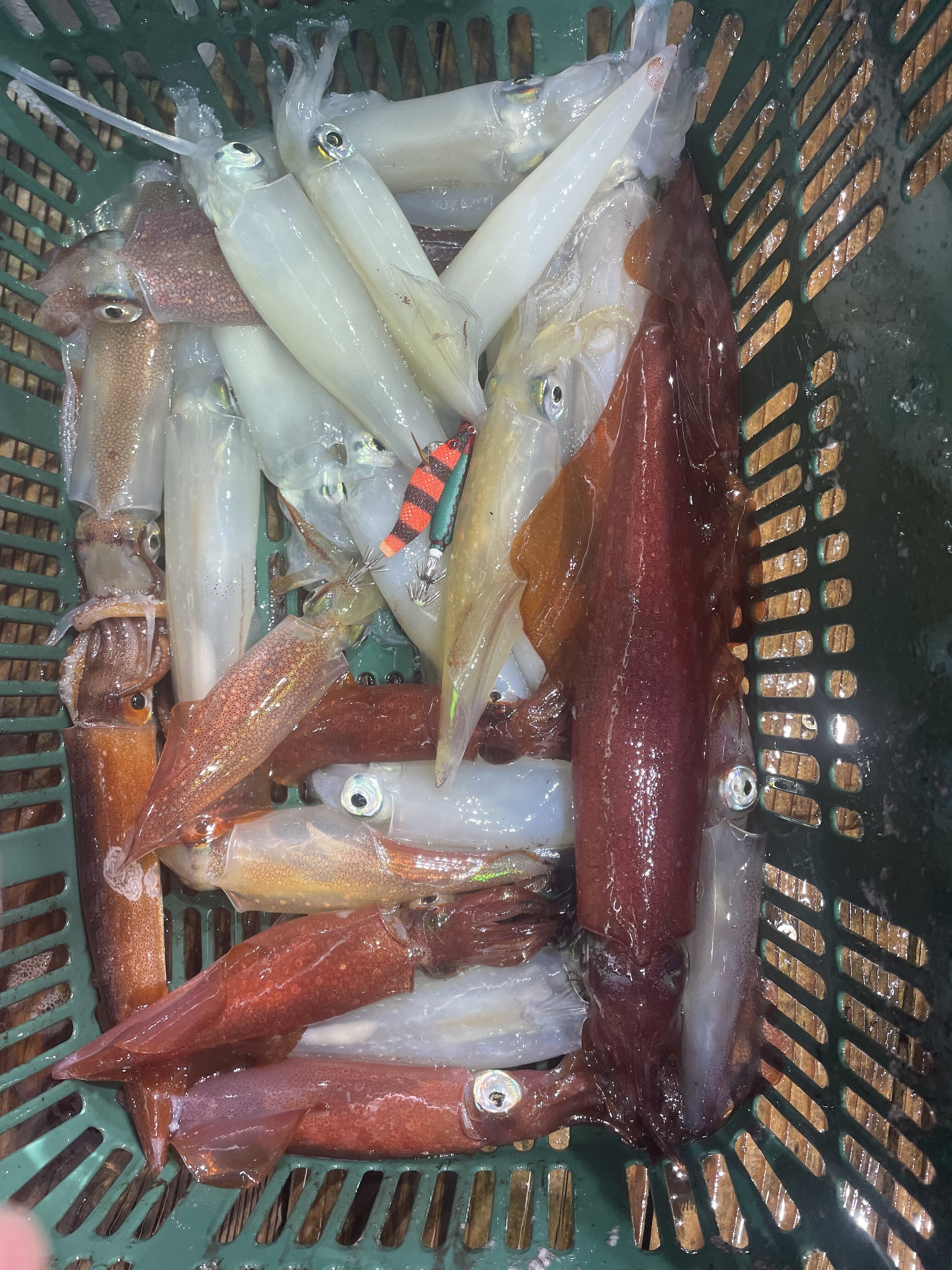 そこからは船中大フィーバー😁あちこちで竿が曲がります😁この日はじっとしてるより、ステイ短めでアピールしまくった方が、反応が良かったです😊やっぱりイカメタルは奥が深いですね😁
