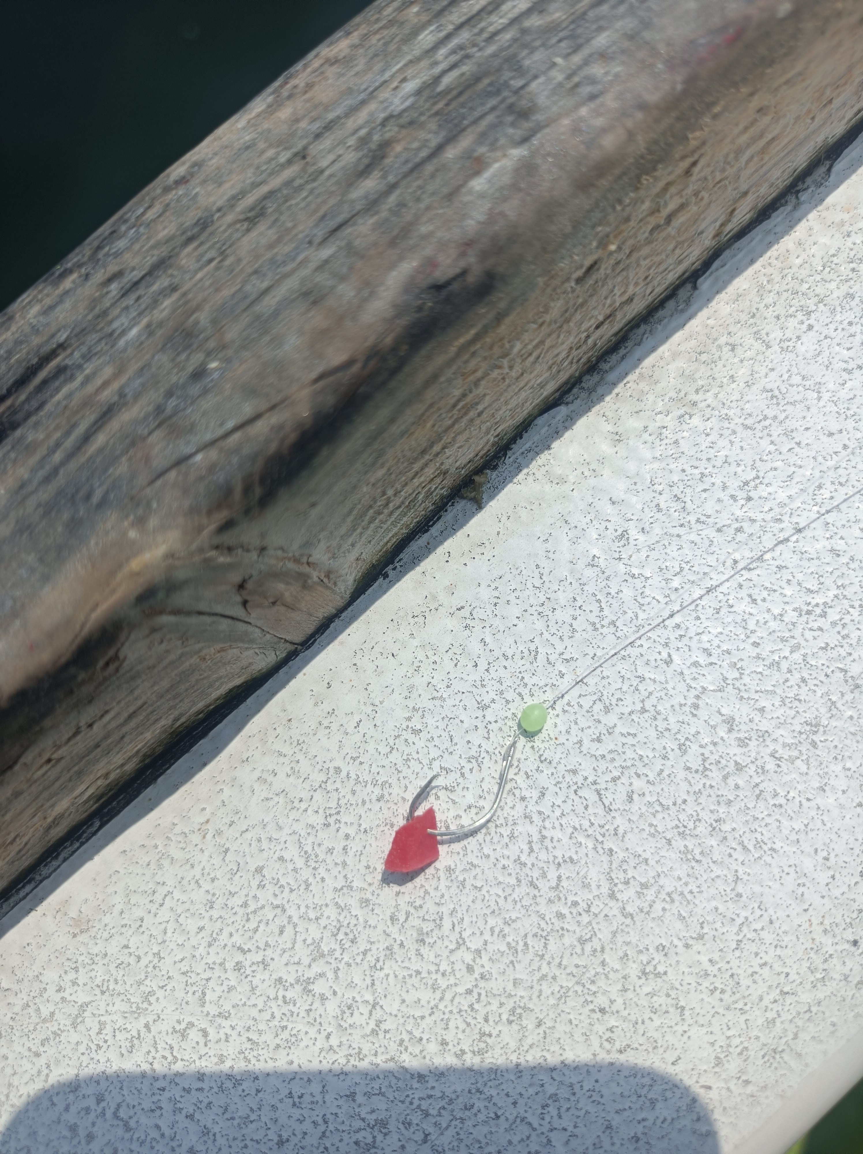 ・(例)指示ダナ3m時→仕掛け2m使用時、底から約1mで振って仕掛け分の2m前後巻いて止める。潮の上げ時下げ時があるのでタナはずっと同じではない為、あまりブレない程度に探る。竿を軽く持ち上げるか下げるか程度の範囲。