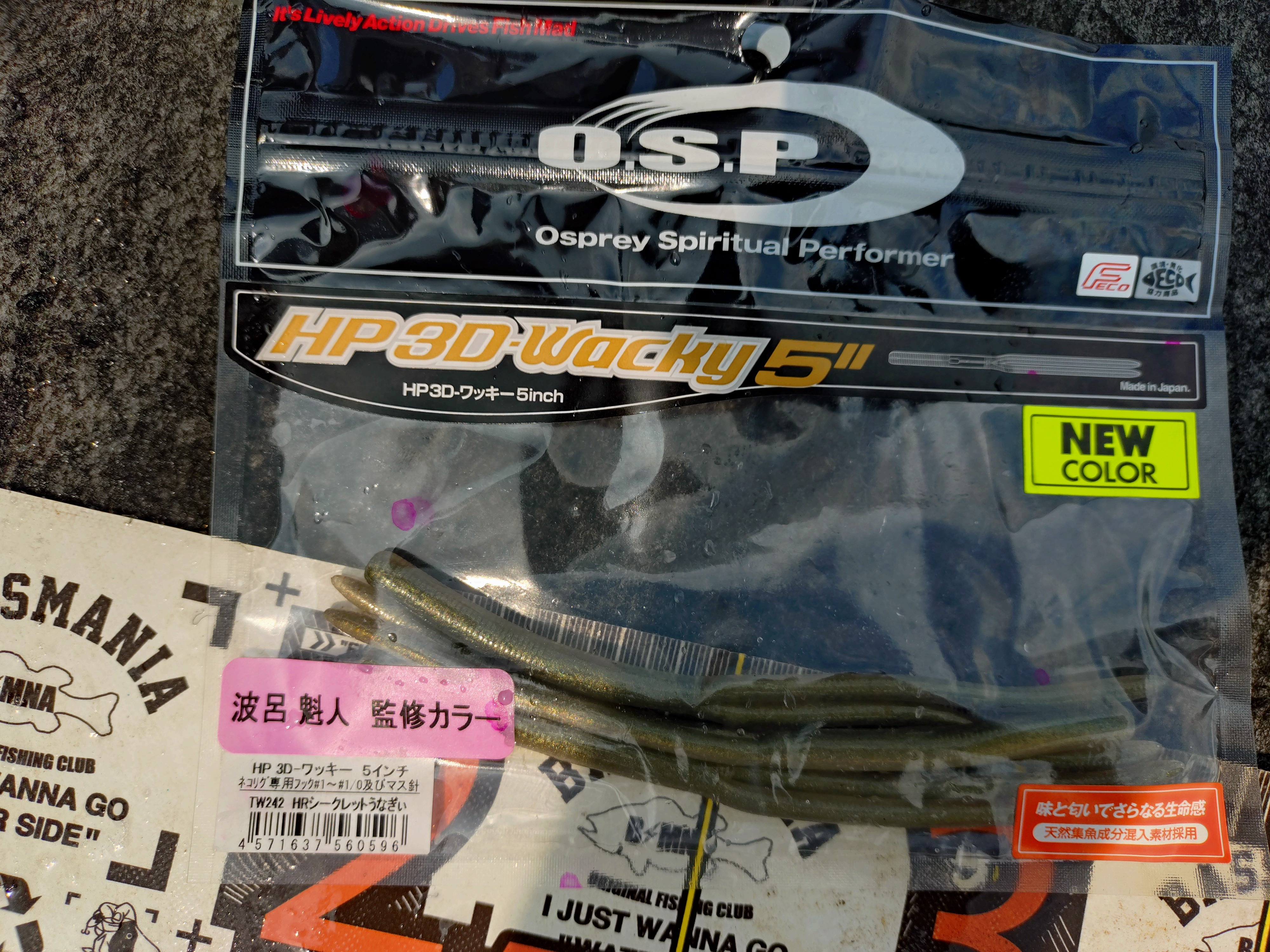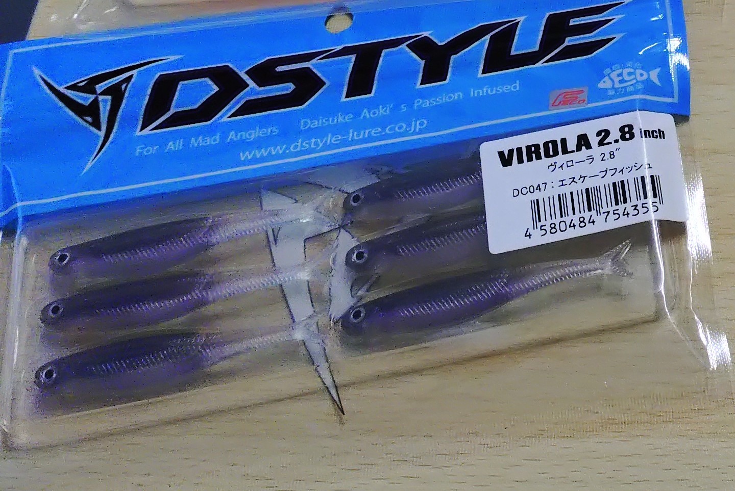 - ①レイドジャパン、アジャストレート12インチ1.8gネコリグ、OSP、HP3Dワッキー5カバーネコリグ、②ディスタイル、ヴィローラ2.8、0.3gマスバリ