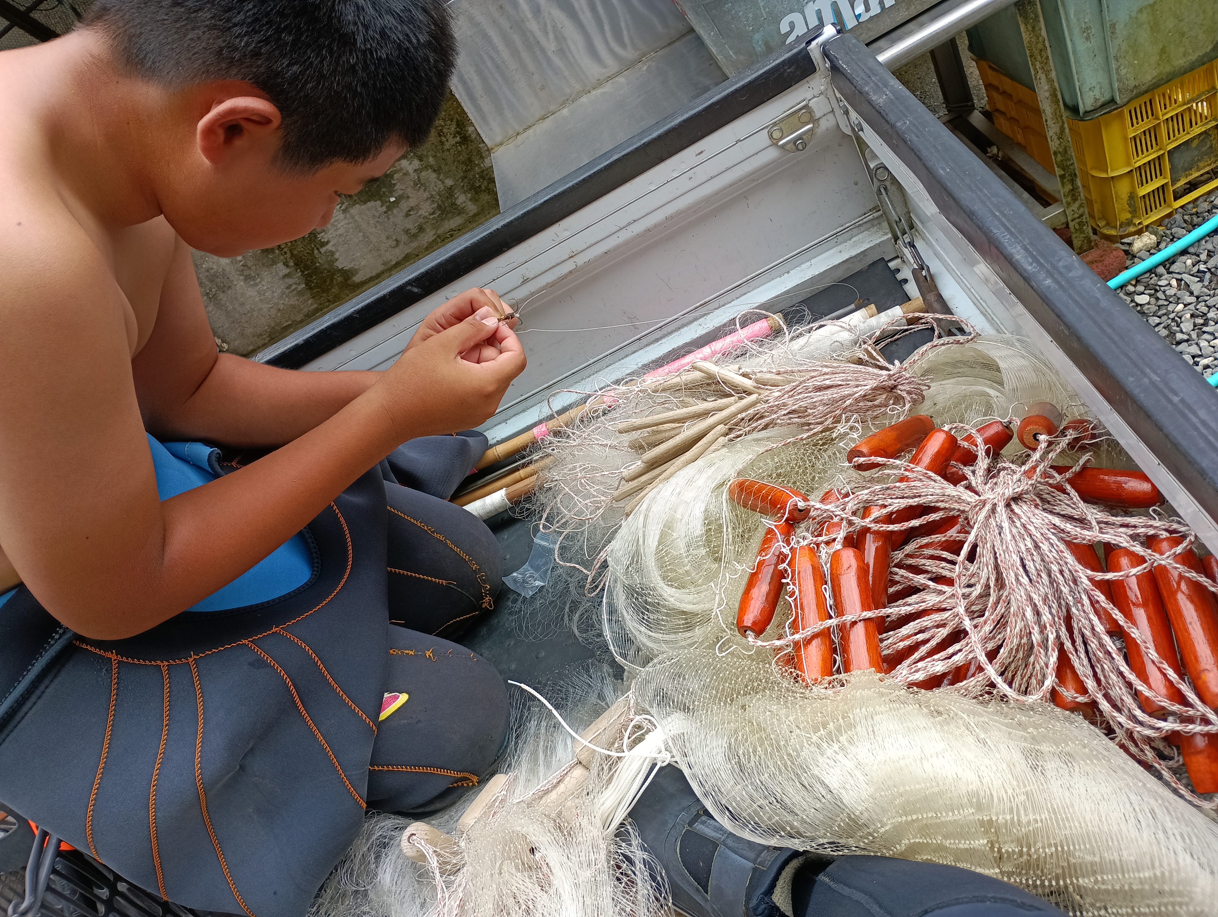 水中メガネと引っ掛ける竿を持ち、頑張りましたが今年は4匹でした