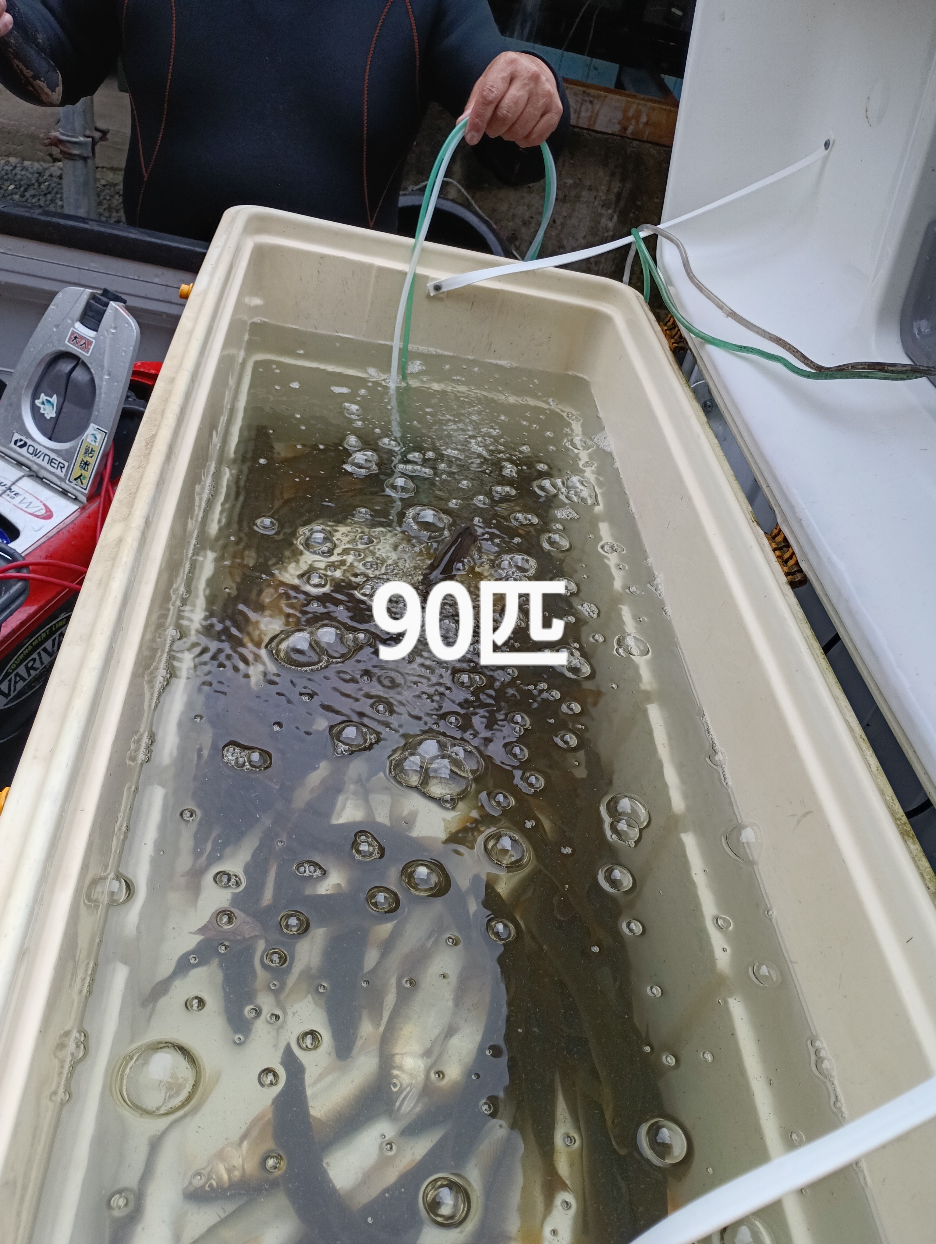2025.08.28 印刷する 美山川へ今期最後の友釣り&網入れお手伝い♪ 魚種 アユ/鮎 サイズ 20~23センチ 数 鮎/4匹 釣り方 友釣り 場所 京都府 天候 晴れ時々雨 スタッフ 平川葉子 店舗 堺店 釣行日 2025.08.27 コメント 今日は今期最後の美山川の友釣りにやってきました。 美山川は24日より専用区以外は網入れが少しづつ入っております。 朝9時、ひまわり囮店に到着。常連のiさんと女性釣り師のjさんがポイントへ行くというので、同行させて頂きます 場所は松原堰堤の下。渓流層でキレイなポイントです。 ここはトロ場では少し網が入ったということですが、瀬や白泡のところは網が入れにくいのでやってみてとiさん。 さっそく囮を通しますが反応なし…。どんどん釣り下がって行きますが反応はありません… 下からiさん達が上がって来られましたが掛からなかったそうです… 一旦、ひまわり囮店にもどり、お昼を食べて、午後からは店主、上林さん達と田歌に網入れに同行させて頂きます 網入れはトロ場の上下に網を張り、徐々に集めて鮎を引っ掛けるというもので、 鮎の動きは相当早く…去年は1匹しか掛けれませんでした。 水中メガネと引っ掛ける竿を持ち、頑張りましたが今年は4匹でした ひまわり囮店にもどり、検量すると全部で90匹。殆どが上林さんが掛けたものです。 それを上林さんが焼いてくれました。 美山川の鮎は、きき鮎グランプリで何度も準優勝しているとても美味しい鮎です。 常連さん達と頂き帰路につきました。 放流河川では、結構群になってる個体も多く、夏の終わりを感じられます これからは天然遡上河川や大鮎シーズンの突入となり、残りわずかなシーズンを楽しみたいと思いますので、 投稿をご覧いただき、また店頭でお声かけいただきご参考にされて頂きましたら幸いです🙇 また、堺店では、鮎用品が通常価格よりさらに10%オフ(当社指定品に限る)となっております。 ぜひお立ち寄り下さいませ お待ちしております! 使用した釣具 竿 ダイワ銀影競技axh85 引っ掛け竿 手製