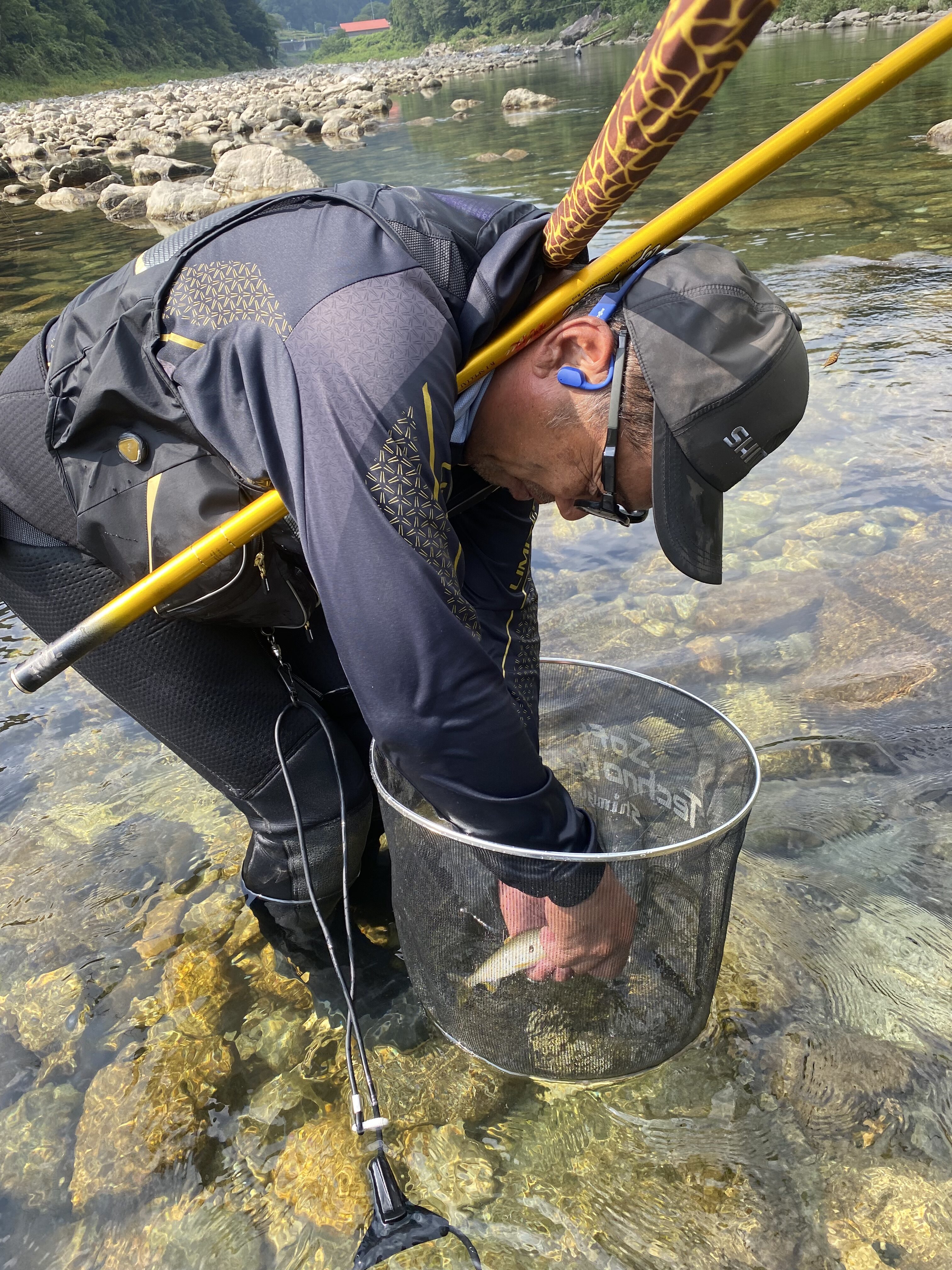 常連様の泳がせ釣りを見学🎣鮎が元気よく泳いでいき、大きな岩や流れの筋に入ると鮎がヒット!!