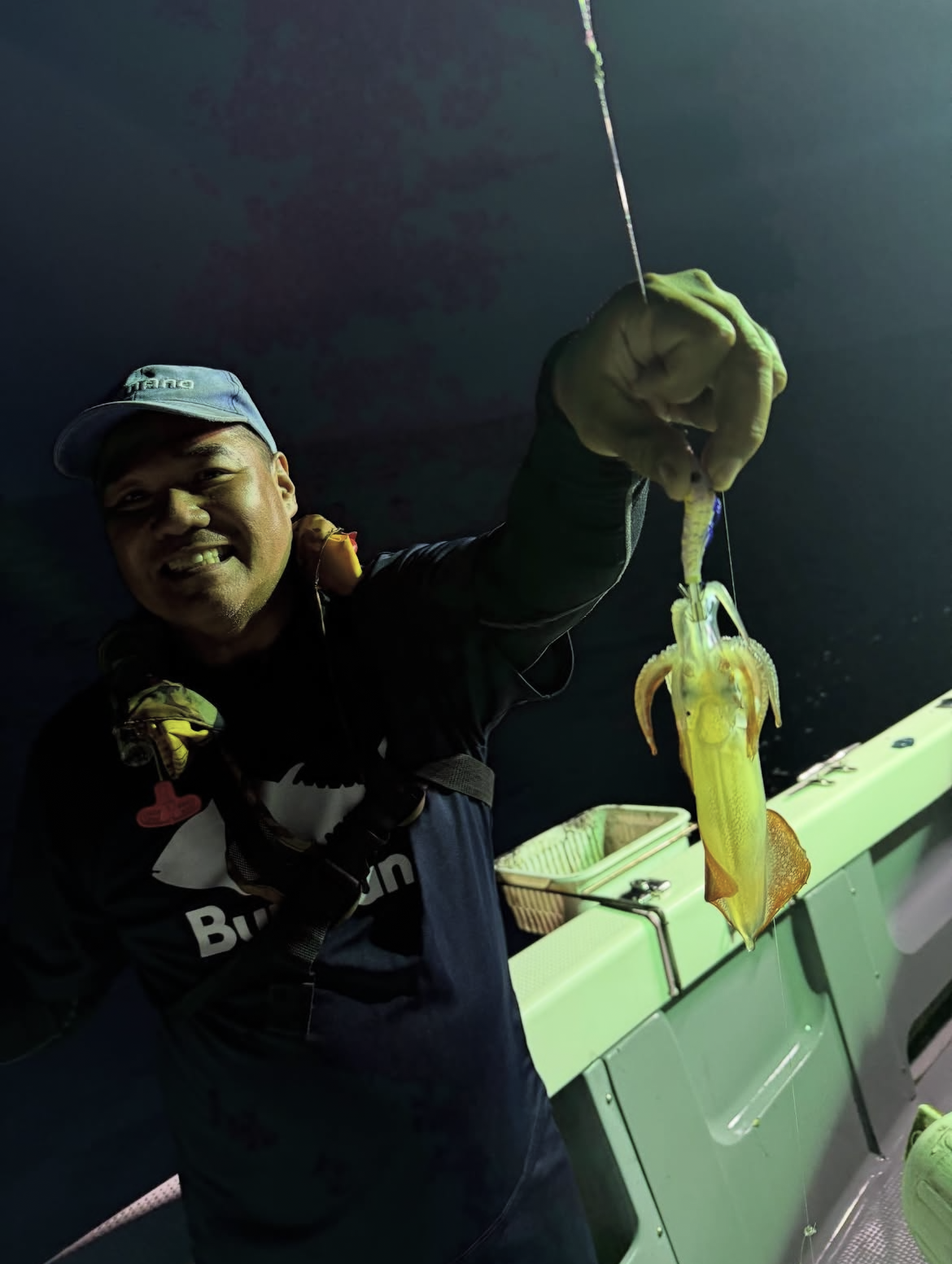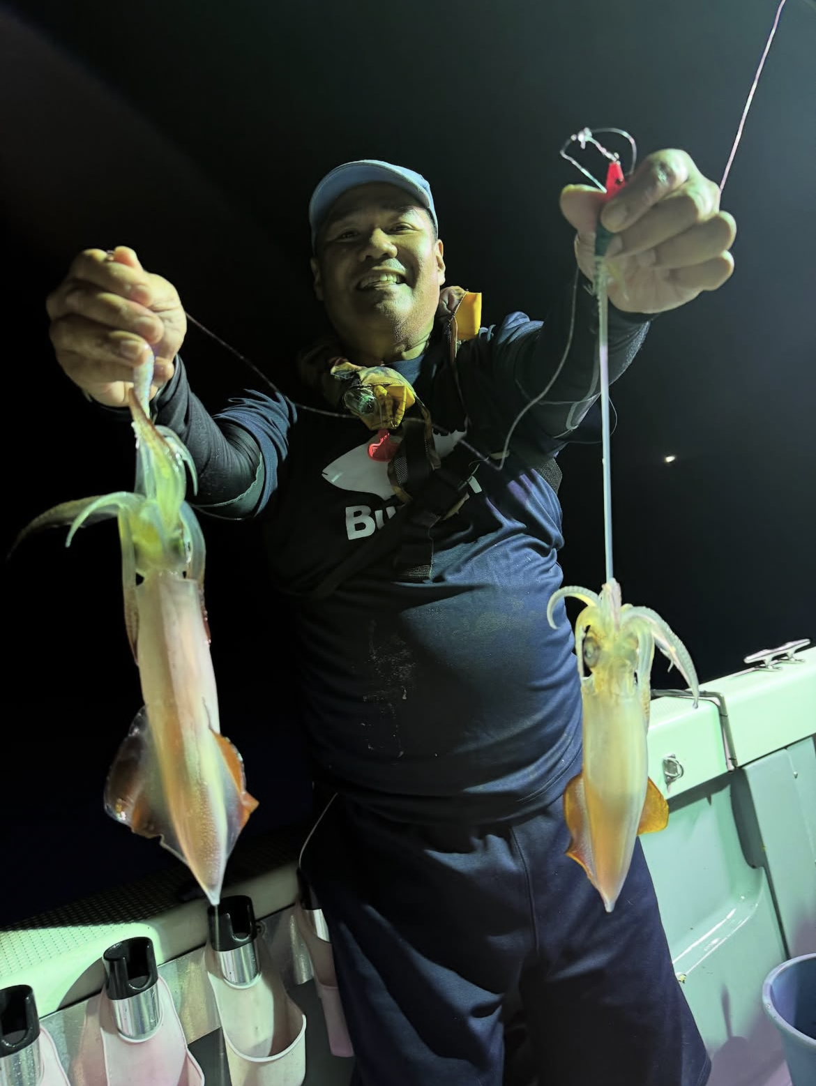 釣り上げ途中サバの層に邪魔されたりしながらも白いか30杯と満足な釣果で11時半にストップフィッシング。