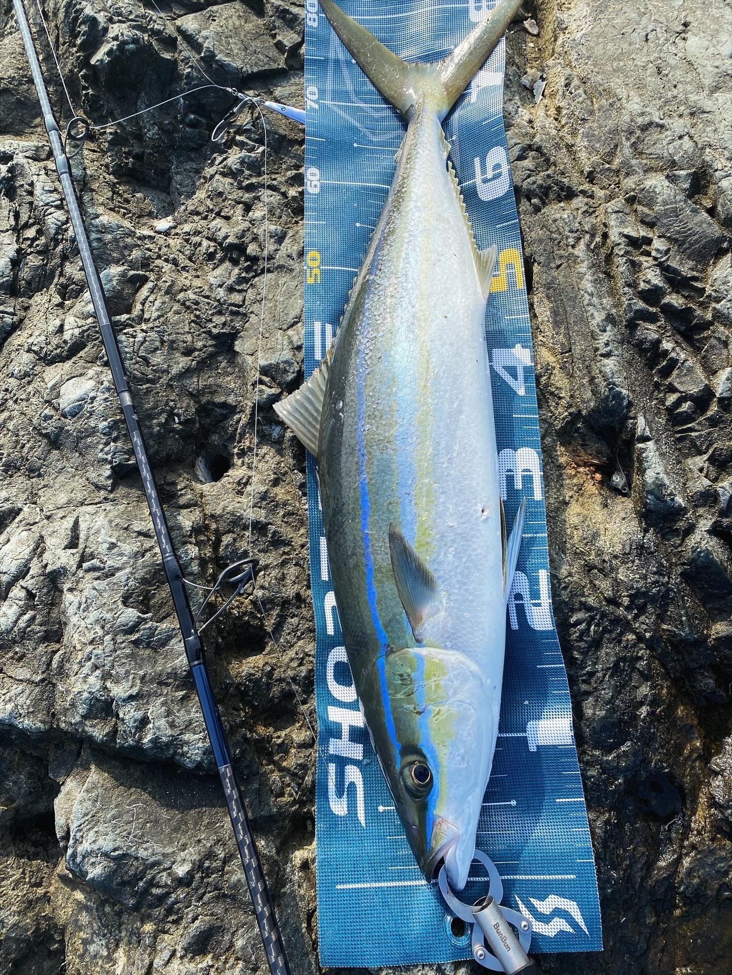 2025.09.01 印刷する 串本ロックショアゲーム サイズ ツムブリ/85cm 釣り方 ロックショア 場所 和歌山県 スタッフ 今中颯 店舗 高槻店 釣行日 2025.08.28 コメント お疲れ様です。高槻店今中です。 今回は和歌山県串本町潮岬へ行ってきました。仕事が終わってすぐ本州最南端潮岬へ お世話になったのは《うりた渡船》朝は何も出ず、周りも釣れず笑着いて早々にカンパチの群れ手前にいましたがルアー見向きもしませんでした 満潮になるまでが勝負ということだったんでひたすらプラグ投げて休憩にジグ投げての繰り返し引き抵抗少なくて軽くシャクれる《プレッジ クロスダガー》を底ネチネチシャクってたらズドン カンパチでもないけどめちゃめちゃ走る魚は南にしか見られないツムブリでした。南の島でもなかなかお目にかけれないサイズが和歌山で釣れることに驚きです。 今回初めて《うりた渡船》さんにお世話になりましたが、差し入れをくれる心優しい船長ですので是非串本に行く際はご利用くださいませ 使用した釣具 ロッド 24コルトスナイパーSS S100H リール 21ツインパワーSW6000HG ライン バリバス8 2号 フィッシュグリップ ブンブンオリジナルフィッシュグリップ