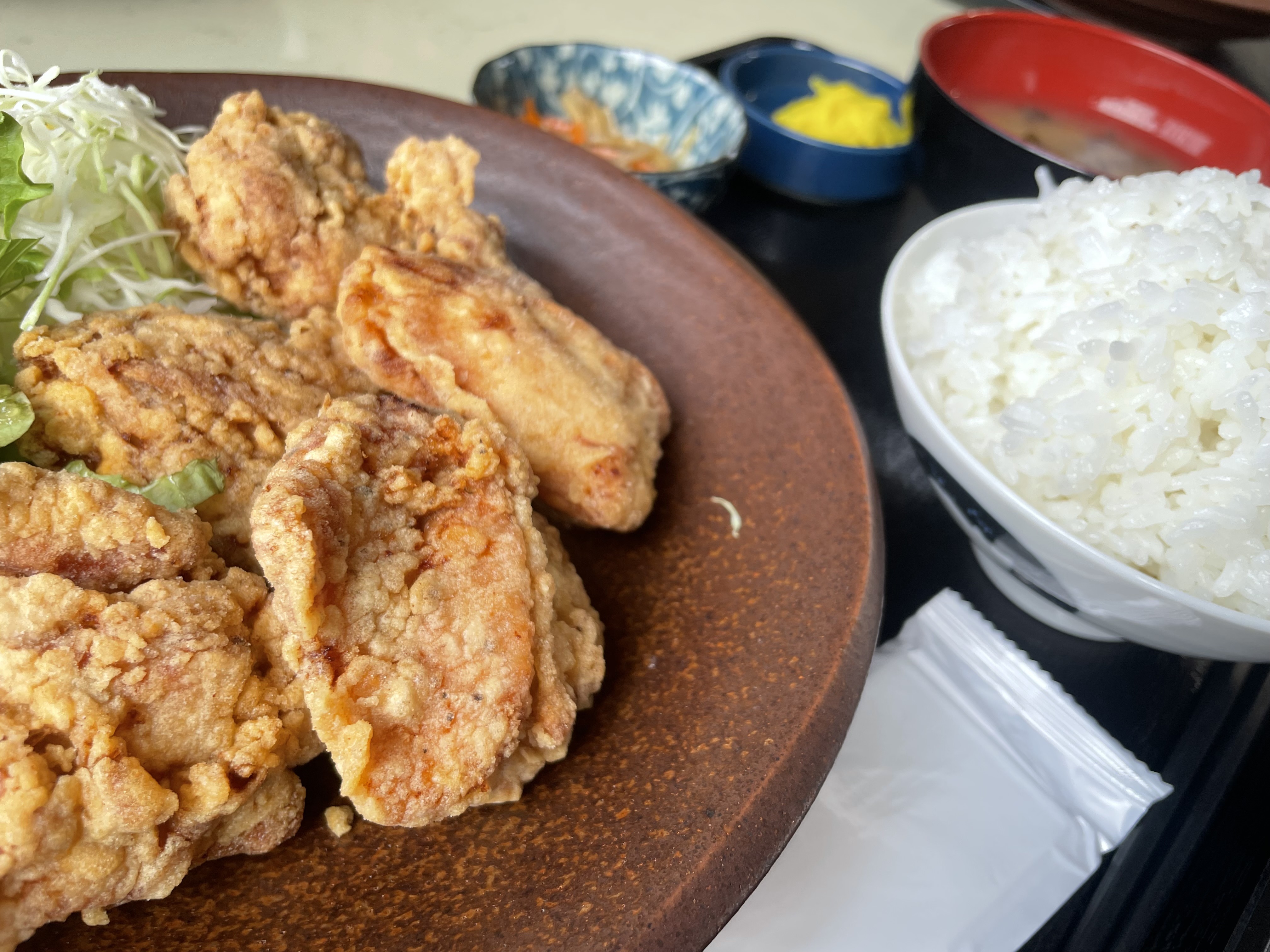お昼はいつも通り絶品のから揚げ定食!