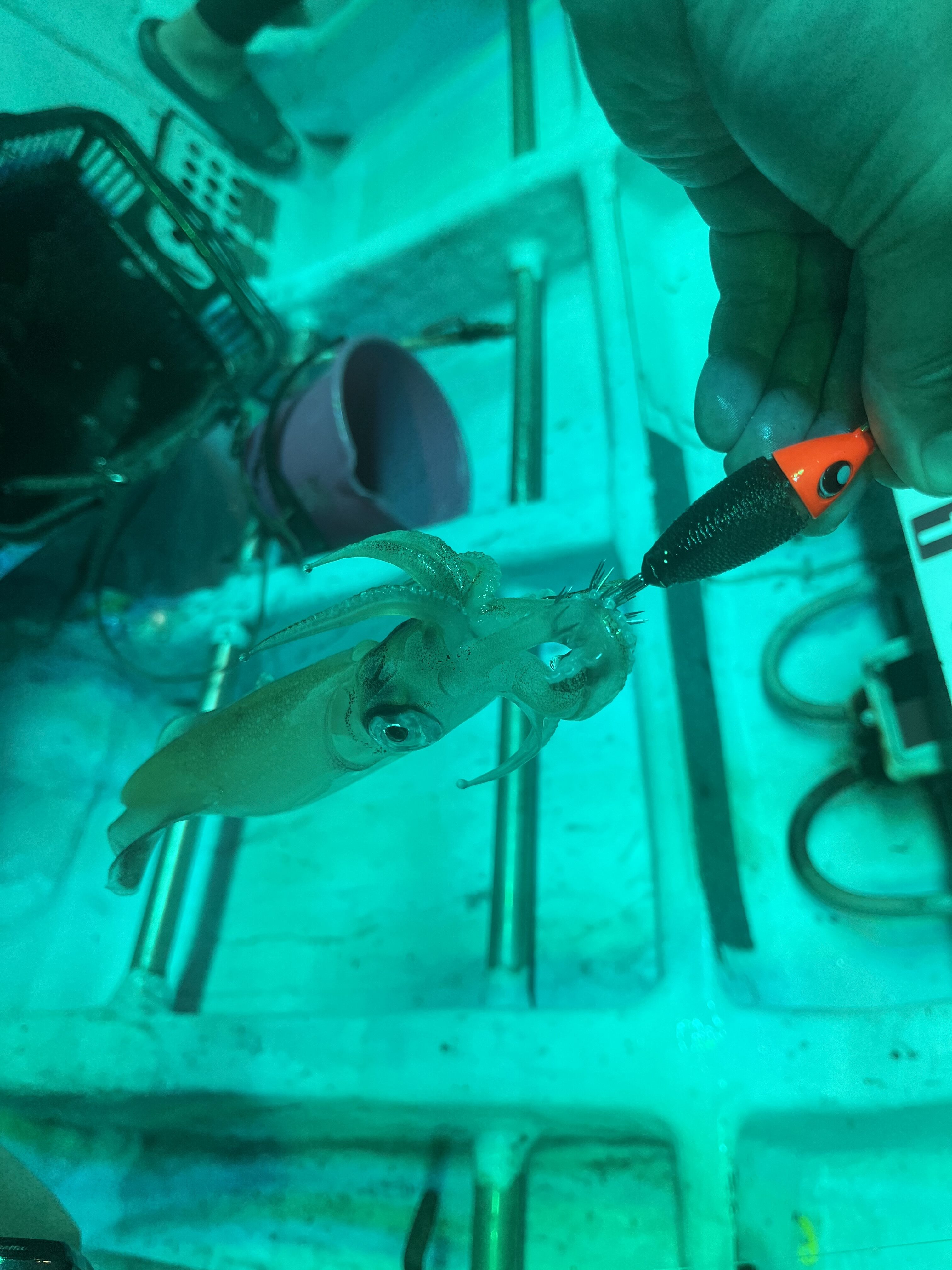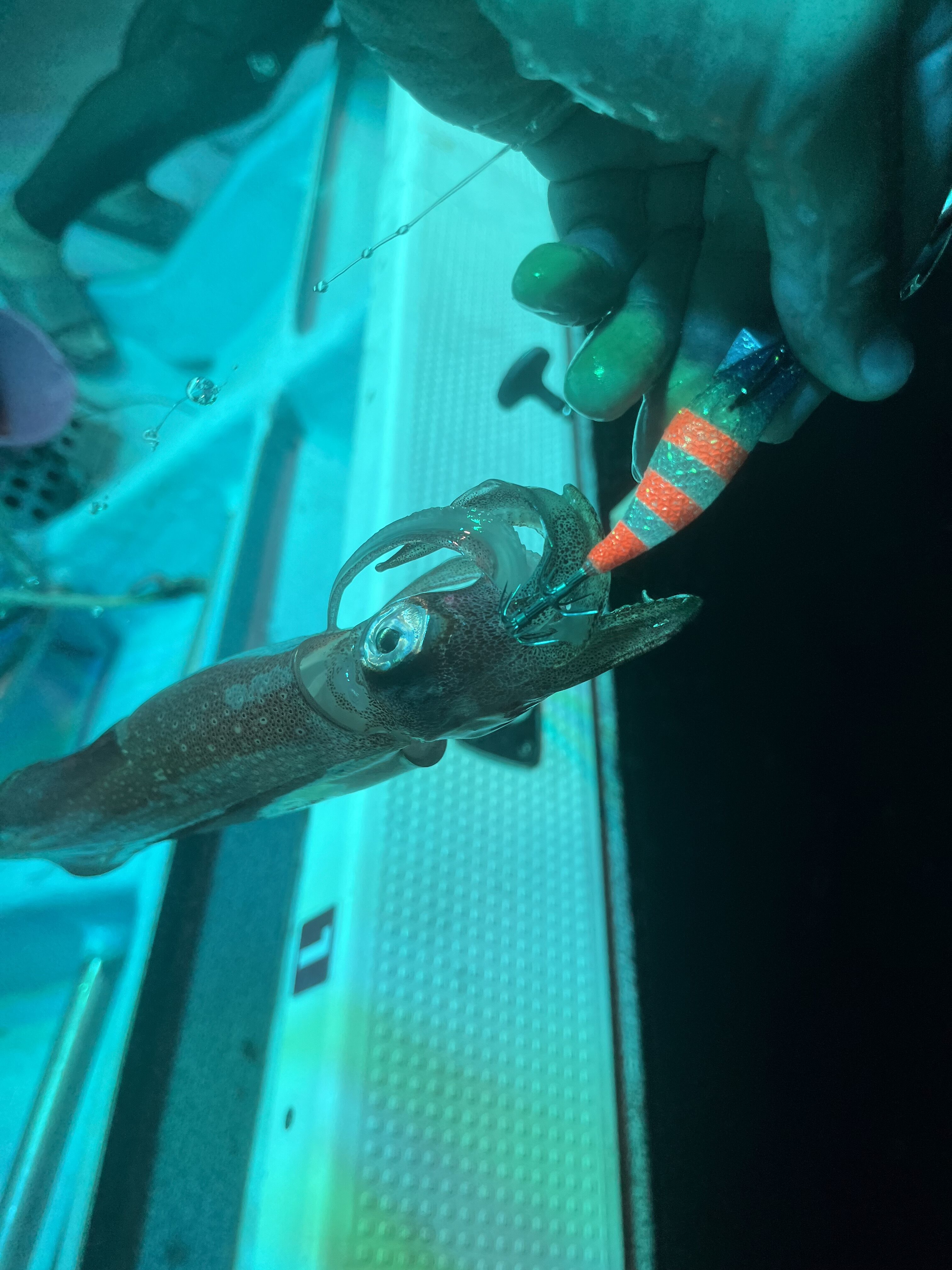 受付をすませて出船からのんびり1時間半ほど移動して18時頃から釣りをスタート🦑