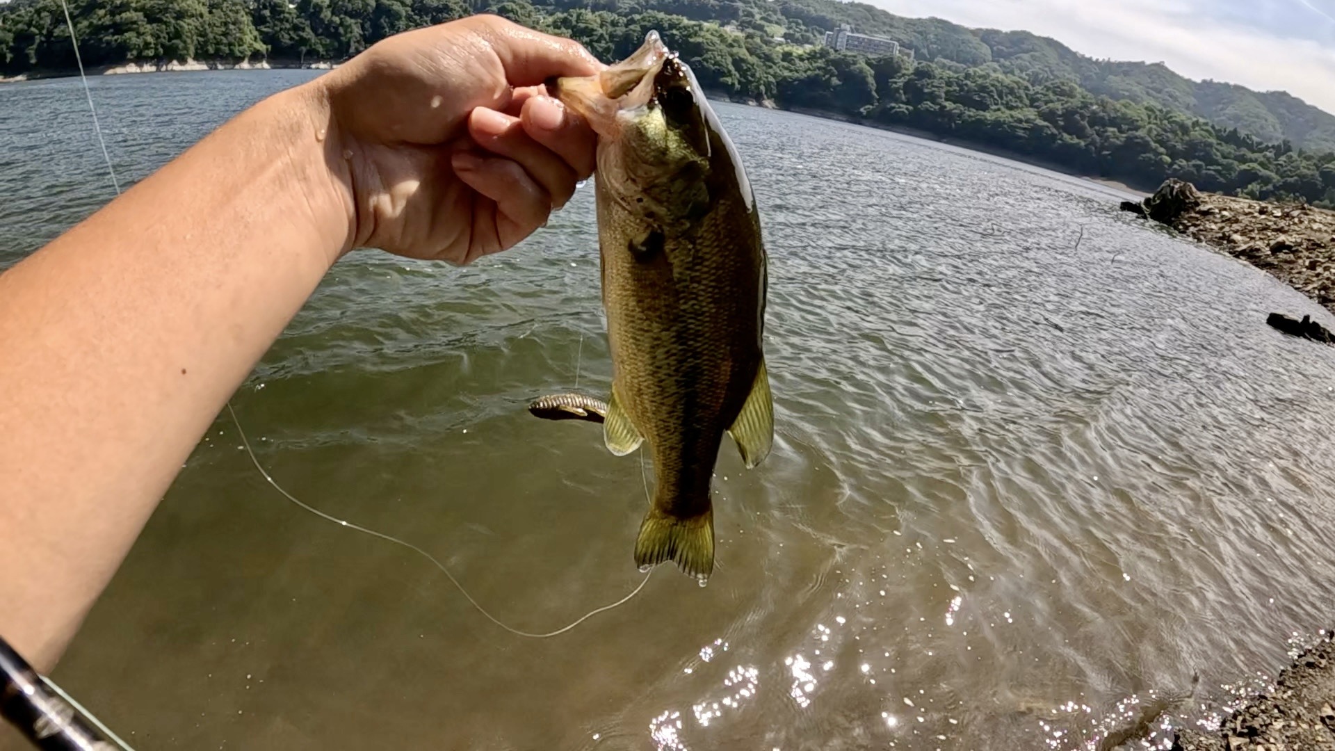 2025.09.04 印刷する 藤本釣行便バス釣り編in津久井湖 魚種 ブラックバス サイズ 38cm 数 ブラックバス3匹 釣り方 ☆バスフィッシング 場所 神奈川県 天候 晴れ スタッフ 藤本教弥 店舗 埼玉狭山店 釣行日 2025.08.29 コメント こんにちは!狭山店スタッフ藤本です! 今回は津久井湖へおかっぱりに行ってきました! 昼からの釣行だったので凄く暑かったです🥵 着いてまず減水し過ぎていて驚きました。 いつもよりおかっぱりをしやすい環境になっていたので最高でした! カバーなど目に見えるようなブッシュはほとんど無かったのですが、 木が少しだけ沈んでいる場所に沈み蟲2.2を落とすとまず20upが釣れました! その後はチャターやスピナべでサーチしますが反応なし。 深場狙いに変え、岬の先端を転々と打っていこうと思い、 沈み蟲やスーパースティックを遠投しました。 すると、、 38cmのバスが2本釣れました! ずる引きでの反応は薄く、ボトムジャークにするとバイトが出ました! 津久井湖はボトムジャークの方が釣れる印象です。 次回こそはデカいバスを釣りたいです🎣 使用した釣具 ロッド リベリオン リール カルディア