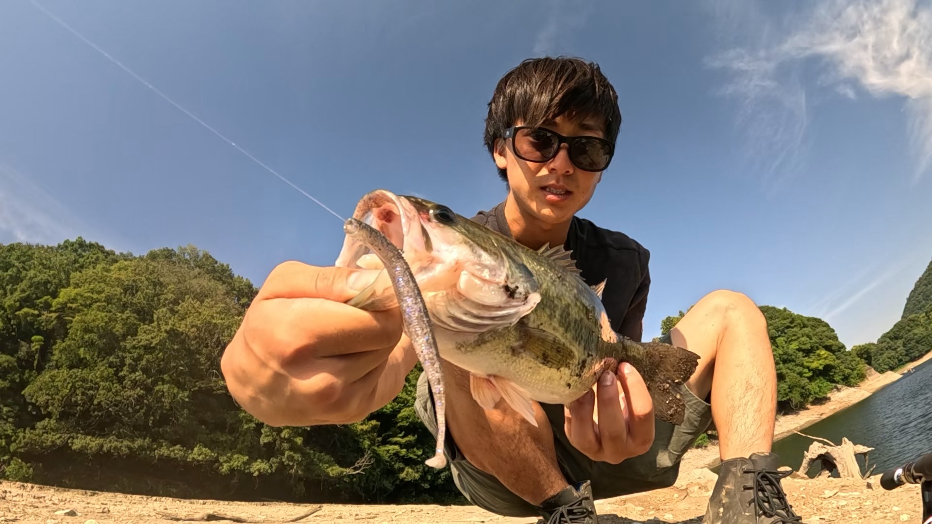 木が少しだけ沈んでいる場所に沈み蟲2.2を落とすとまず20upが釣れました!
