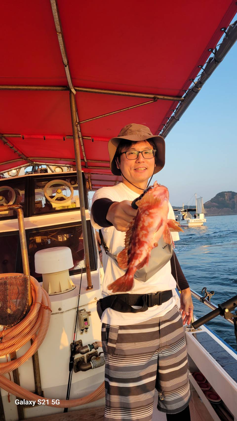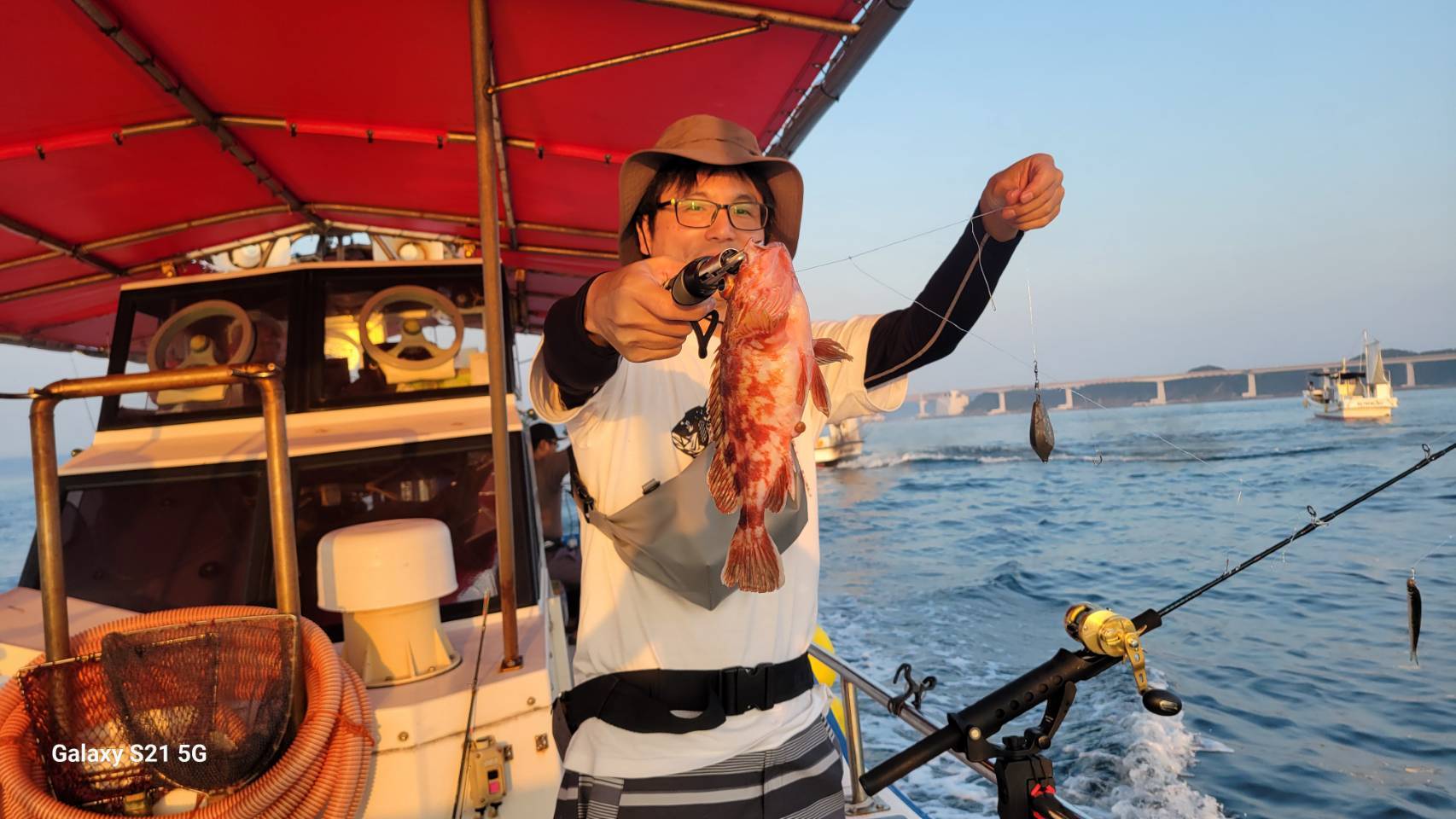 朝5時半集合、左舷の前から2番目に釣り座を用意し、5時45分頃出船。