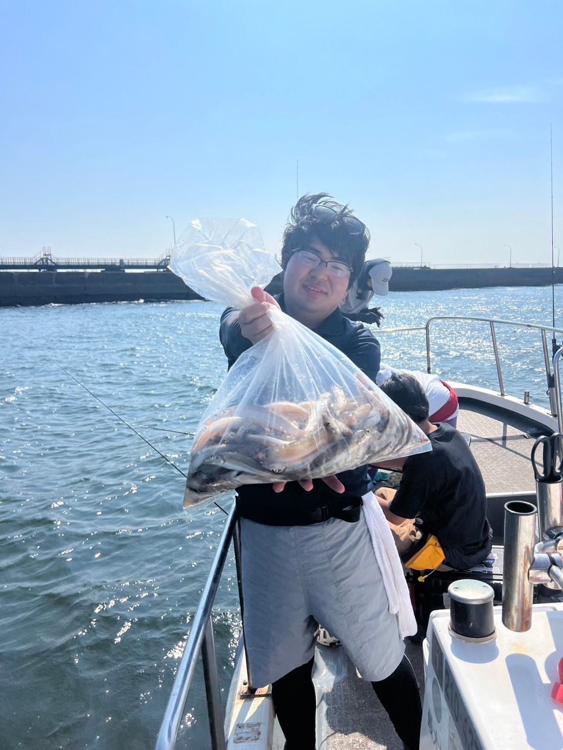 しばらく我慢の釣りが続きますが、潮が流れ出したタイミングでざわざわし出す東京湾。今までいなかった鳥がチラホラ出だし、ベイトが固まり出し、川崎店吉村君HIT!見事キャッチ成功!取り残された柏店恒松君でしたが、このチャンスを逃さず2本連発!全員安打達成!