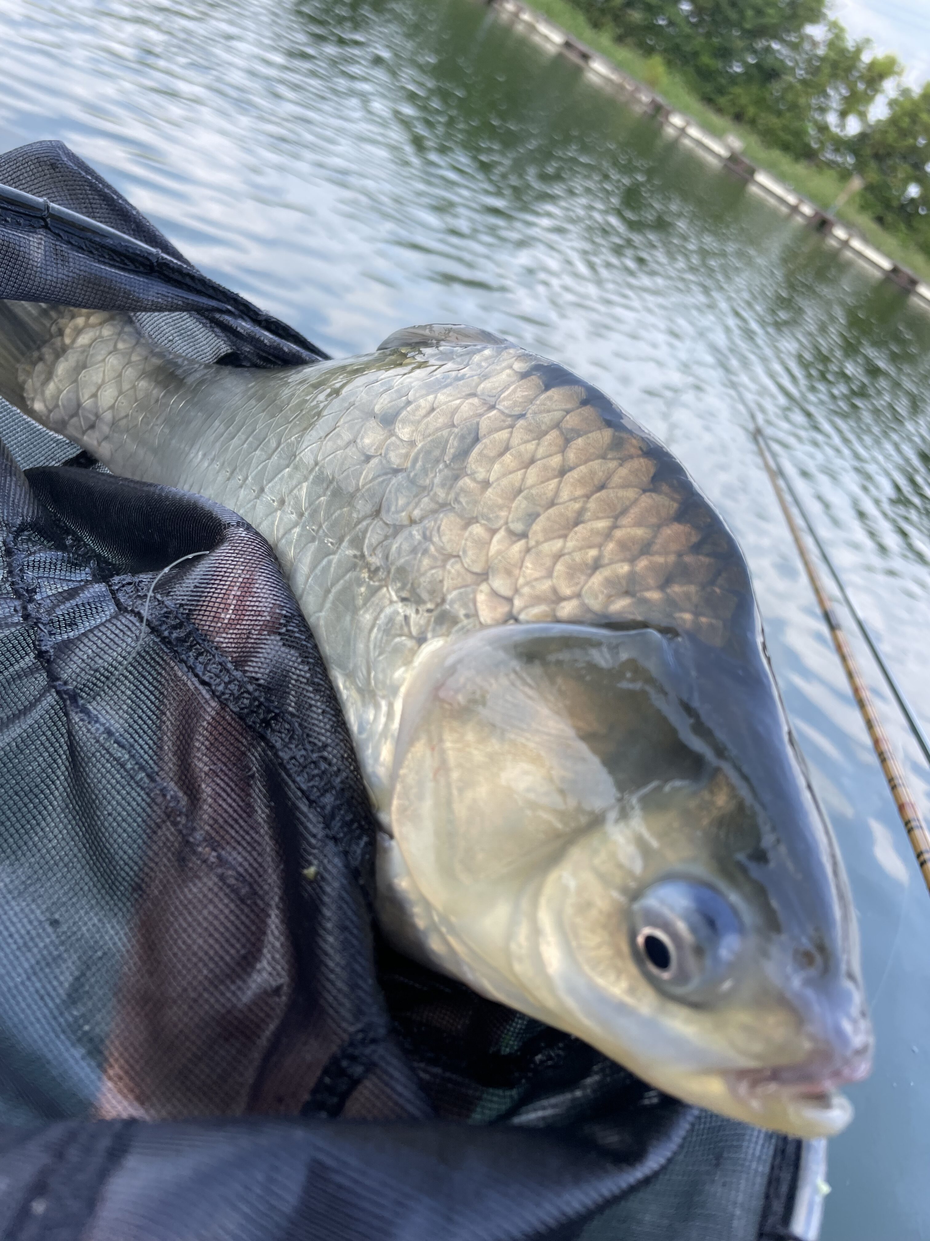 午後はそれではアタリがなくなってしまったので、カルネバ200バラケマッハ400+凄麩200+GD50+浅ダナ50のカチカチ小エサで一発取り!