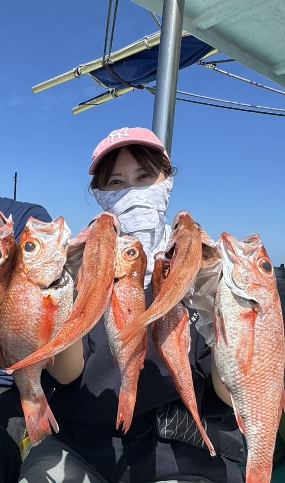2025.09.10 印刷する 富山でライトアカムツ 魚種 アカムツ/ノドグロ 数 アカムツ/6匹 釣り方 ☆その他船釣り 場所 富山県 天候 晴れ スタッフ 丹羽 かおり 店舗 名古屋小牧店 釣行日 2025.09.06 コメント こんにちは、つり具のブンブン名古屋小牧店の丹羽です。 今回は、富山へ遠征。高級魚のノドグロを狙いに行ってきました。 通常では、中深海で釣れる魚ですが、富山では100~130mほどで釣ることが出来、比較的ライトなタックルで釣れるとのこと。 今回新しくゲットした相棒!フォースマスター600です! 初めての電動リールにドキドキ笑 そして一番の驚きは、ポイントが岸からこんなに近いこと。こんなに近くて130mもあるなんて驚きです!! すぐにポイントに着いて、ホタルイカを仕掛けに付けて底へ・・ 波が高く揺れるので全く当たりがわかりません汗 なにか引いているきがして電動で一気に巻き上げると本命がついていました。可愛い24㎝のアカムツです。 電動は、最初に巻き上げた時は6mで止まり、次からは5秒以上止まったところで自動的に止まるという優れものでした!最初はちゃんと止まるかドキドキしていましたが、初の電動リールでも使いやすく最高でした! そして、中乗りのお姉さんもとても親切に釣り方を教えてくれて、釣らせてくれようと一生懸命で感激でした。 お姉さんのいうとおりに頑張っていると、明らかな反応がわかり、巻き上げると・・・ いいサイズのアカムツです!! そしてまたすぐにもう一本! 最終、6匹でした。 1匹、あと10mでバレるという・・・悔しい泣 後から、その1匹で同率竿頭だったと聞いてさらに悔しい泣 でも、こんなにたくさんのノドグロが釣れて本当に楽しい一日でした。 皆さんも、ライトアカムツ、行って見てください。ホントにオススメです!! 使用した釣具 ロッド リーディングLG73 H-190 リール フォースマスター600