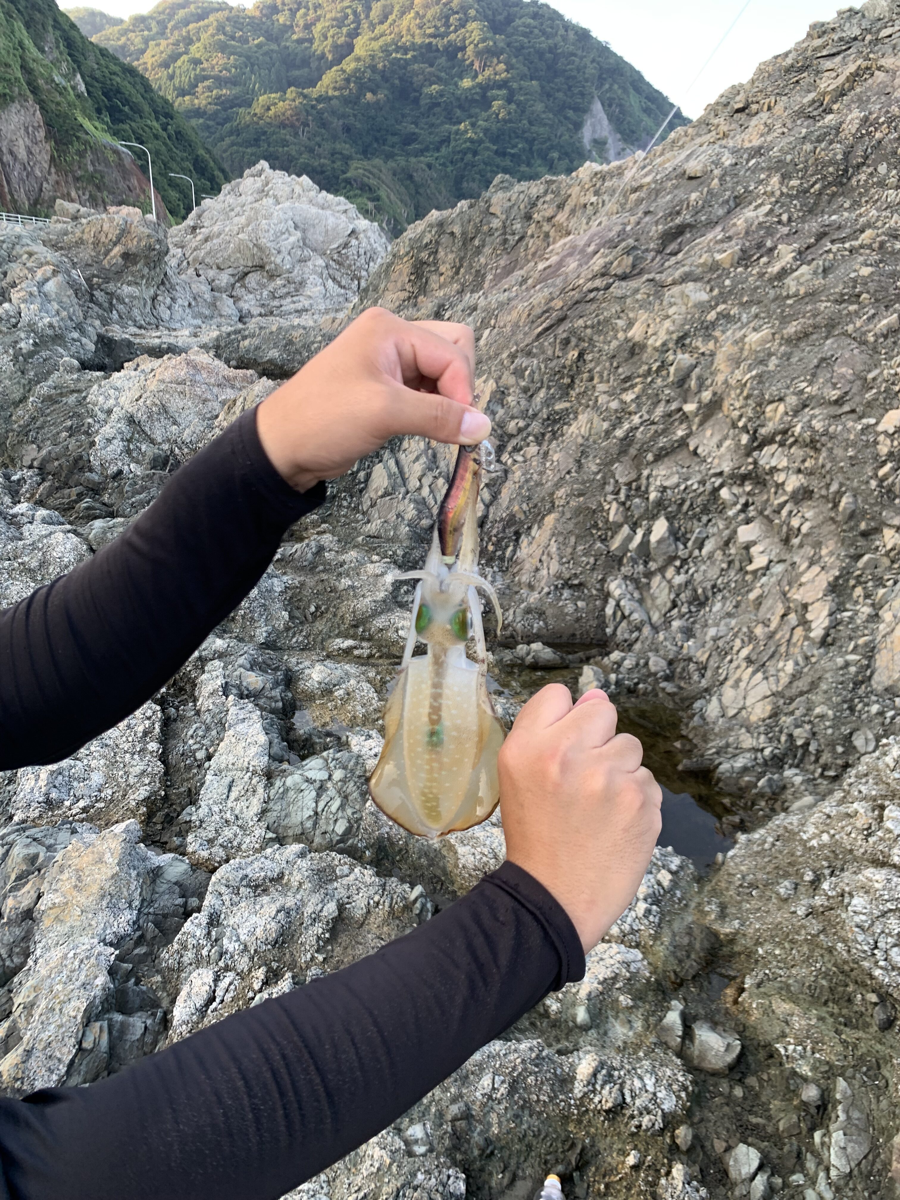 堤防では友人と2人で10杯ほど釣れ、地磯でのエギングです。