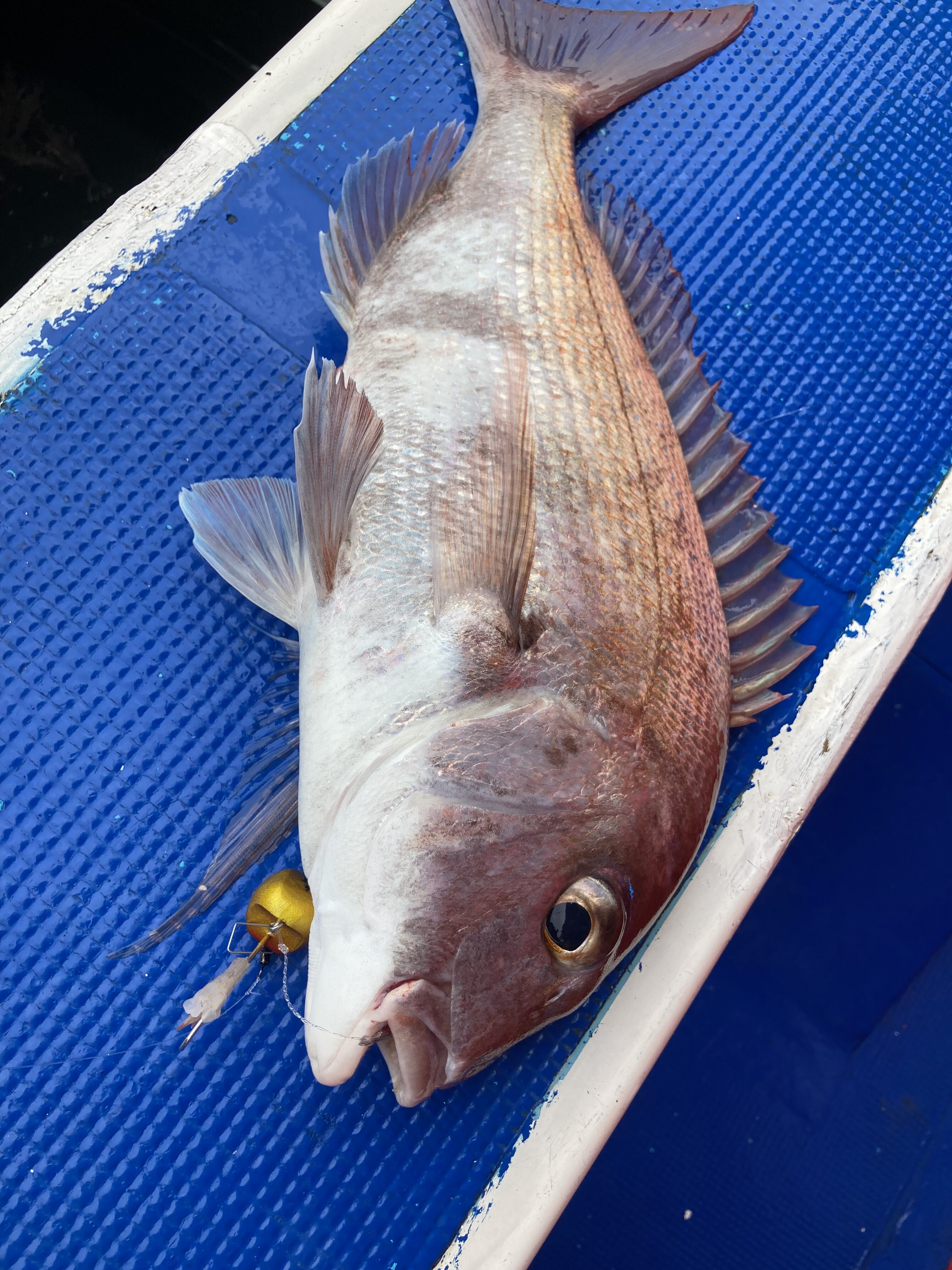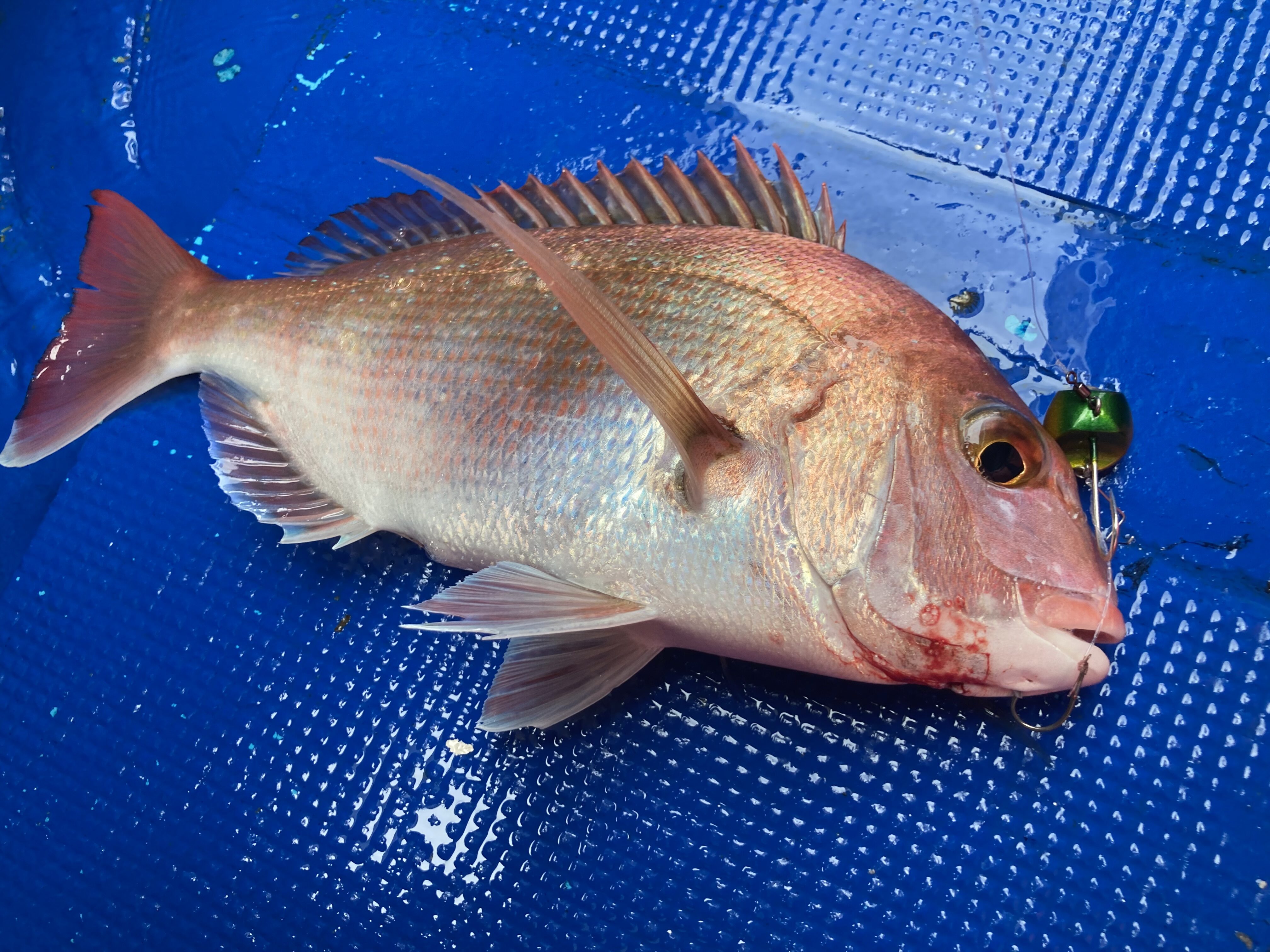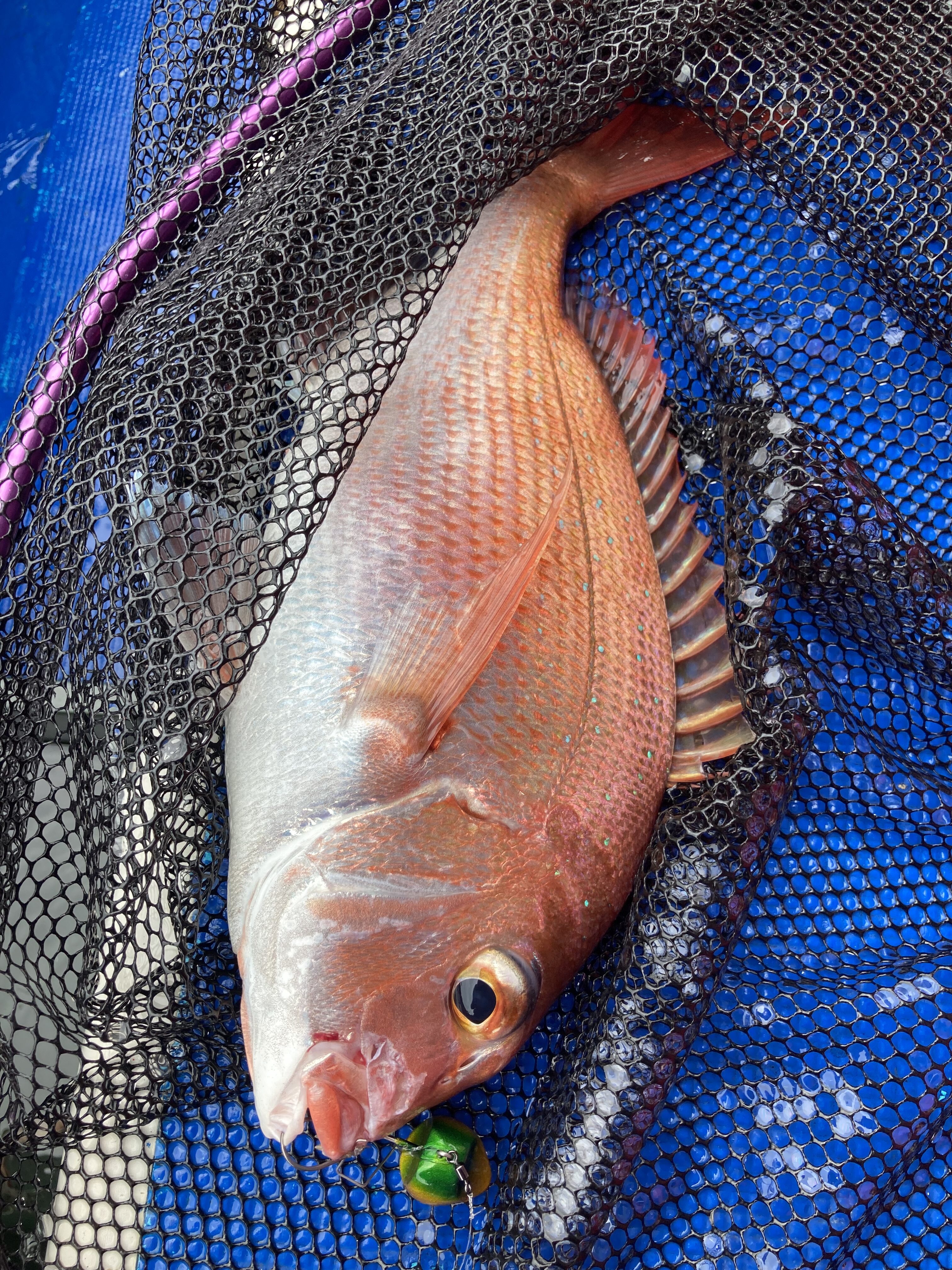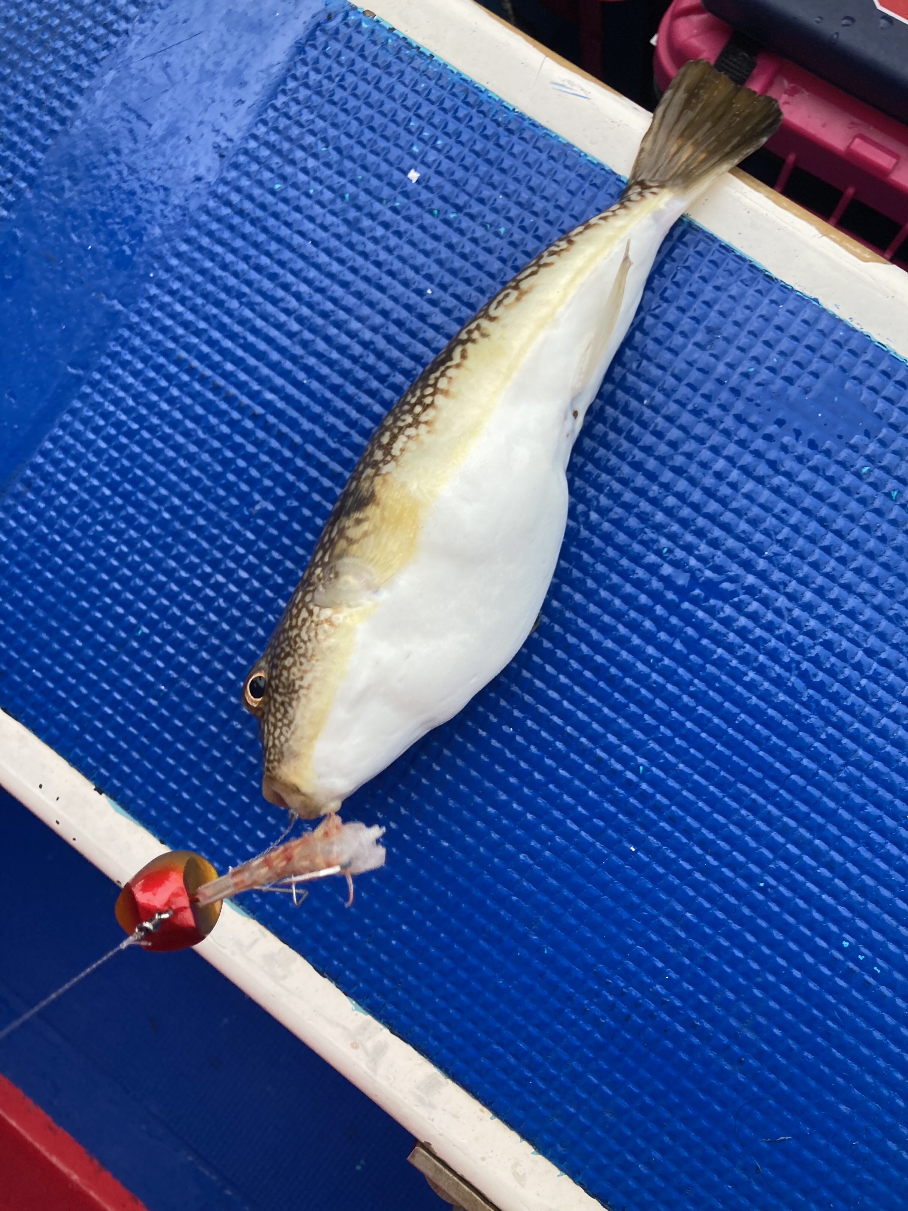 2025.09.09 印刷する 明石!一つテンヤ! 魚種 真鯛 サイズ 真鯛40cm前後 数 真鯛/3枚、ショウサイフグ/1匹 釣り方 ☆ひとつテンヤ 場所 兵庫県 天候 はれ/あめ スタッフ 森本 龍希 店舗 リンクスウメダ店 釣行日 2025.09.04 コメント 今日は流行りの一つテンヤに初挑戦していきます! 今回乗る船は「海蓮丸」さんです。 初挑戦なので、船長に餌の付け方と誘い方を教えてもらい、いざ出陣! ポイントまでは近いところだと水深10m前後、少し沖に出ると30〜50mくらいです。 この日は2枚潮だったので、着底が難しいのでTGのテンヤがあってもよかったですが、コスパを抑える為に鉛テンヤの15号メインで頑張りました! 着底をさせてから少しあおったり、シャクリを入れたりしてアピールし、そのままラインにテンション掛けつつ、ゆっくりテンションフォールでアタリを取っていきます! すると…… コン!からの即合わせからのヒット! 上がってきたのは… まさかのショウサイフグ! 良いお土産ができました(笑 本命はタイなので、さらに続けると… ヒット! さっきと引きが明らかに違います! 上がってきたのは… 本命のタイ! ひとまずボウズは回避です! この後もアタリがない時間や、餌だけ取られるのが多かったですが、ちょこちょこと釣れて、合計3枚! タイ以外に色んな魚が釣れる楽しさと コツもわかってきたので、またリベンジします! 使用した釣具 ロッド ・ダイワ:極鋭タチウオテンヤ91-180 AGS ・シマノ:クロスミッション S66ML-S リール ・ダイワ:キャタリナ100PL-RM ・シマノ:BB-X デスピナC3000D_TYPE-G ライン PE0.8号 リーダー 3.5号 テンヤ 15号、20号