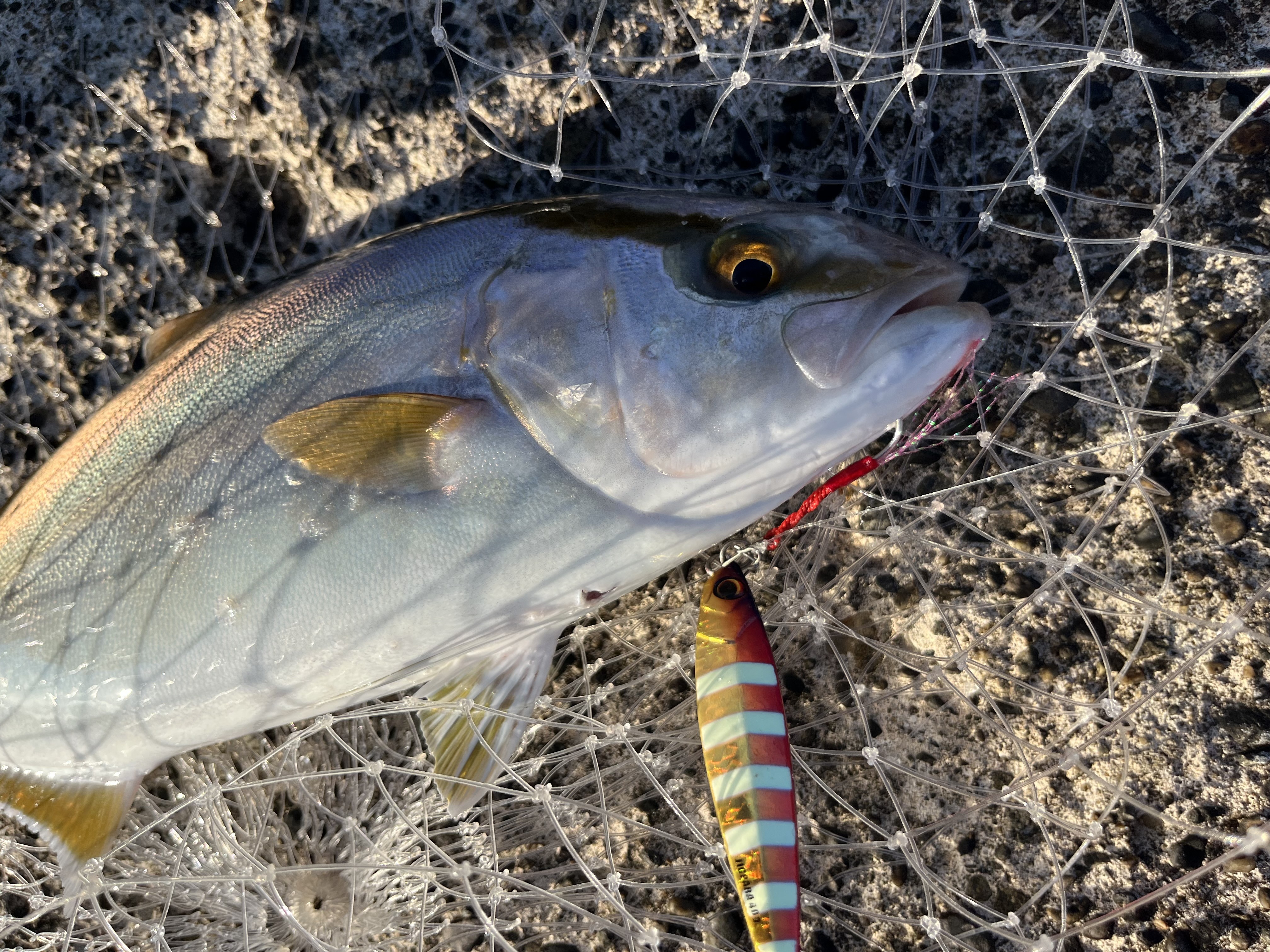 2025.09.09 印刷する 雨上がりの恩恵 魚種 カンパチ ブリ/メジロ/ワラサ/ハマチ/イナダ/ツバス/ワカシ 釣り方 ☆ショアジギング 場所 千葉県 スタッフ 陶山蓮 店舗 川崎大師店 釣行日 2025.09.08 コメント 雨上がりの恩恵を受けにショアラインに 多摩川に入るのも考えましたが、一旦回遊魚を狙いに 暗いうちから場所取りを兼ねて太刀魚の調査も 横須賀方面では日々釣果を聞きますが千葉方面は中々厳しい様子 暗いうちに色々試すも反応得られず朝を迎えました。 トップから色々投げ倒すも反応なく濁りもまだ残っていたのでアピール重視でビッグバッカー鰤カスタムへチェンジ キャストして着底からのグリグリからのドーン 反応がボトムから中層に出てきたので意識して巻いていると連発 少し反応が薄くなったタイミングでメタルジグでさらに飛距離を出してやるとこちらも底の方でヒット 突っ込むような引きから想像がつきやすいあの魚 時合い短めでしたがしっかりと雨の恩恵を受けれた釣行でした! 使用した釣具 ロッド コルトスナイパーXR リール ツインパワーC5000XG