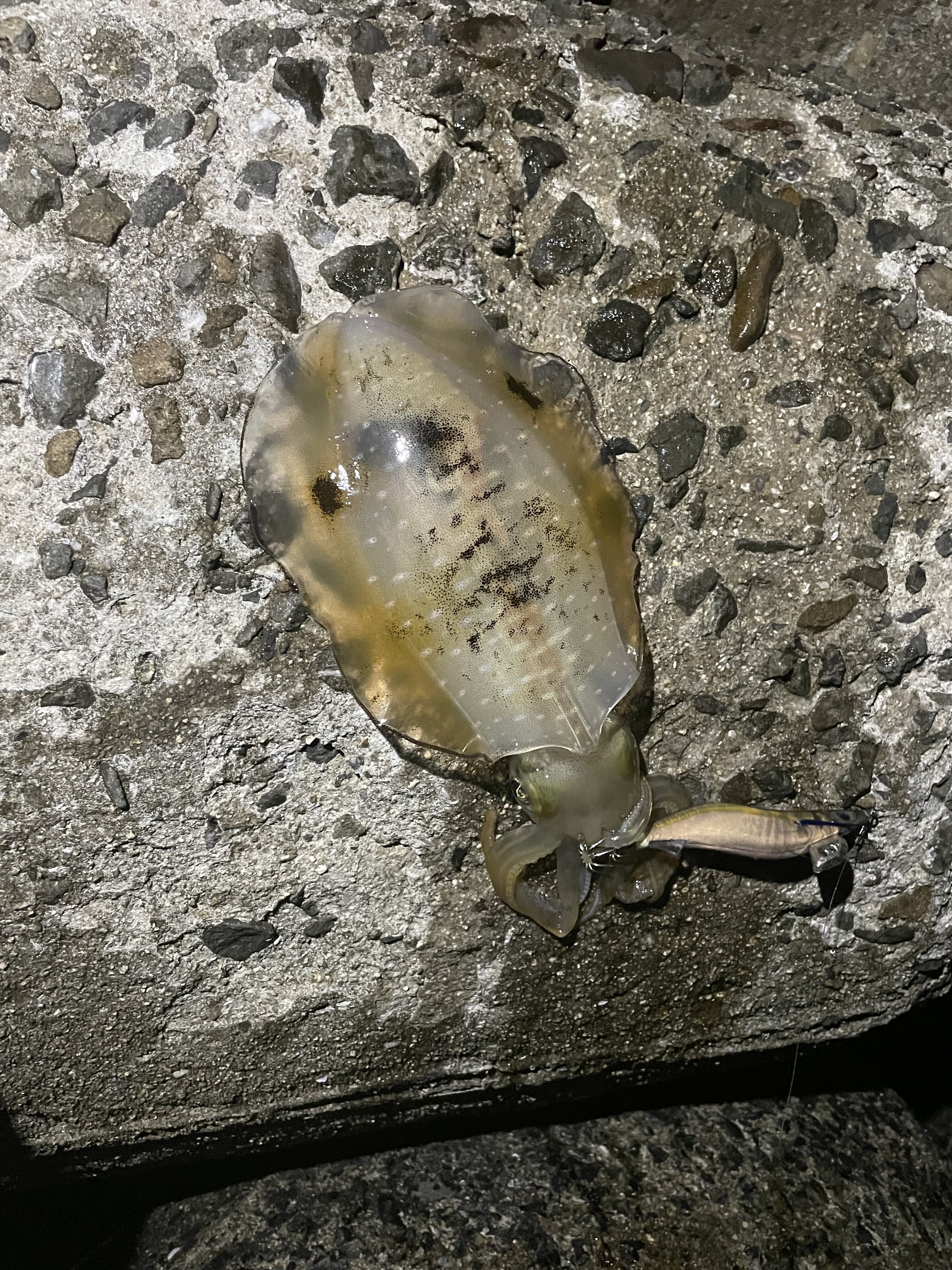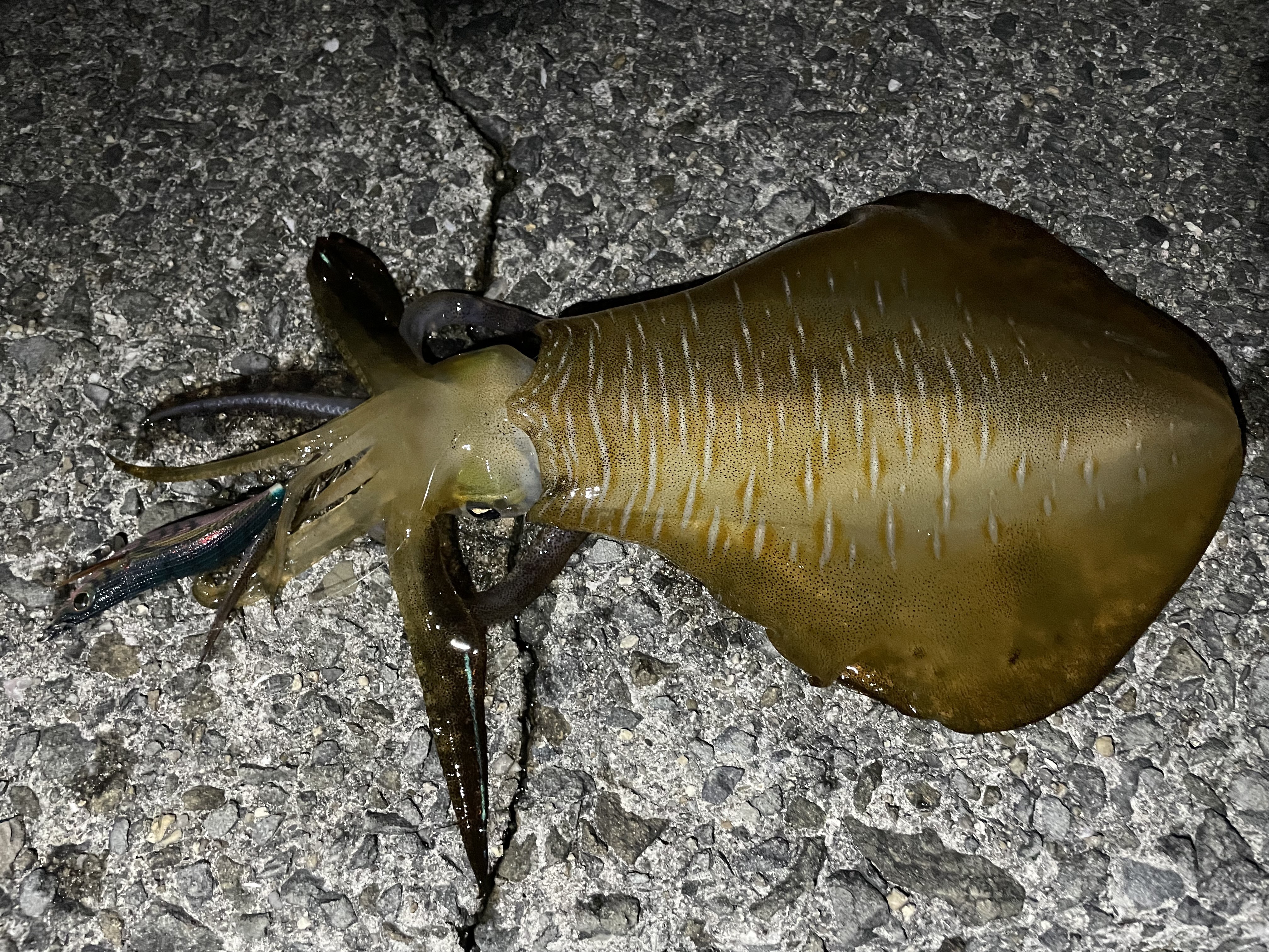 2025.09.10 印刷する 泉南エギング🦑 魚種 アオリイカ サイズ 200g、470g、500g 数 アオリイカ3杯 釣り方 ☆エギング 場所 大阪府 スタッフ 平田 真奈生 店舗 本社 釣行日 2025.09.06 コメント 先週はフロートアジングの合間にやったエギングでしたが妻から本気で釣ってこいという指令を受けていざ出陣今回は本腰入れて行ってきました! 先週入ったポイントよりは少し深めのエリアを選択 とりあえずサーチも兼ねてエギ王K3.0号のシャロータイプ、金アジカラーで できる限り沖に投げて潮の効いているレンジを漂わせたり、シャクってアピールする作戦 数投して何か触ったような感覚すかさず軽くシャクってステイさせるとティップを引ったくる良いアタリ! しっかり掛けたと思いましたが抜き上げ時に波が立ってテンションが抜けてしまい足元でサヨナラ👋 この時期にしては良いサイズだったのでちょっとショック😨 気を取り直して同じように狙って行くとかなり手前で同じような違和感があり軽くティップで弾くとギュン! なんとか1杯目をゲット🦑 とりあえず一安心していると同行者も横でヒット! 2回りくらい大きいサイズでランディングを手伝って無事にキャッチ! ナイトエギングといえば軍艦グリーンということでカラーチェンジして追加の470g その後潮も止まり一旦休憩も兼ねて移動 潮の動き出しと共に再開しエギをドリフトさせるイメージでやっていくとギュン! 締めの500gを追加して満足したので納竿としました🎣 また行ってきまーす♪ 使用した釣具 ロッド メビウス79M リール ルビアスFCLT2500S-XH ライン PE0.6号 リーダー フロロ8lb エギ ヤマシタエギ王Kシリーズ、シャロー、スーパーシャロー2.5〜3.0号