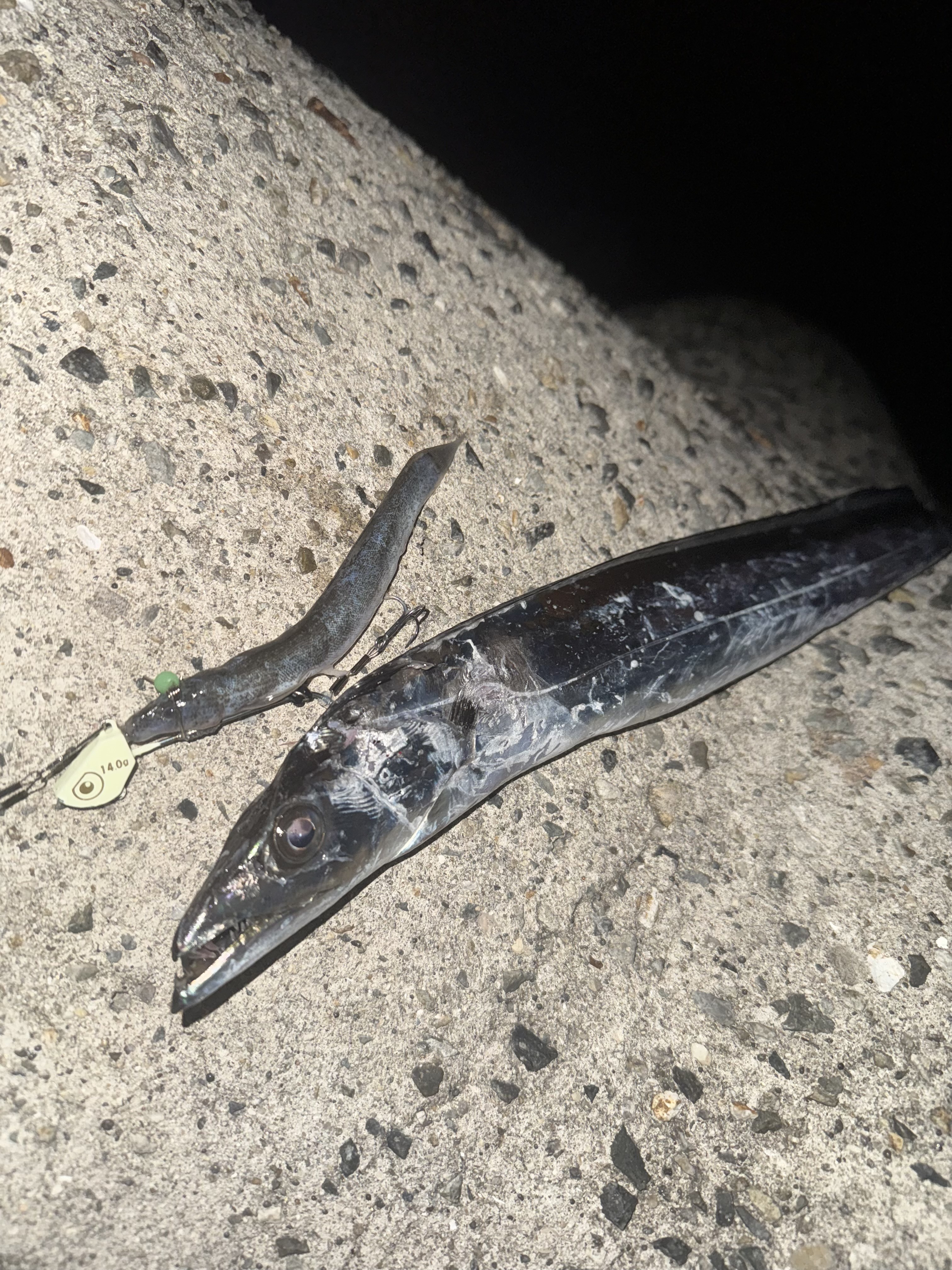 慎重に陸へと上げようとした時、タチウオが暴れて痛恨の目の前でリリース💦