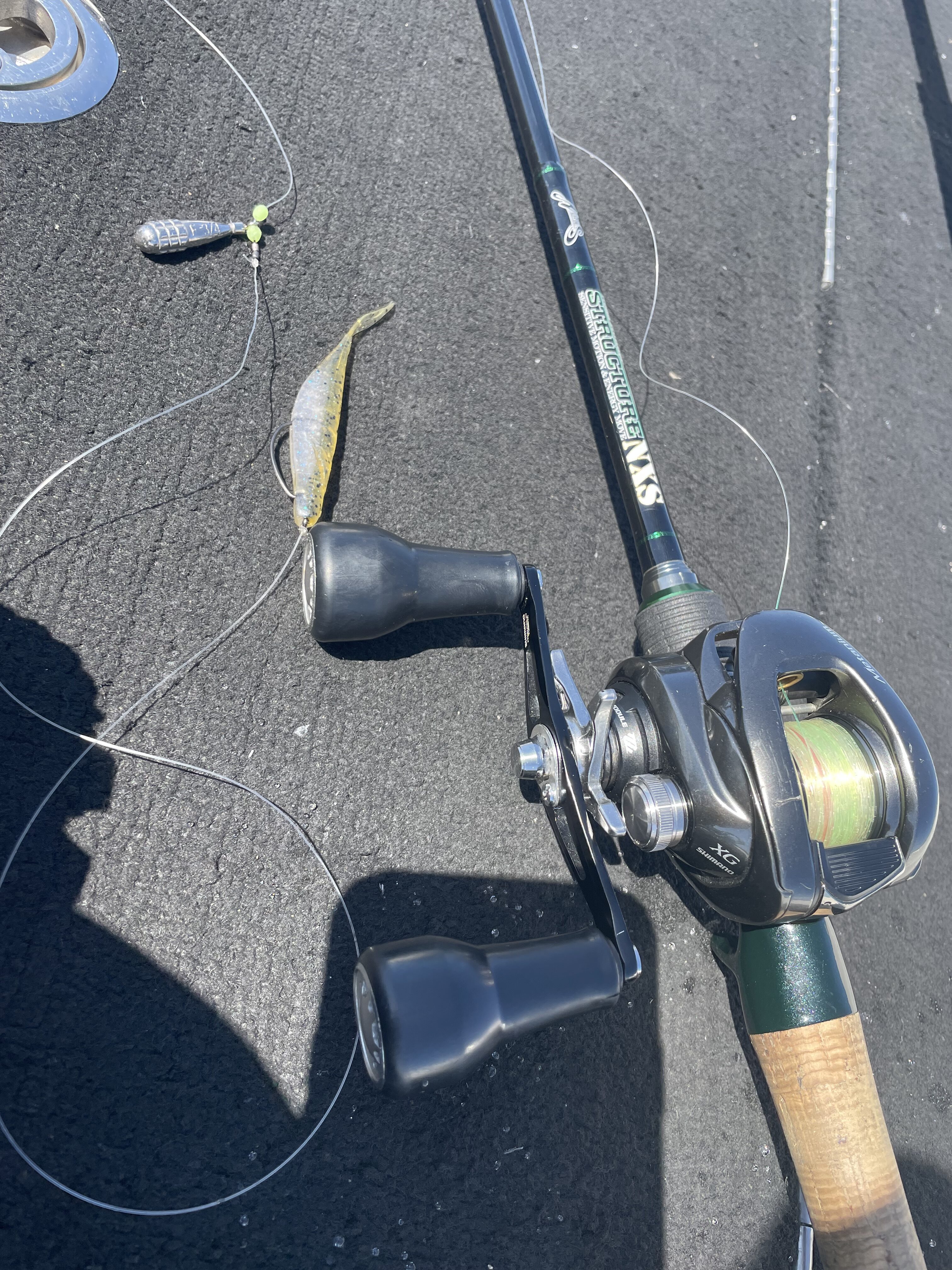 北湖では水深10mほどのストラクチャーへ3/4ozのヘビキャロを投入