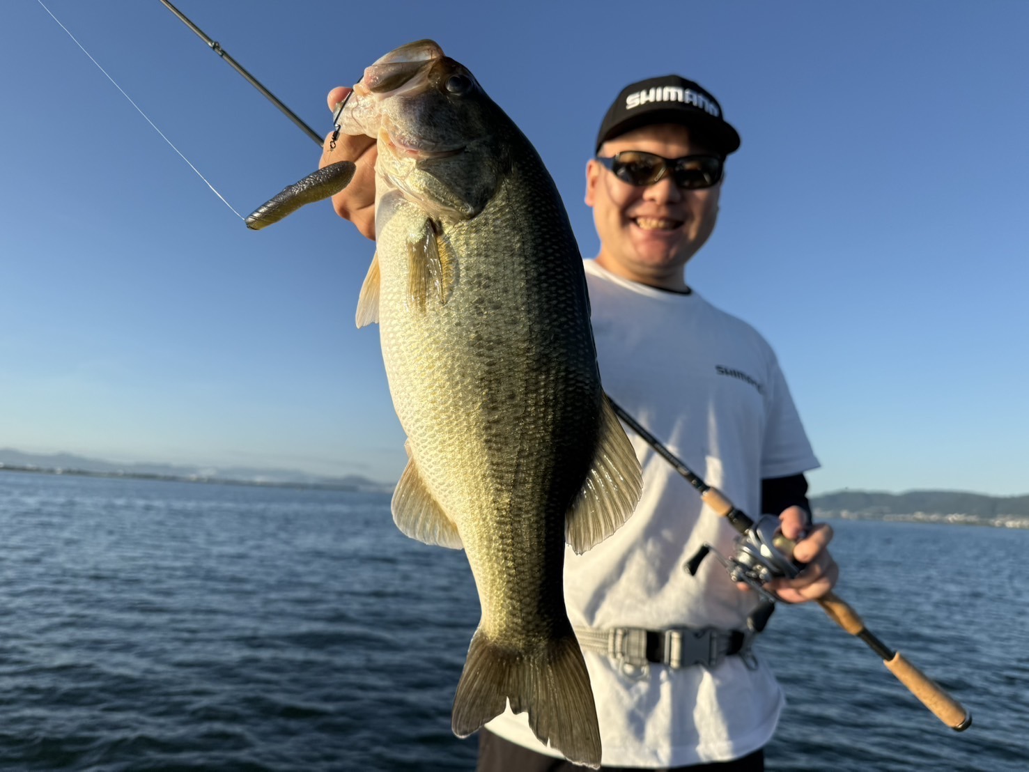 2025.09.15 印刷する サンズガイドで琵琶湖攻略! 魚種 ブラックバス サイズ 45cm1匹、15〜30cmたくさん 釣り方 ブラックバス(ボート) 場所 滋賀県 天候 晴れ スタッフ 佐藤 雄太 店舗 名古屋小牧店 釣行日 2025.09.06 コメント なかなかいい話を聞かない今季の琵琶湖へ挑戦💥 今回お世話になったのはメジャークラフトのサンズさんのガイド「SUNS BASS FISHING GUIDE」 朝イチは南湖のウィードエリアでカバースキャットのボトムジャーク 前日に台風が接近したためか水が良く、釣れそうな雰囲気を感じていると開始3投で幸先のいい1本! ナイスコンディションな45cm❗️ これは台風パワーあったか!? と思ったのも束の間、その後は当たりすら無くボートを北へ走らせます🚢 北湖では水深10mほどのストラクチャーへ3/4ozのヘビキャロを投入 フォール、着底、即しゃくりを繰り返す非常にテンポの速い釣りで無理矢理口を使わせる作戦 反射的に口を使ってもすぐ吐き出すため、あわせるタイミングが極端に短く、悪戦苦闘しているとようやくヒット❗️ サイズアップを求めて移動❗️ が、北湖は想像以上にクリアアップ 水深5mが底まで丸見え👀 南湖へ戻って朝釣れた場所の周辺でダウンショットやネコリグでウィードに絡めてシェイク! が、小バス達が元気よく遊んでくれ、大きい奴らは見守ってるだけ😭 最後までサイズアップすることはなくタイムアップ🕰️ 湖上は猛暑でしたが、これだけ小バスが元気なのは水中は秋になってきてるっぽい? そろそろ巻物の準備をし始めてもいいかもしれませんね! 使用した釣具 ノーシンカージャーク ゲインエレメント68MH 22メタニウムシャローXG左 シューターOVERTEX16lb ヘビキャロ ロードランナーストラクチャーNXS700H 20メタニウムXG左 シューターOVERTEX20lb