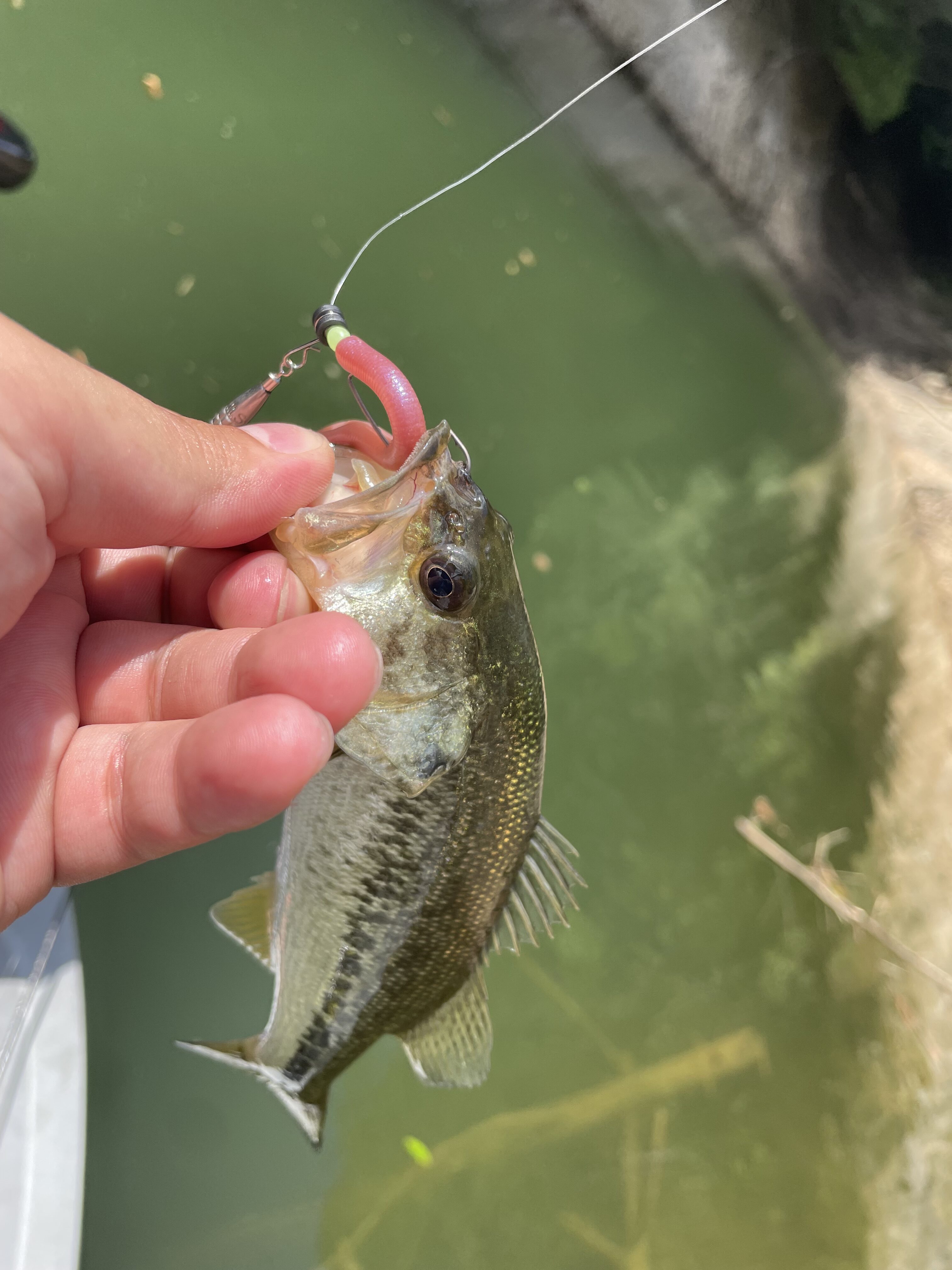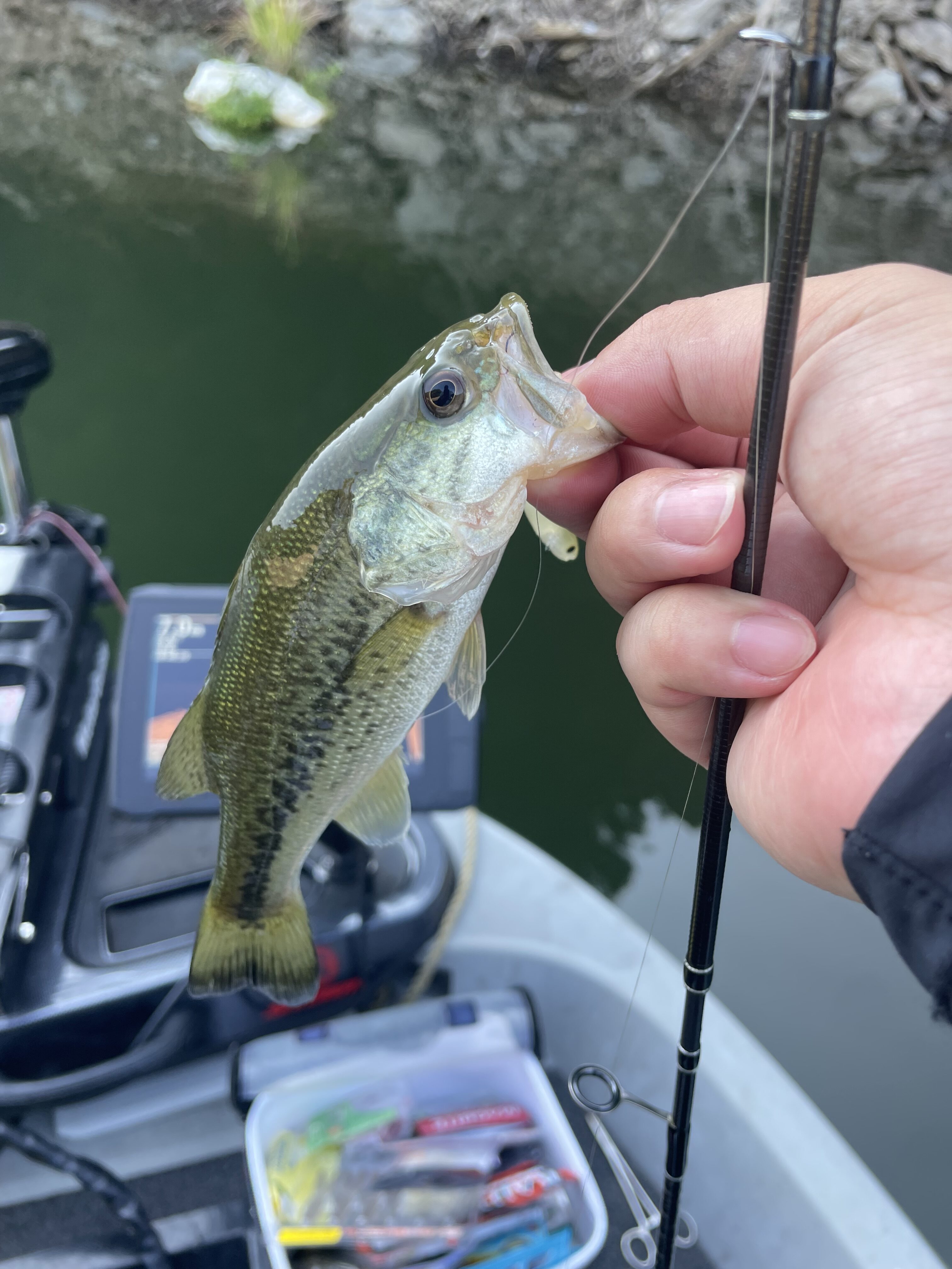 ちなみにボートで進める限界まで上ったところで50cm前後のバスを発見しましたが、ルアーを投げた瞬間いままで見たことないスピードで逃げていきました笑